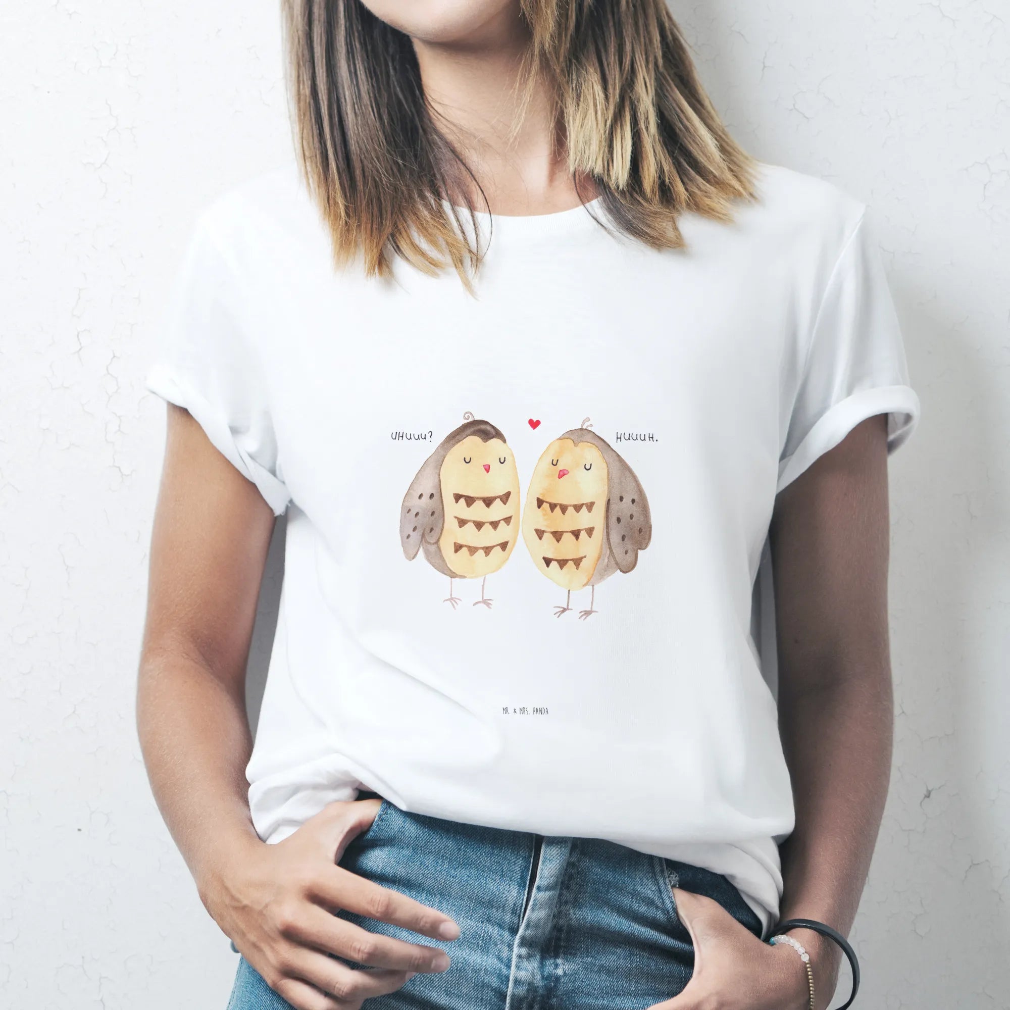 Rozmiar M T-shirt sowy miłość - Größe L T-Shirt - z napisem - biały