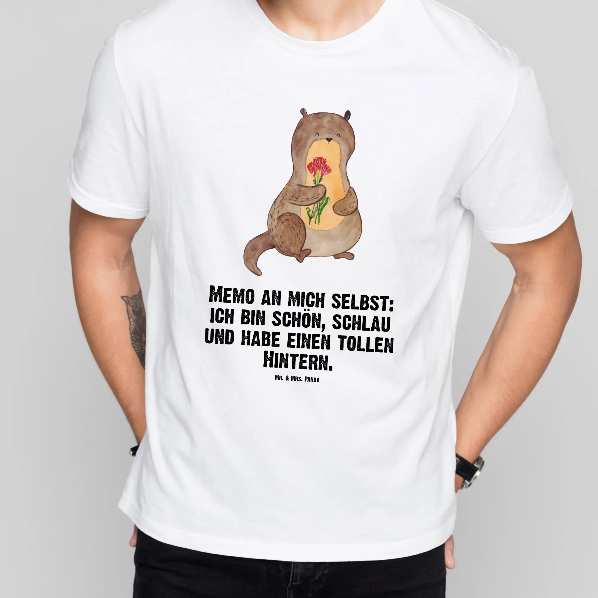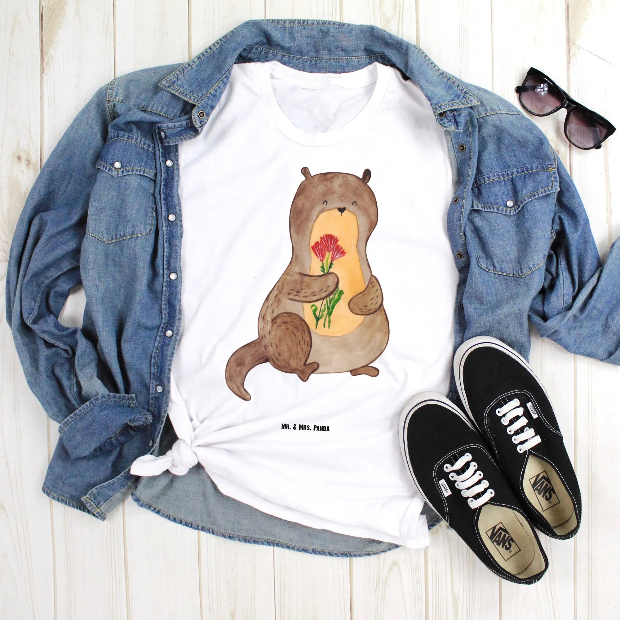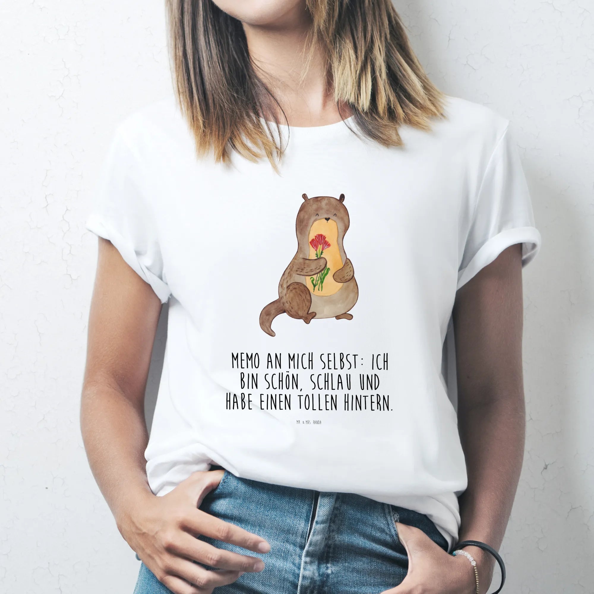 Rozmiar M T-shirt wydra bukiet kwiatów - Größe L T-Shirt - z napisem - biały