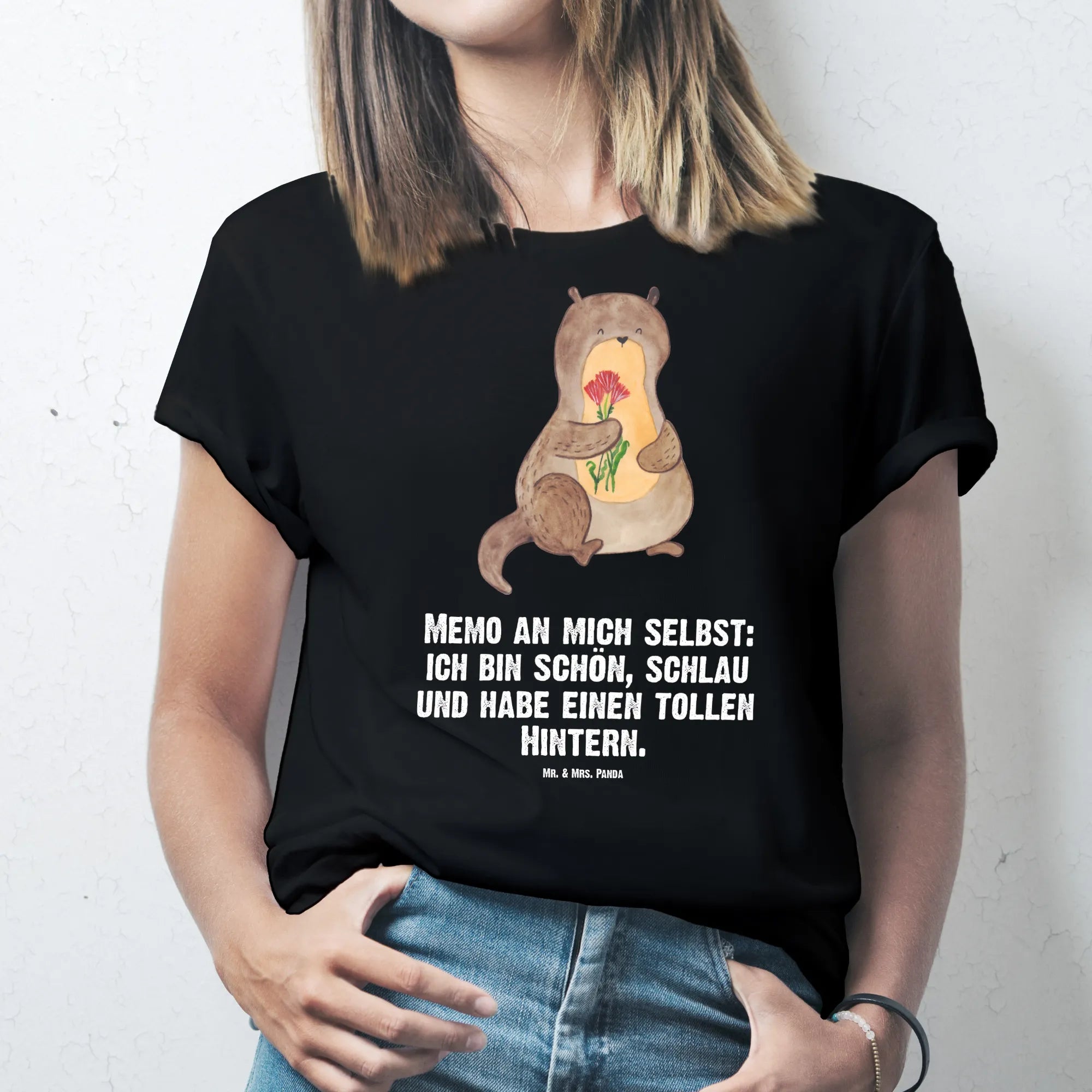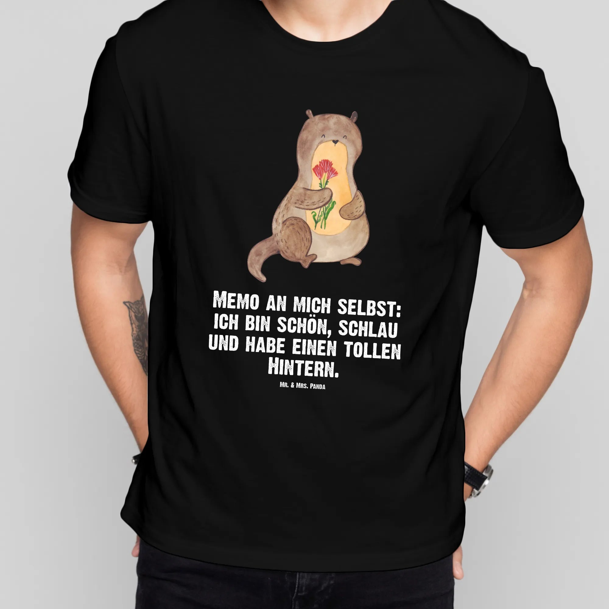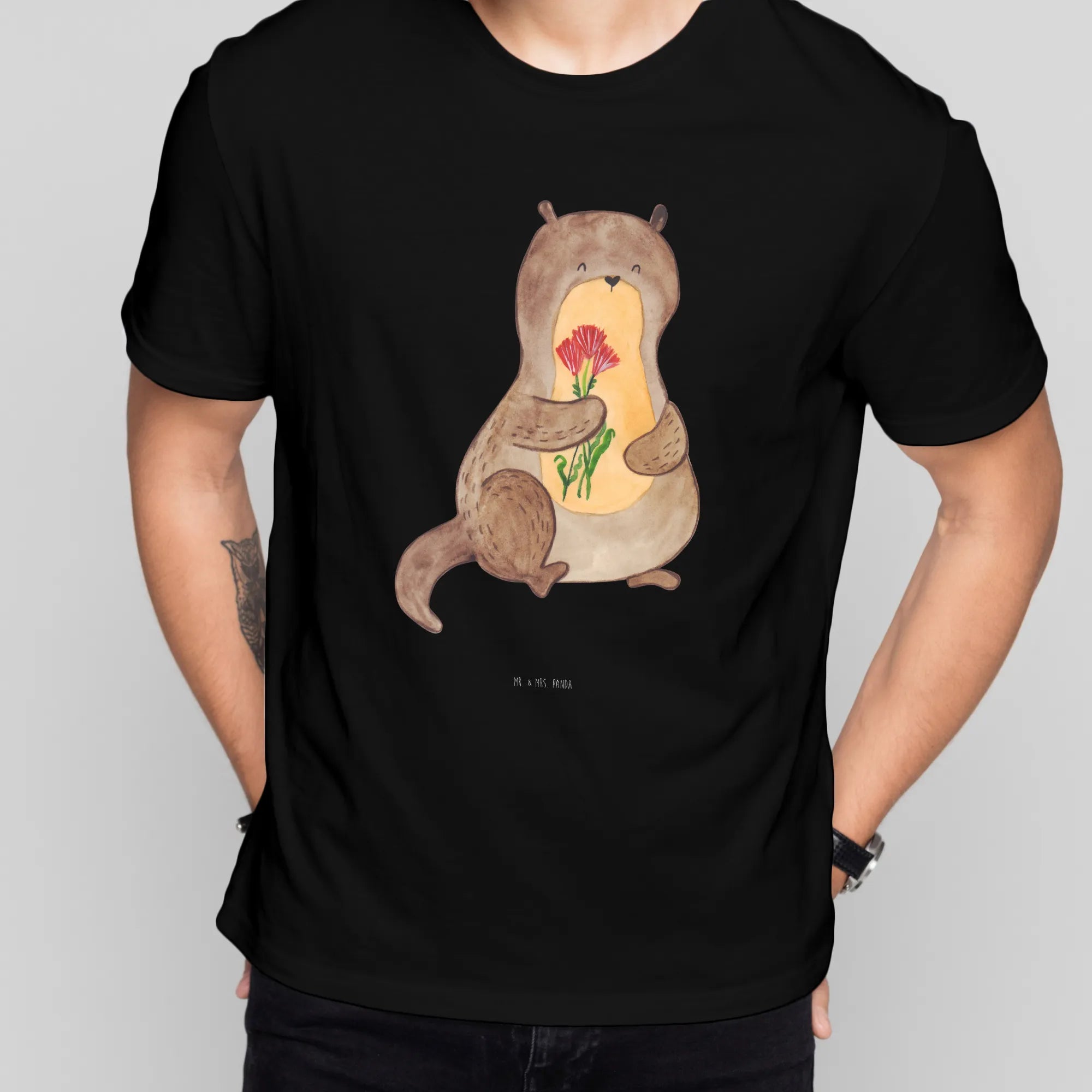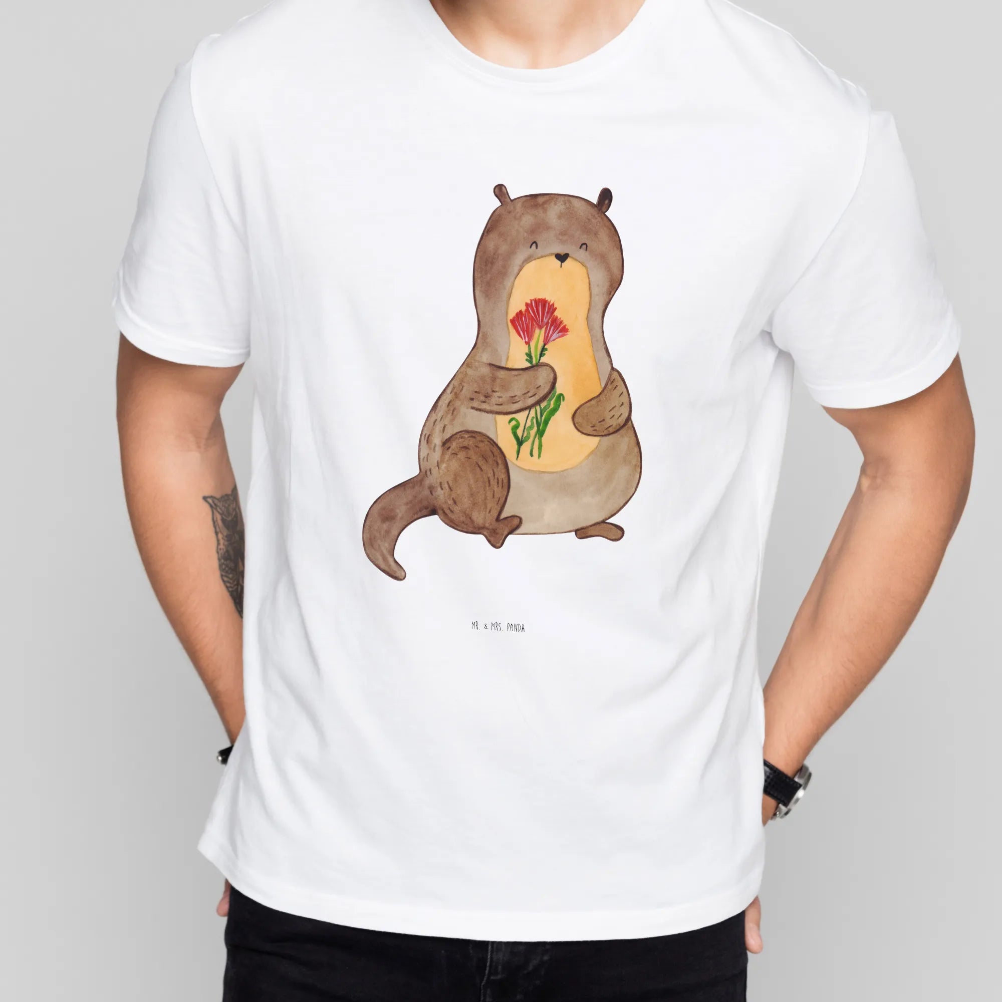 Rozmiar M T-shirt wydra bukiet kwiatów - Größe L T-Shirt - z napisem - biały