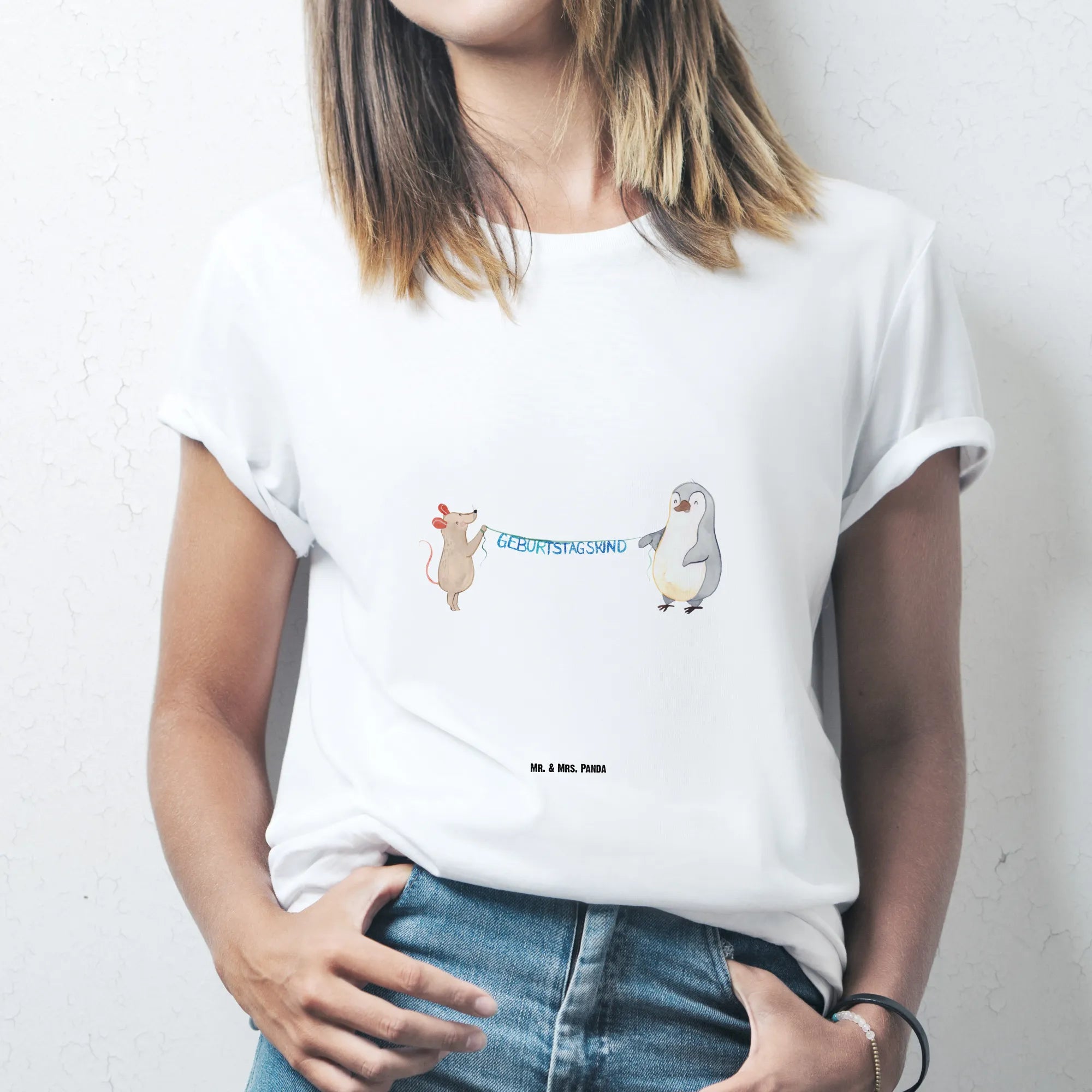 Rozmiar XXL T-shirt Mysz Pingwin urodziny - Größe XXL T-Shirt - z napisem