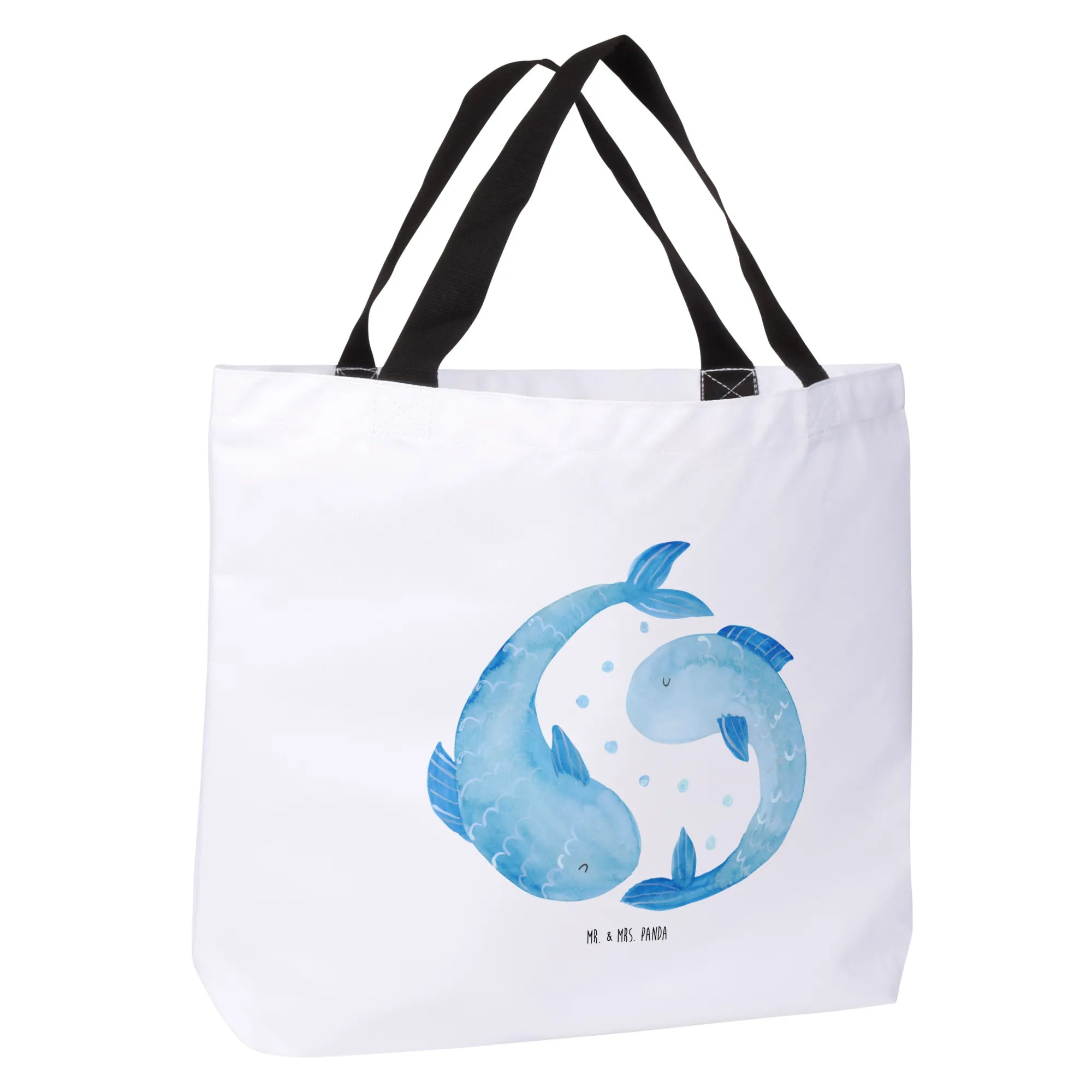 Shopper znak zodiaku Ryby - z napisem - Biały