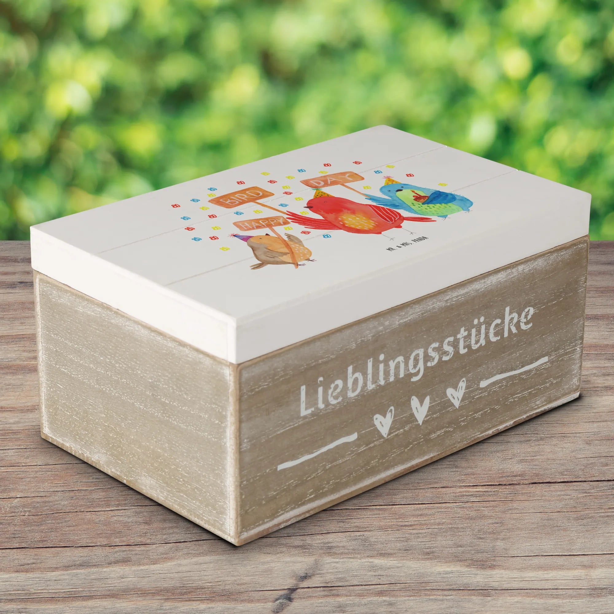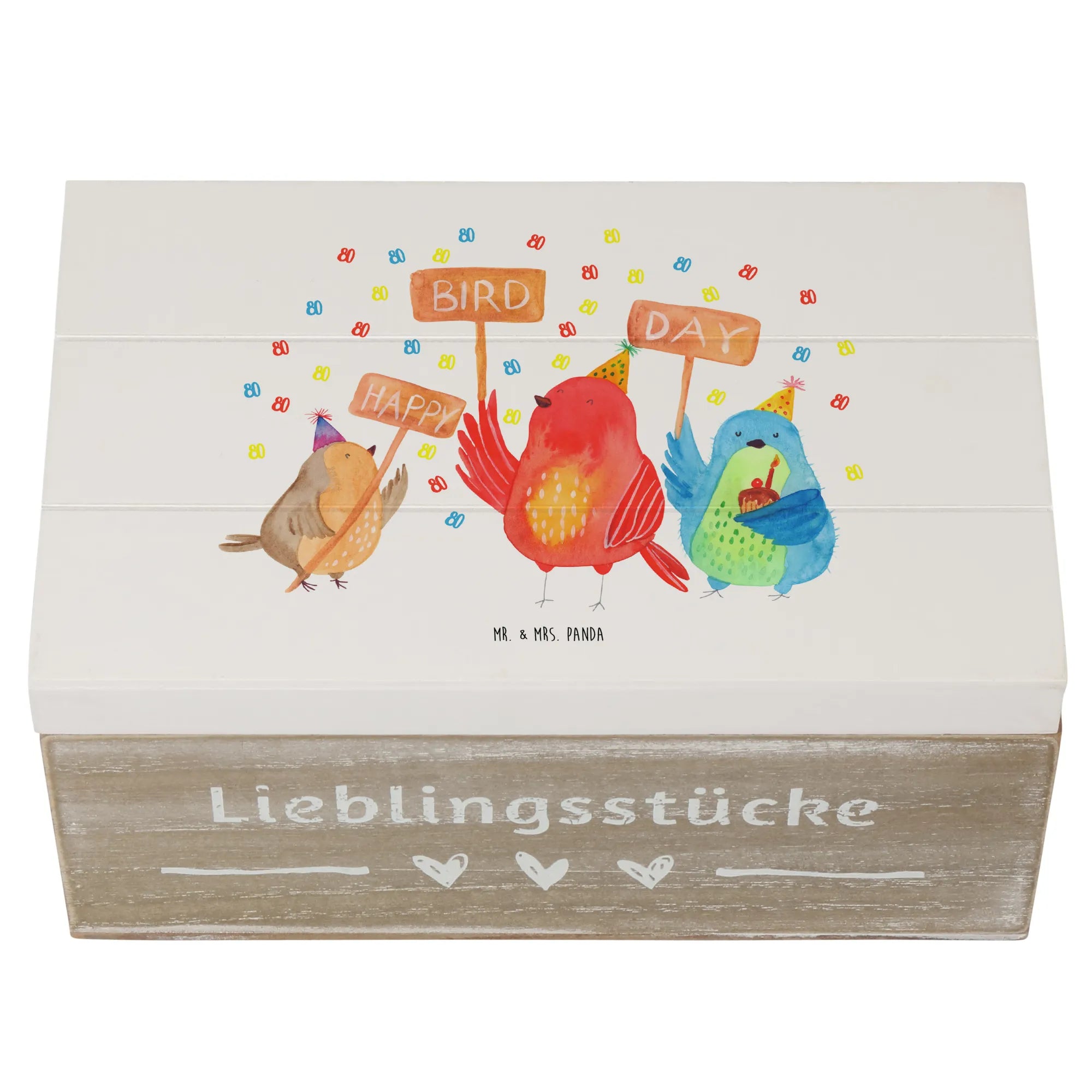 Skrzynia drewniana 80. urodziny Szczęśliwego Dnia Ptaków - 22 x 15 cm - z napisem