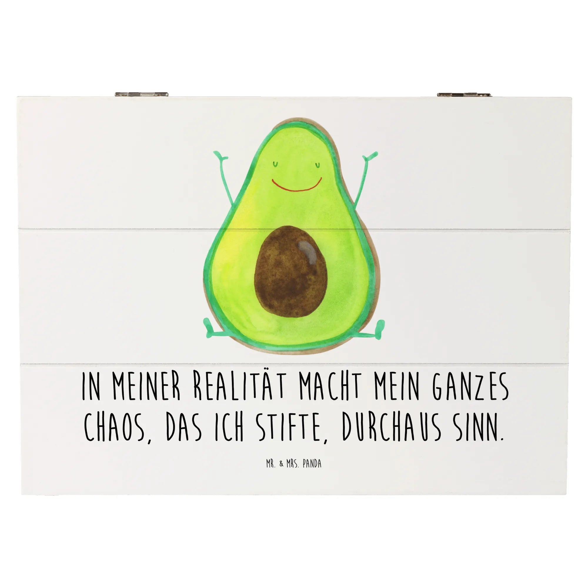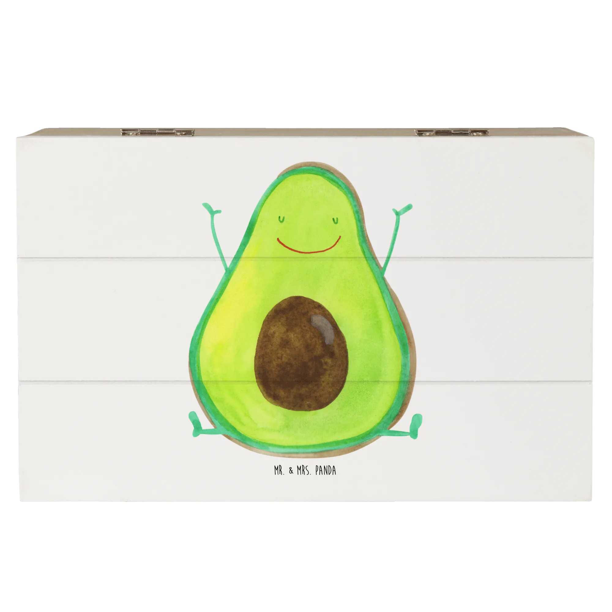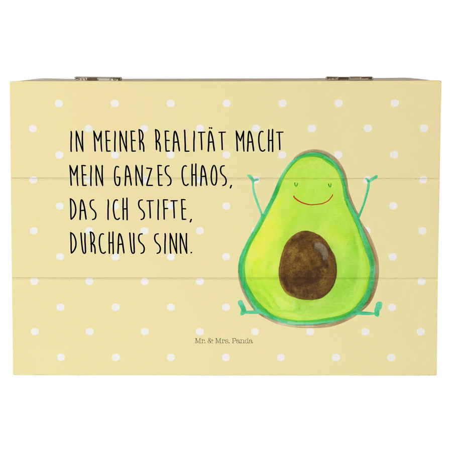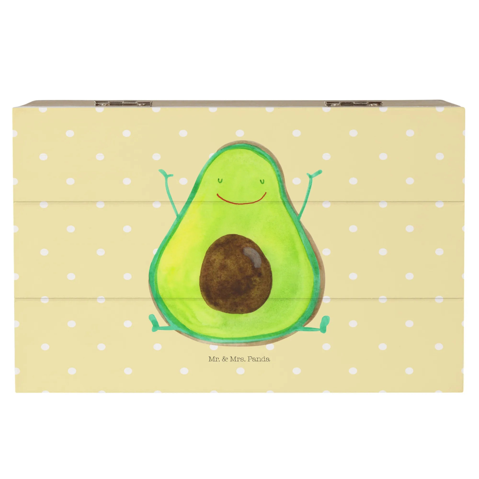 Skrzynia drewniana Awokado Szczęśliwy - 22 x 15 cm - z napisem - Pastelowy żółty