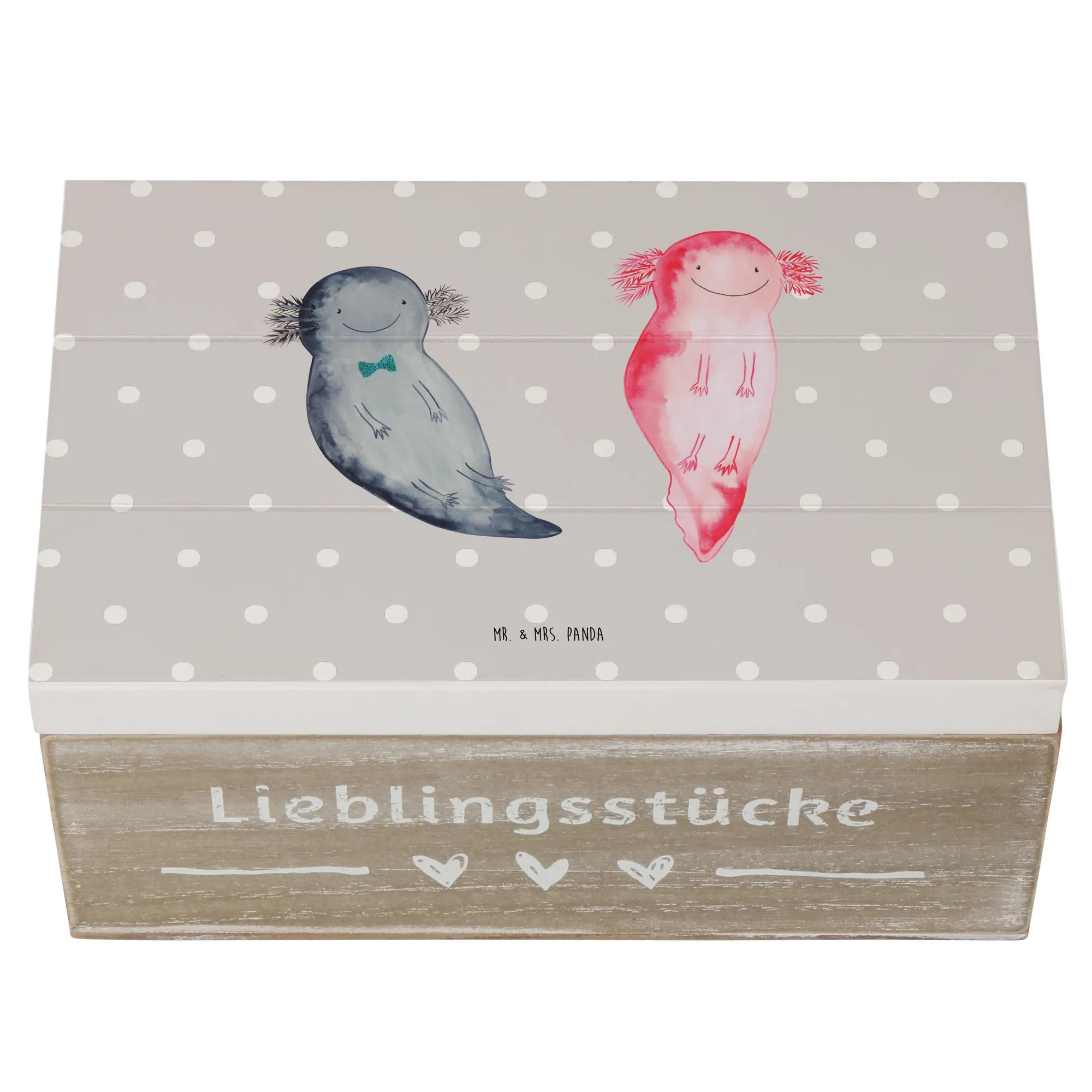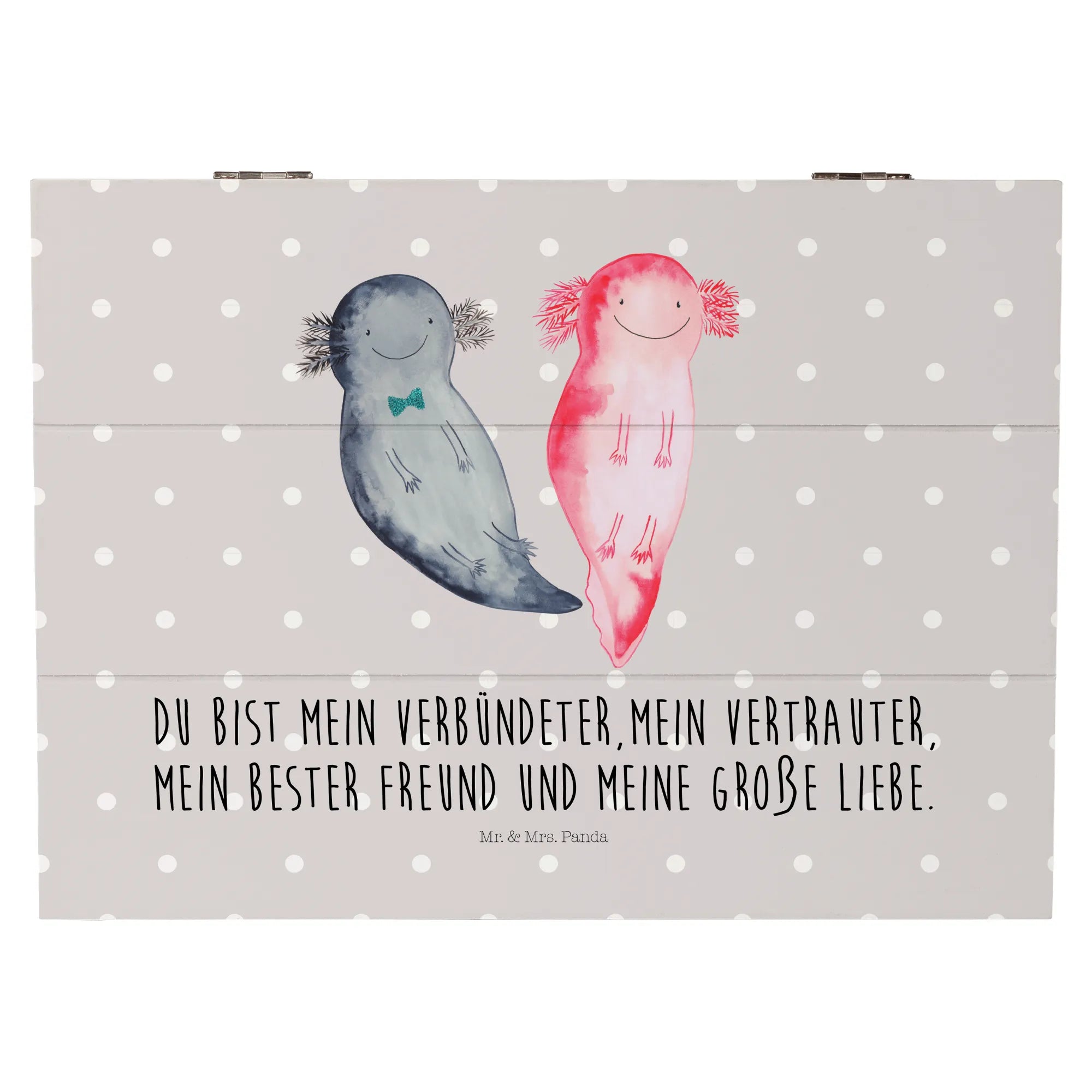 Skrzynia drewniana Axolotl Przyjaciółka - 22 x 15 cm - z napisem - Pastelowy szary