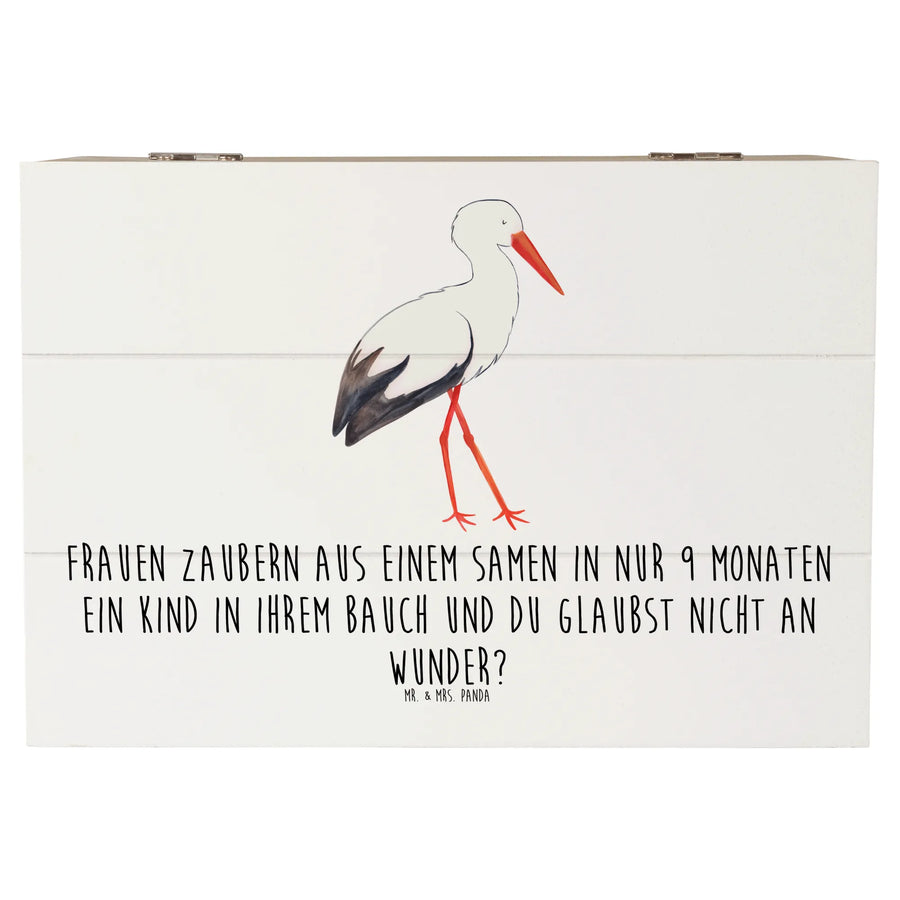 Skrzynia drewniana Bocian - 22 x 15 cm - z napisem - Biały