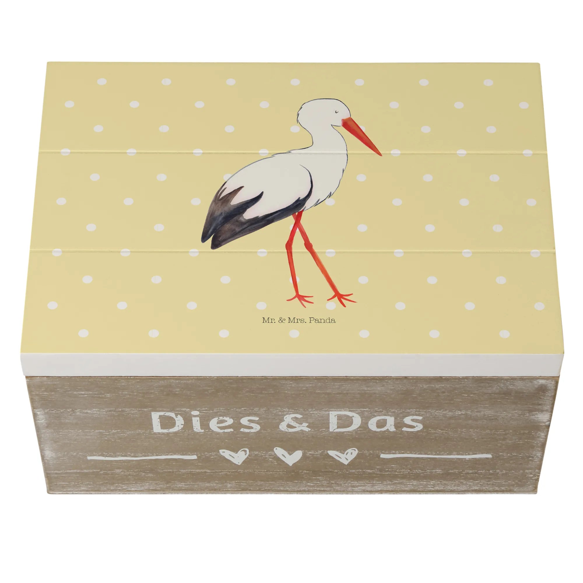 Skrzynia drewniana Bocian - 22 x 15 cm - z napisem - biały