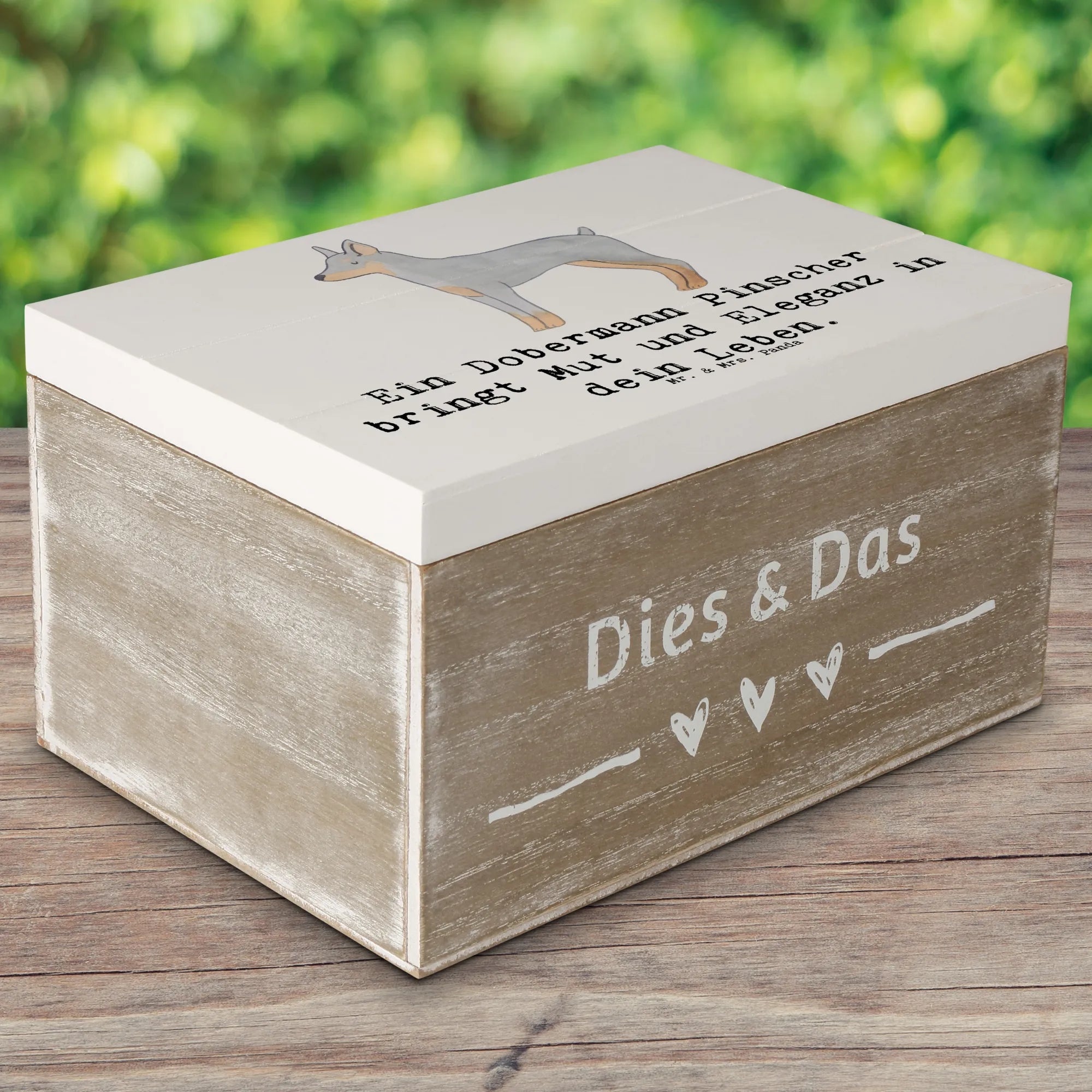 Skrzynia drewniana Ein Dobermann Pinscher bringt Mut und Eleganz in dein Leben. - 22 x 15 cm - Pastelowy szary