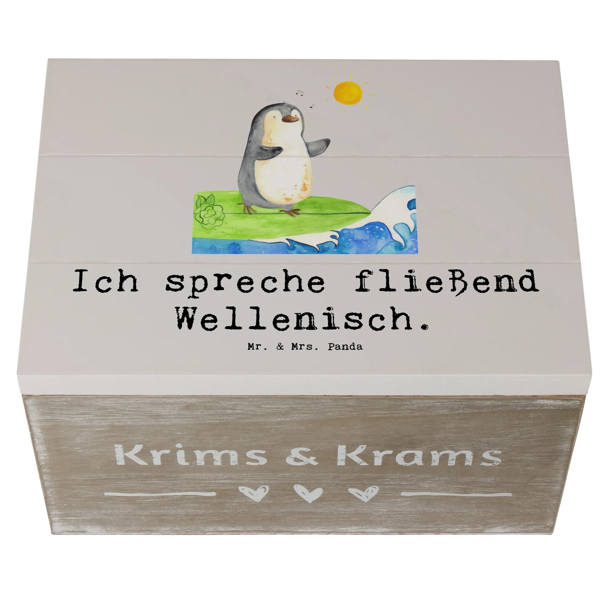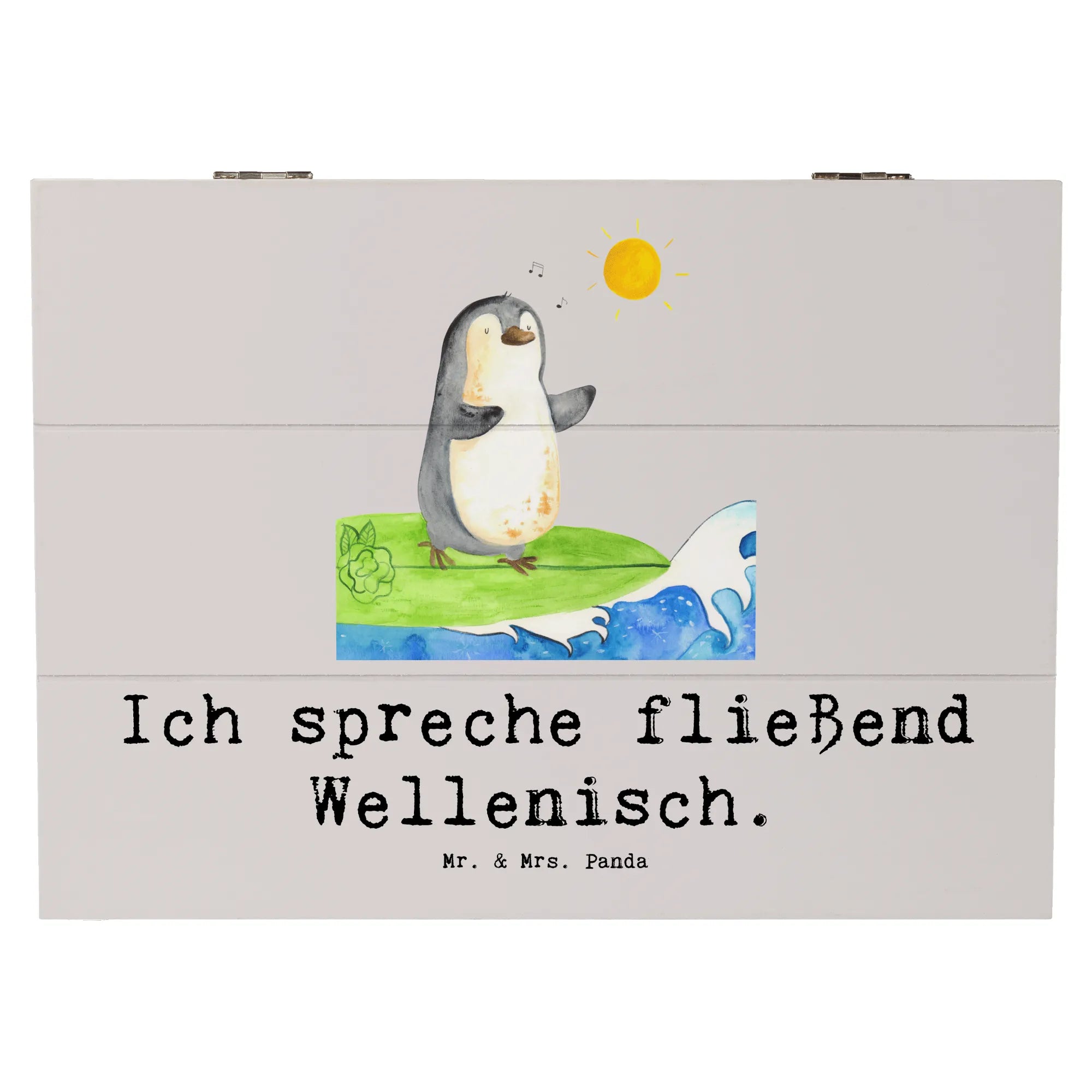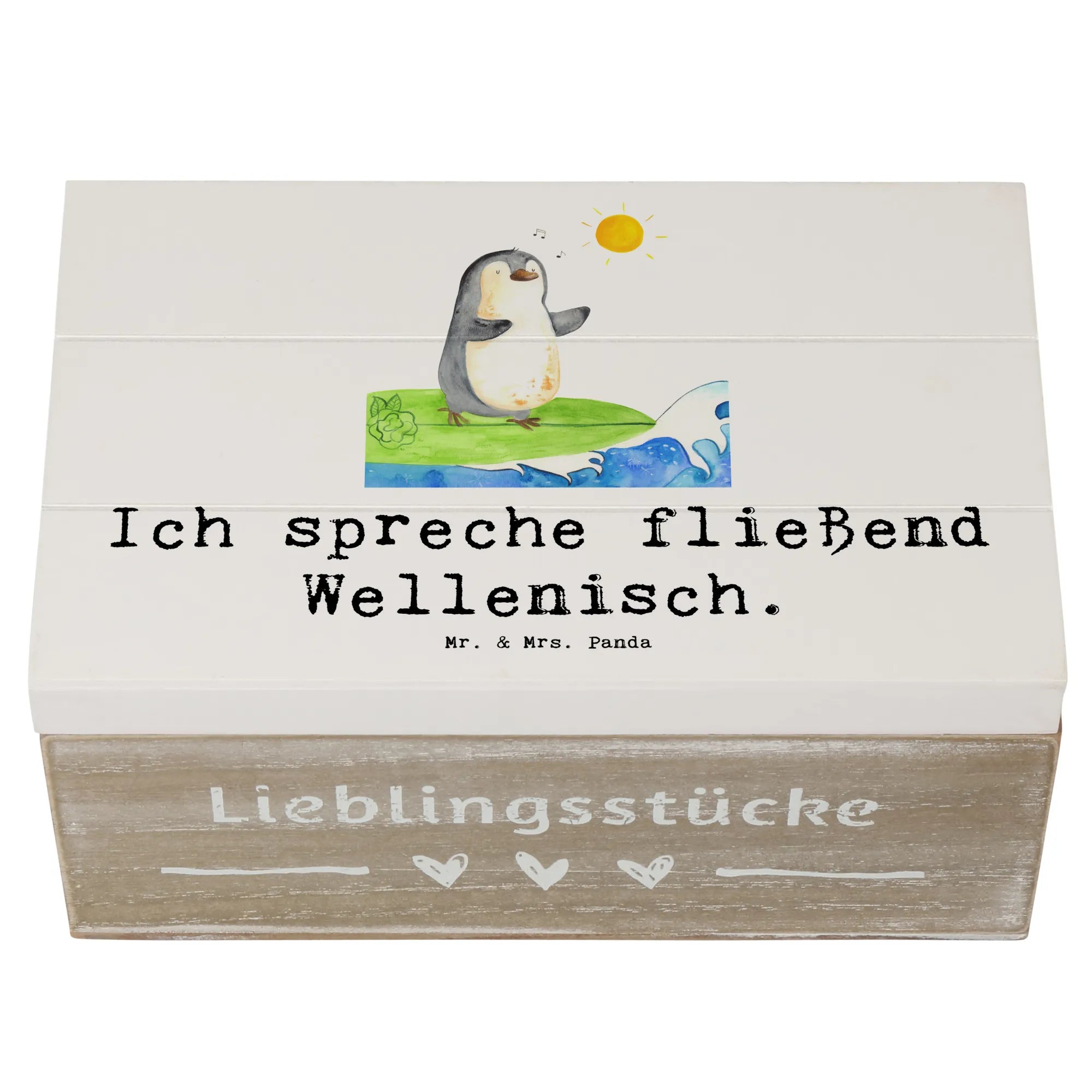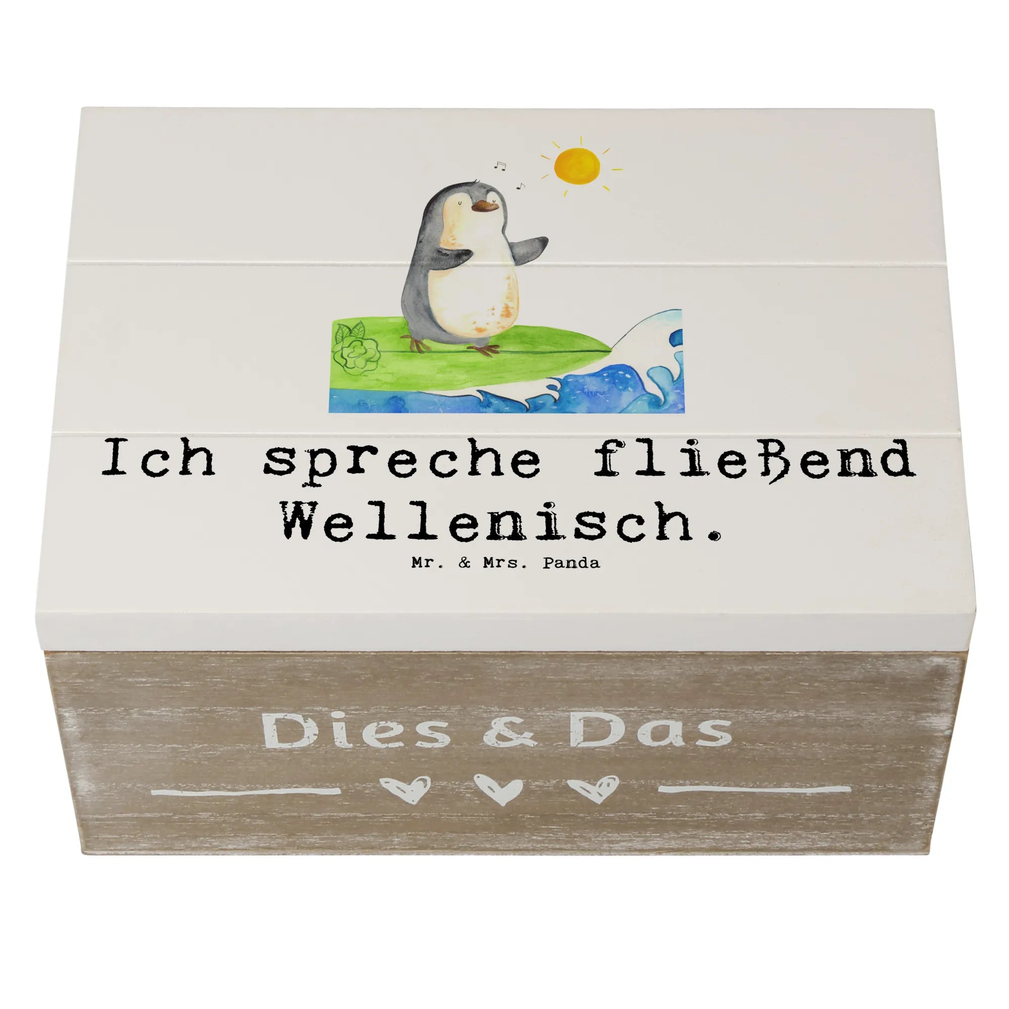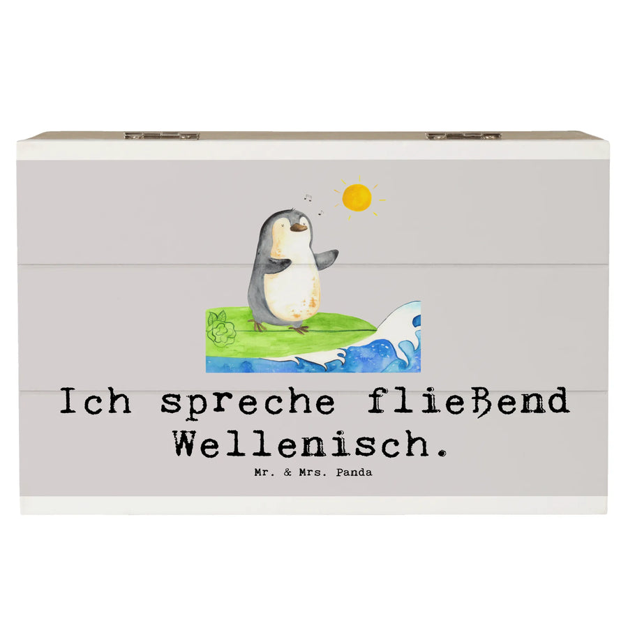 Skrzynia drewniana Ich spreche fließend Wellenisch. - 19 x 12 cm - Pastelowy szary