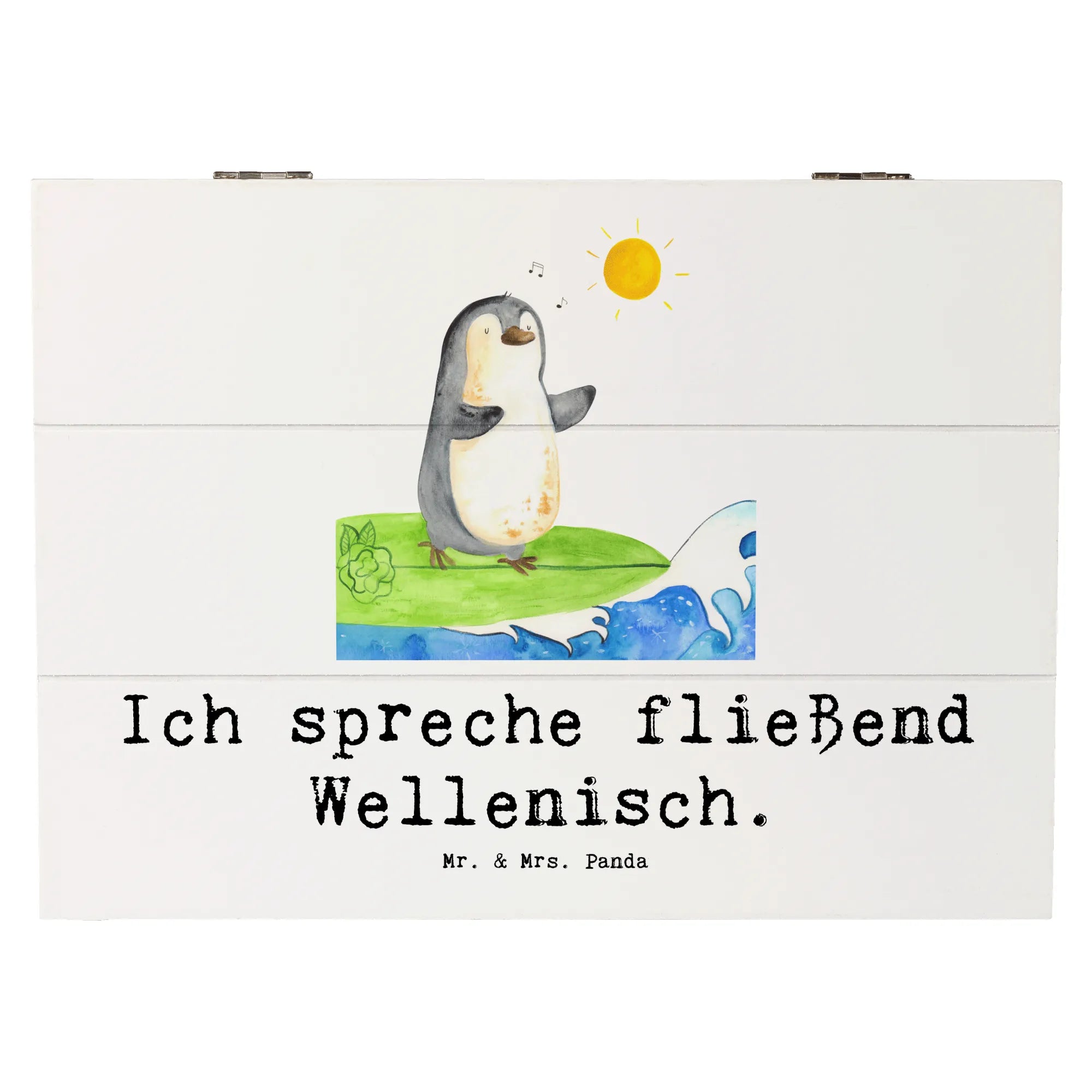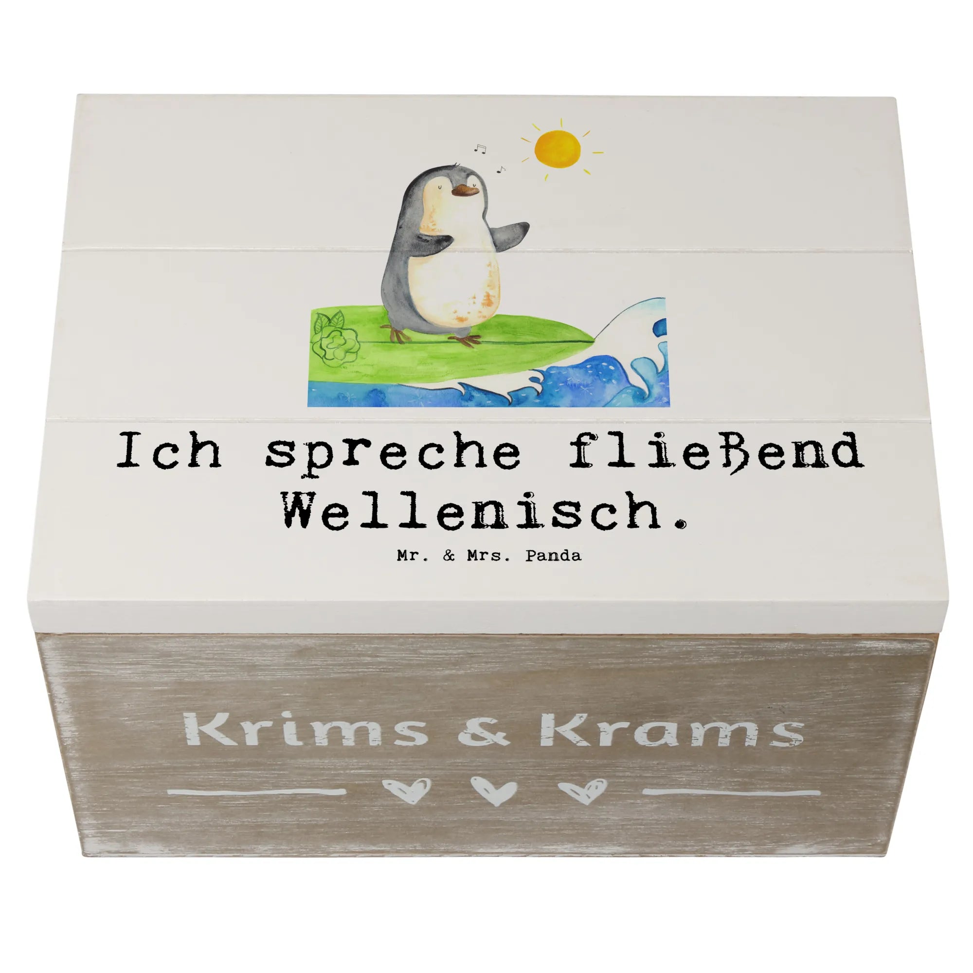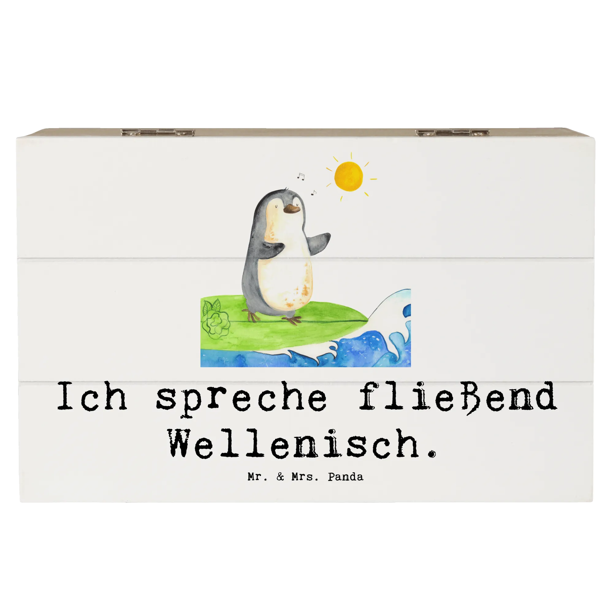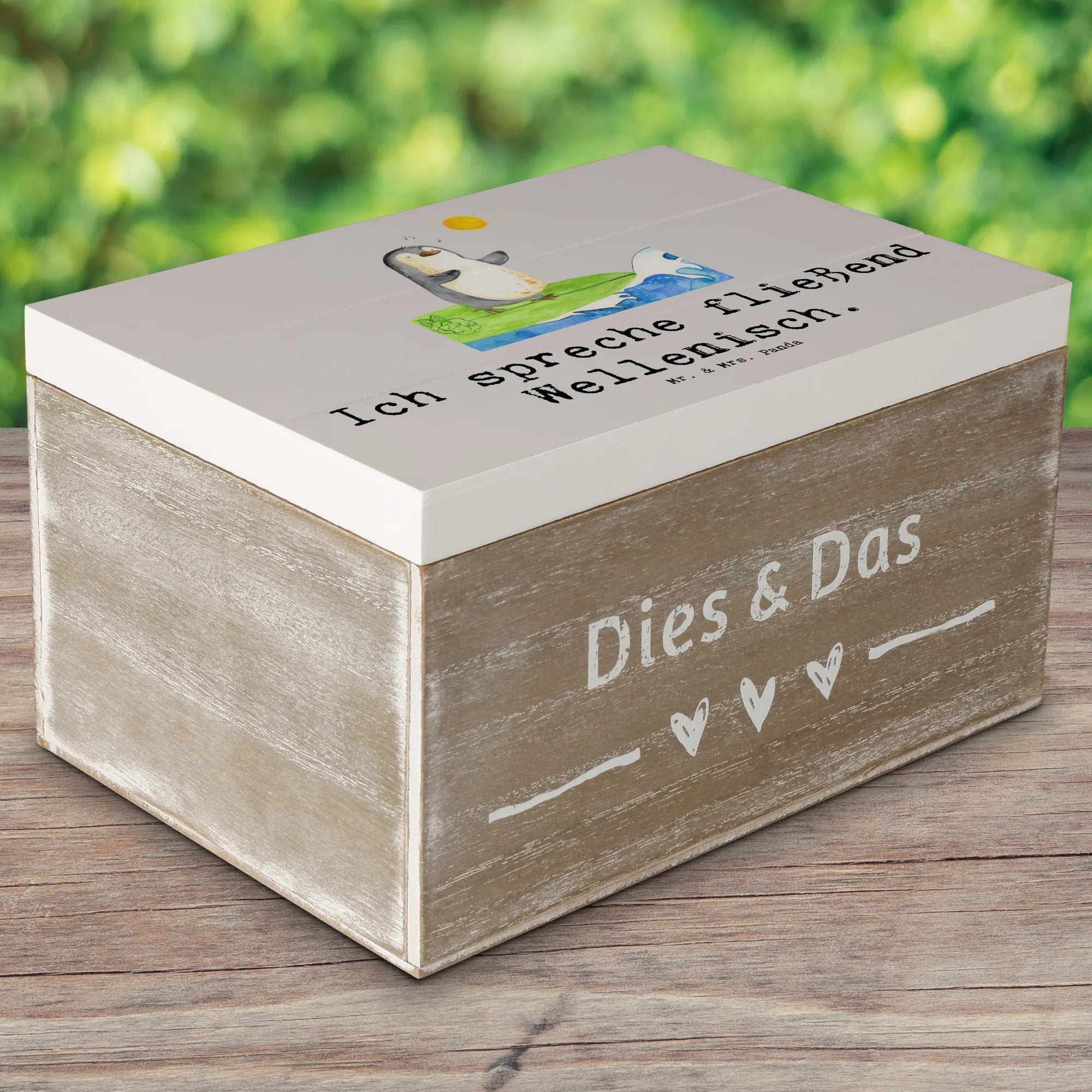 Skrzynia drewniana Ich spreche fließend Wellenisch. - 19 x 12 cm - Pastelowy szary