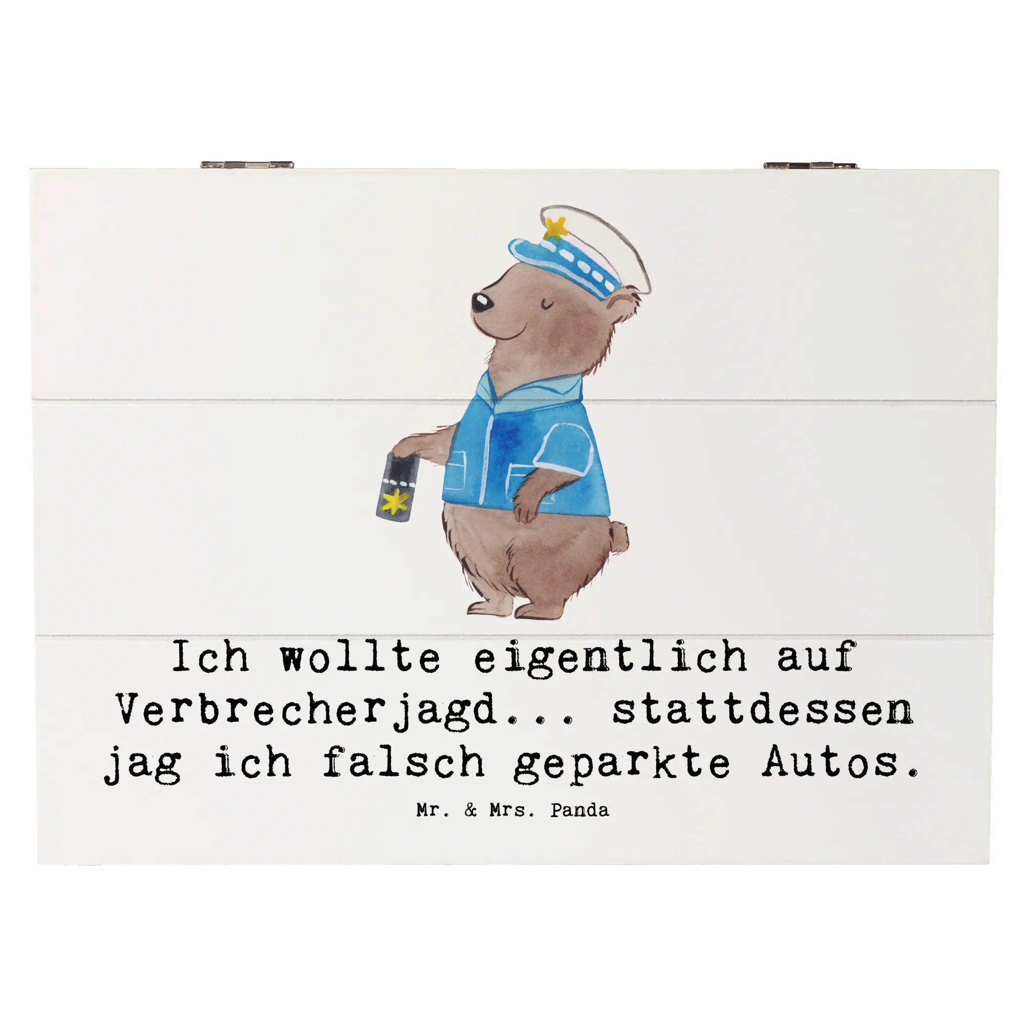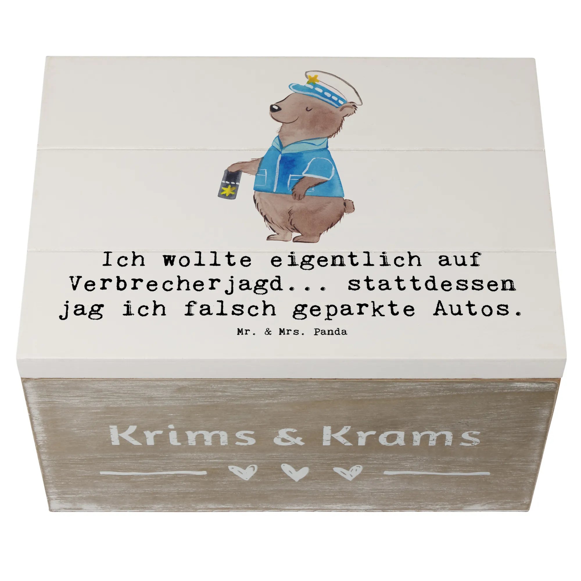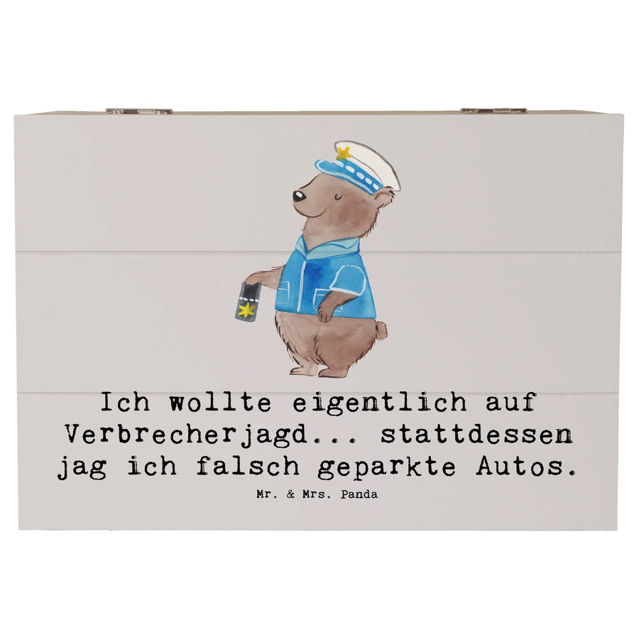 Skrzynia drewniana Ich wollte eigentlich auf Verbrecherjagd... stattdessen jag ich falsch geparkte Autos. - 22 x 15 cm - Pastelowy szary