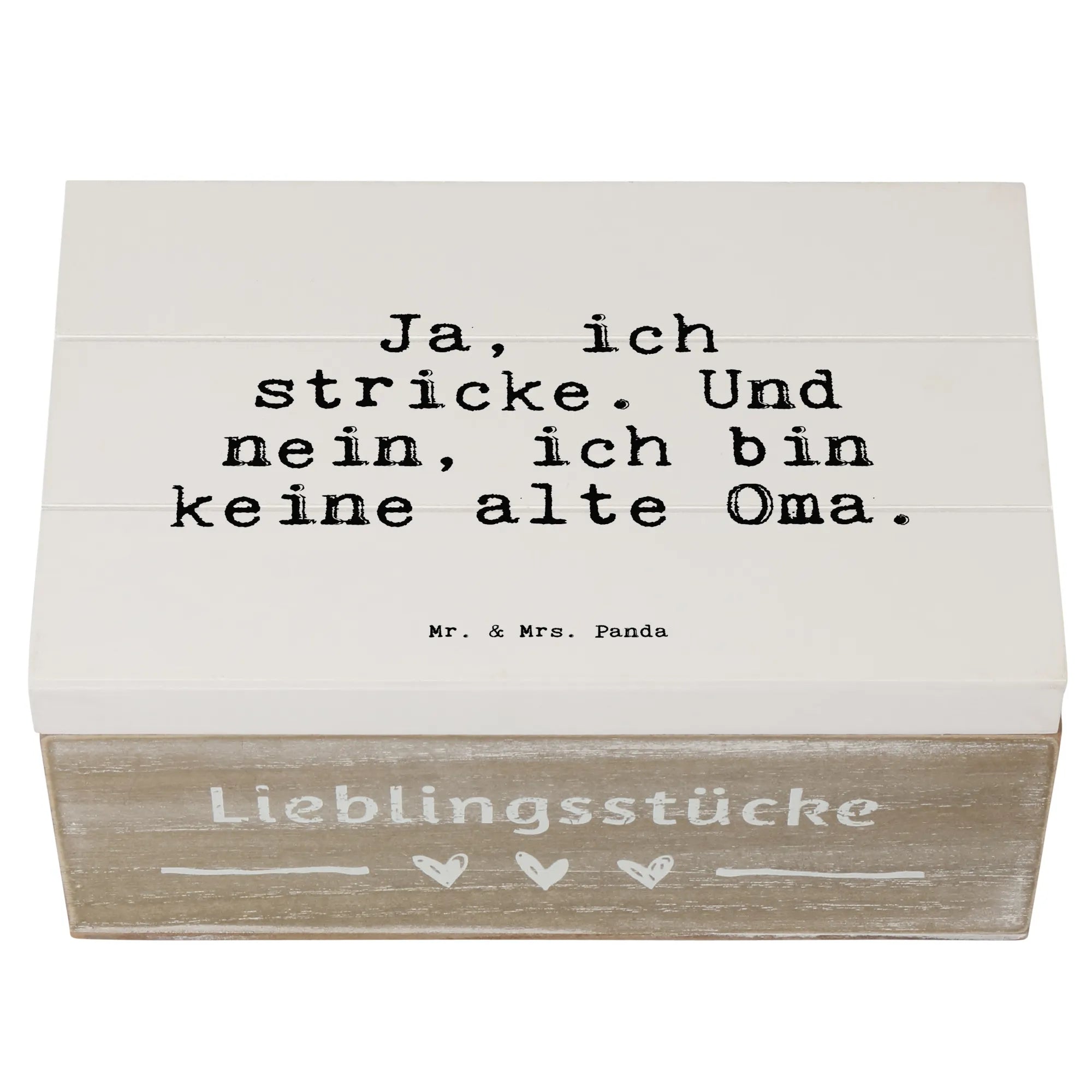 Skrzynia drewniana Ja, ich stricke. Und... - 25 x 18 cm - Twarda płyta pilśniowa