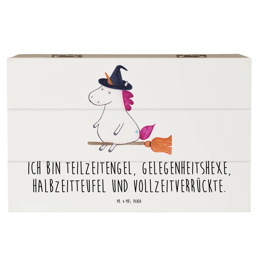 Skrzynia drewniana jednorożec Czarownica - 19 x 12 cm - z napisem - biały