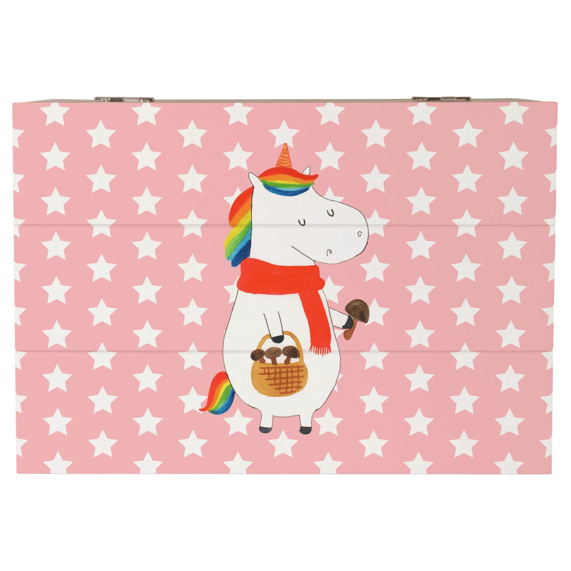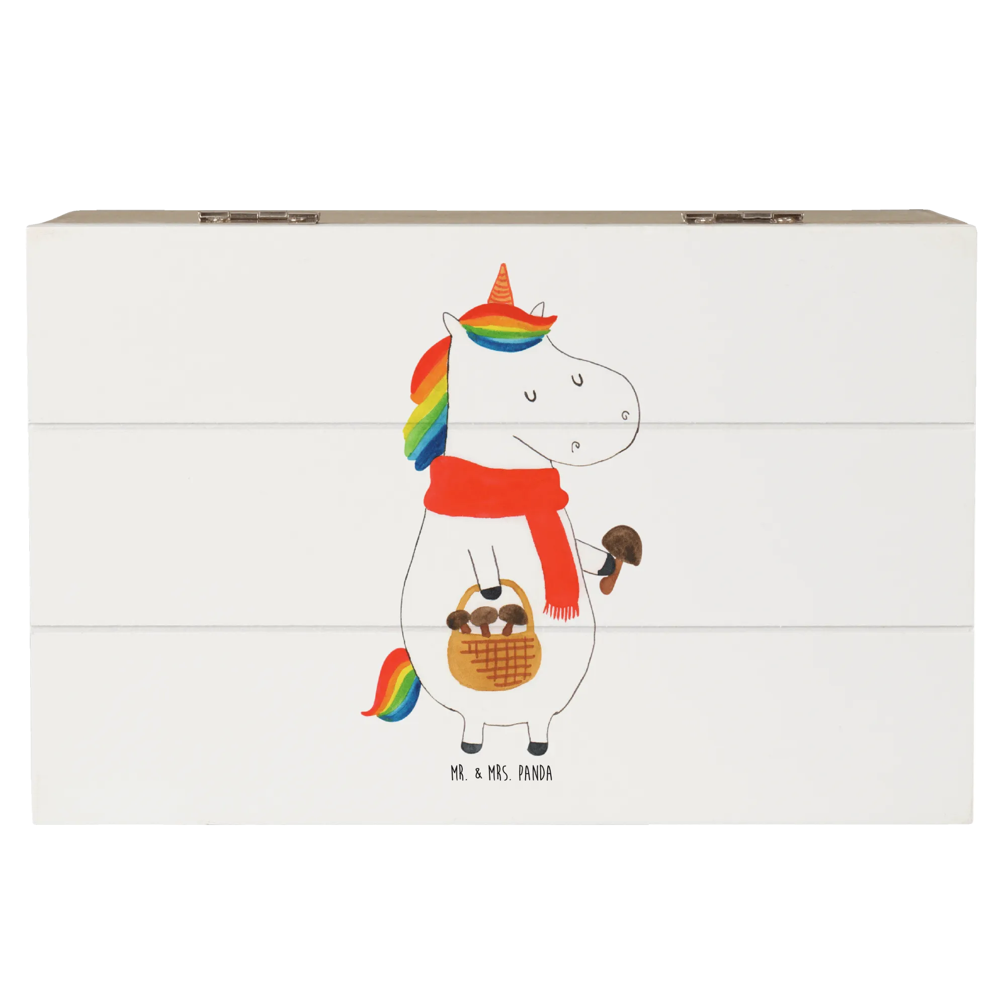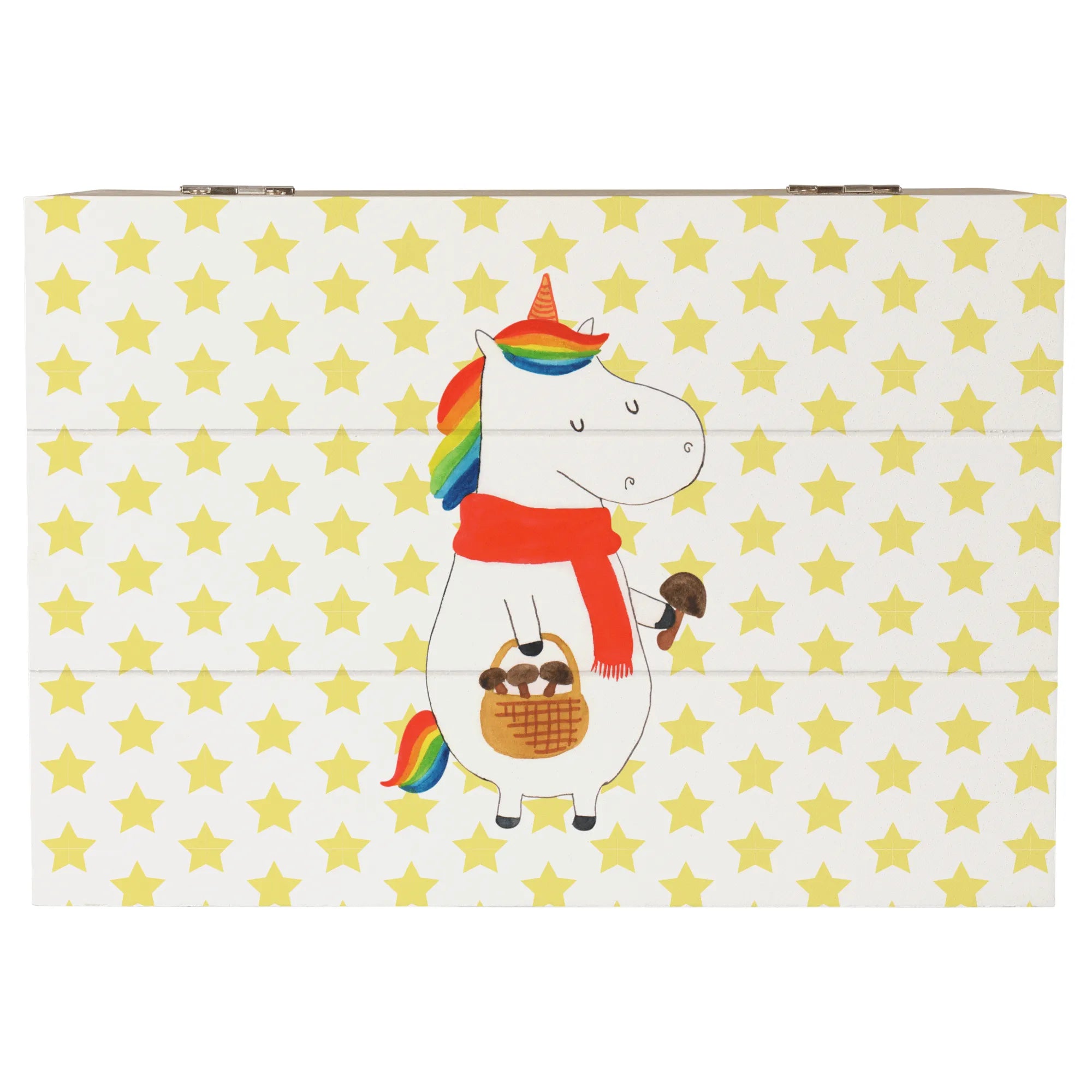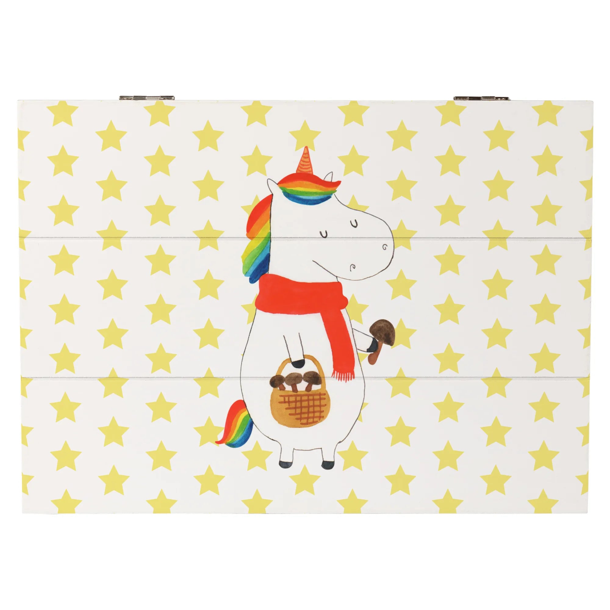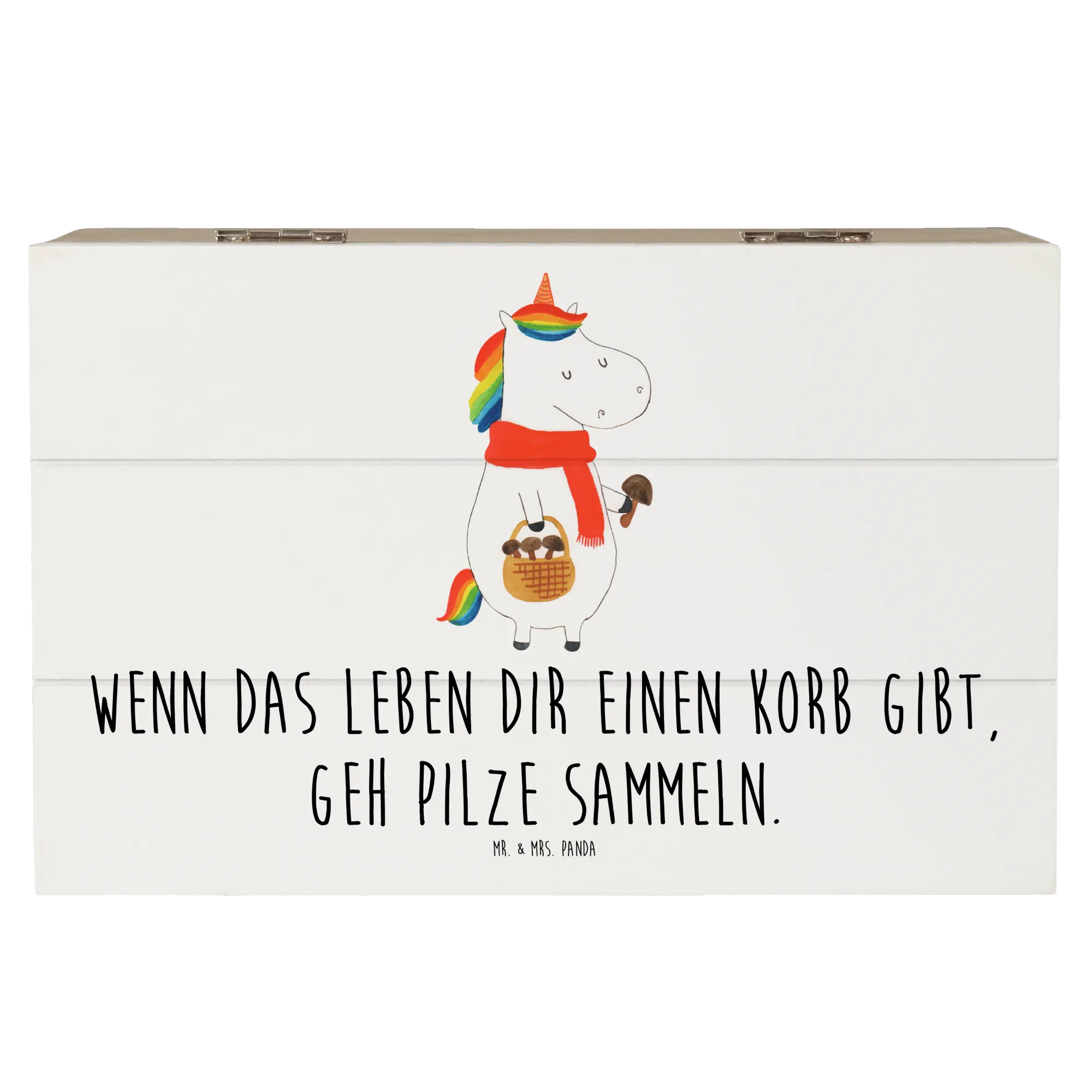Skrzynia drewniana Jednorożec grzyb - 22 x 15 cm - z napisem - Biały