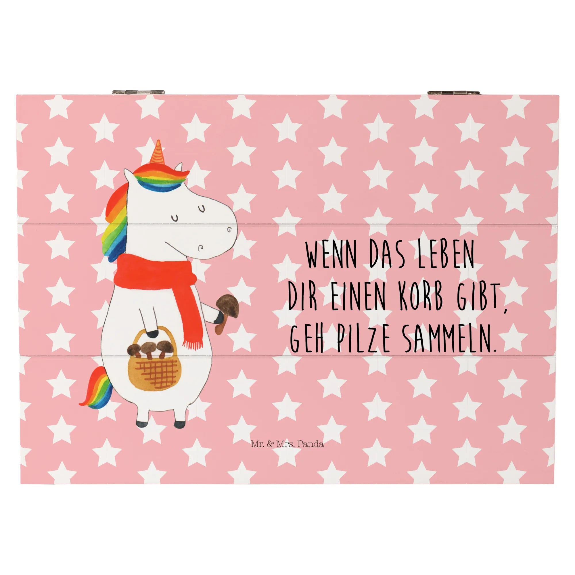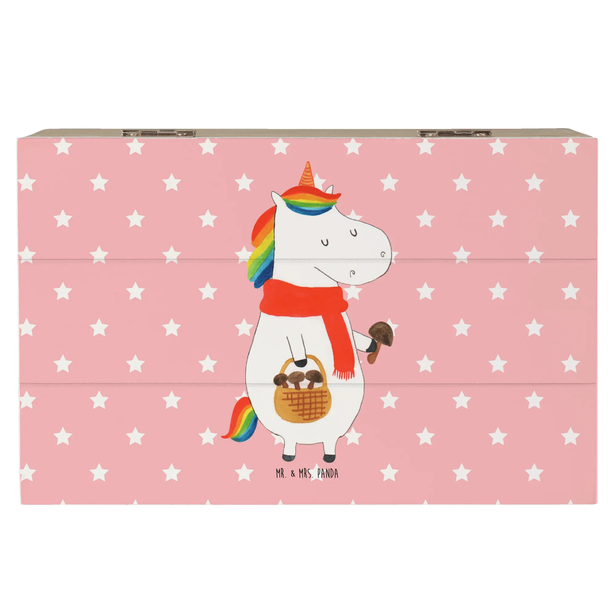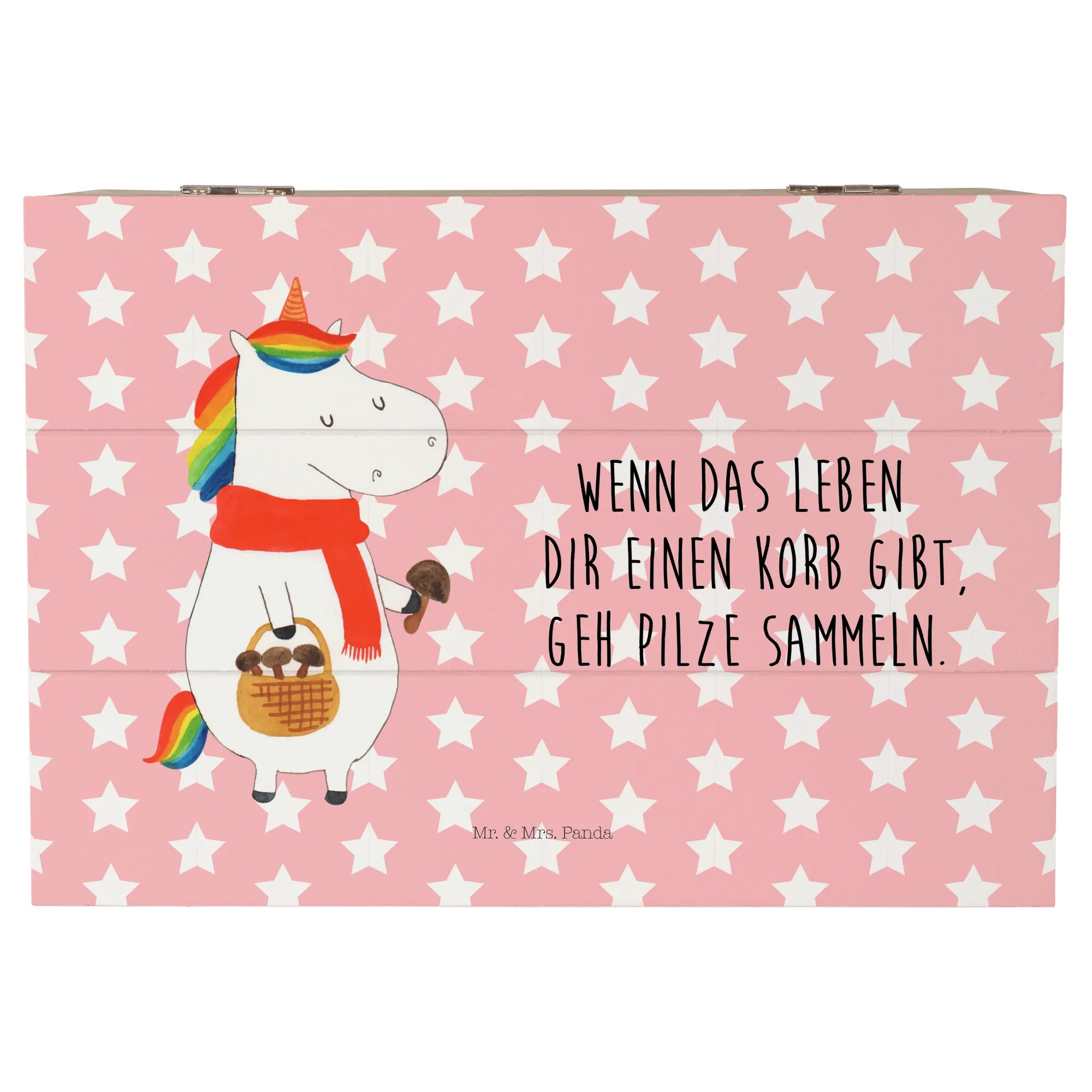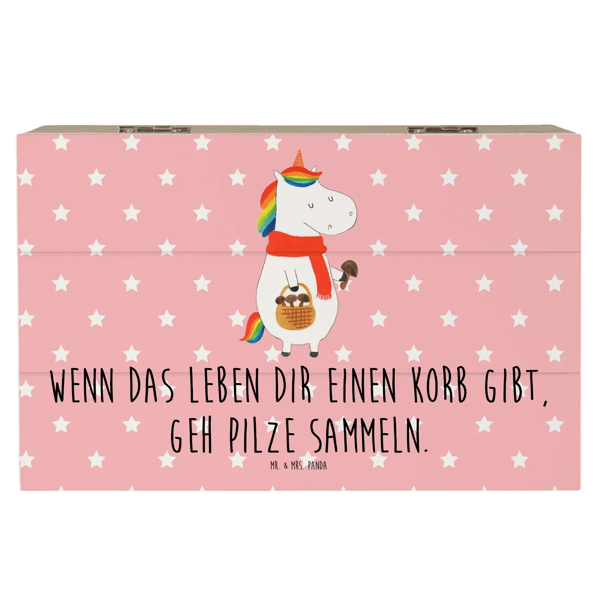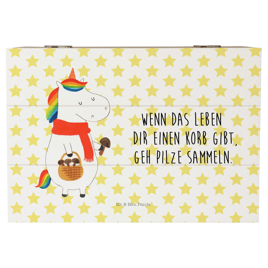 Skrzynia drewniana Jednorożec grzyb - 22 x 15 cm - z napisem - Biały