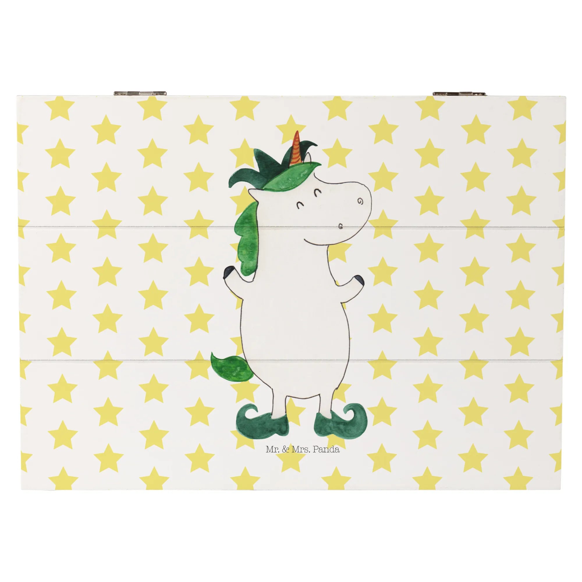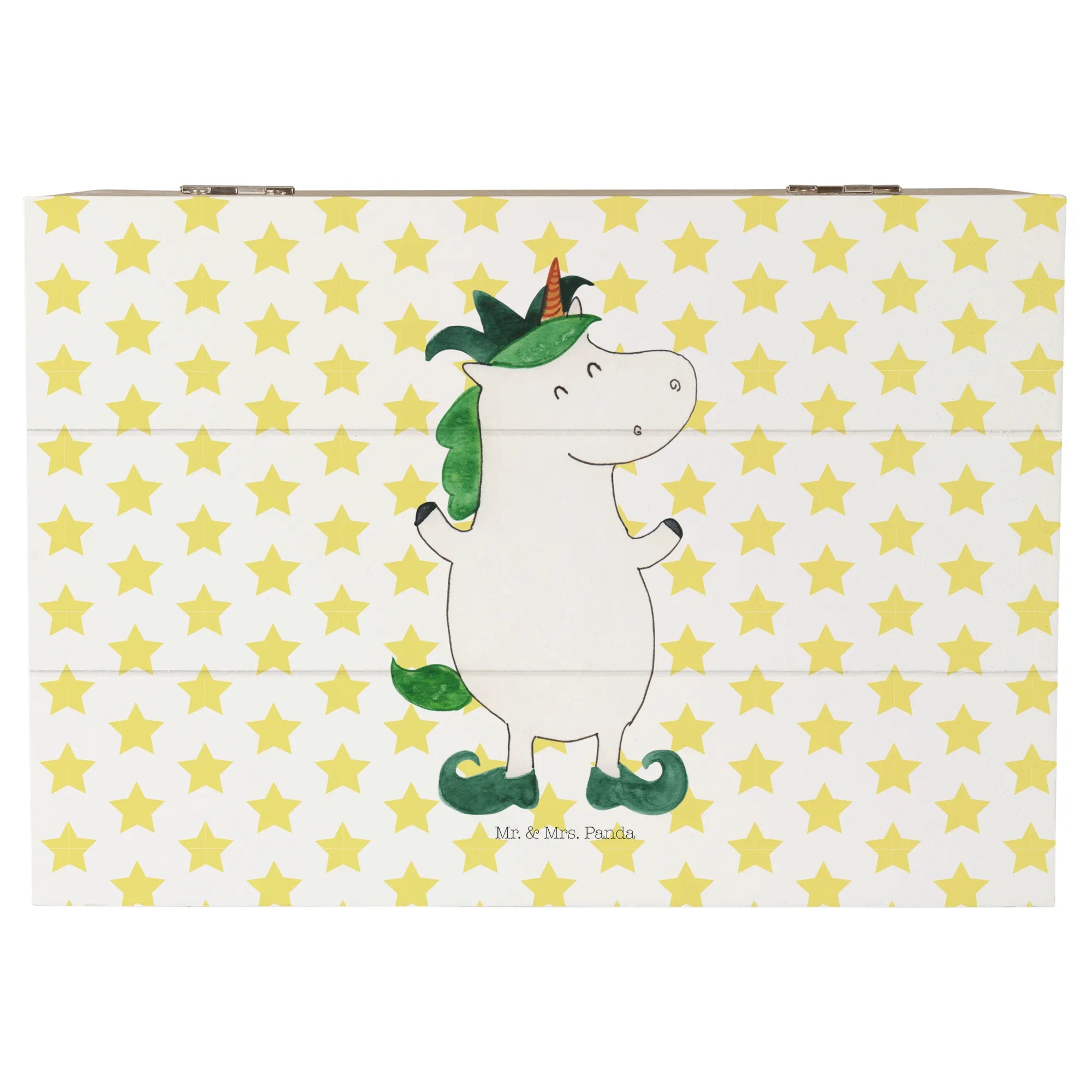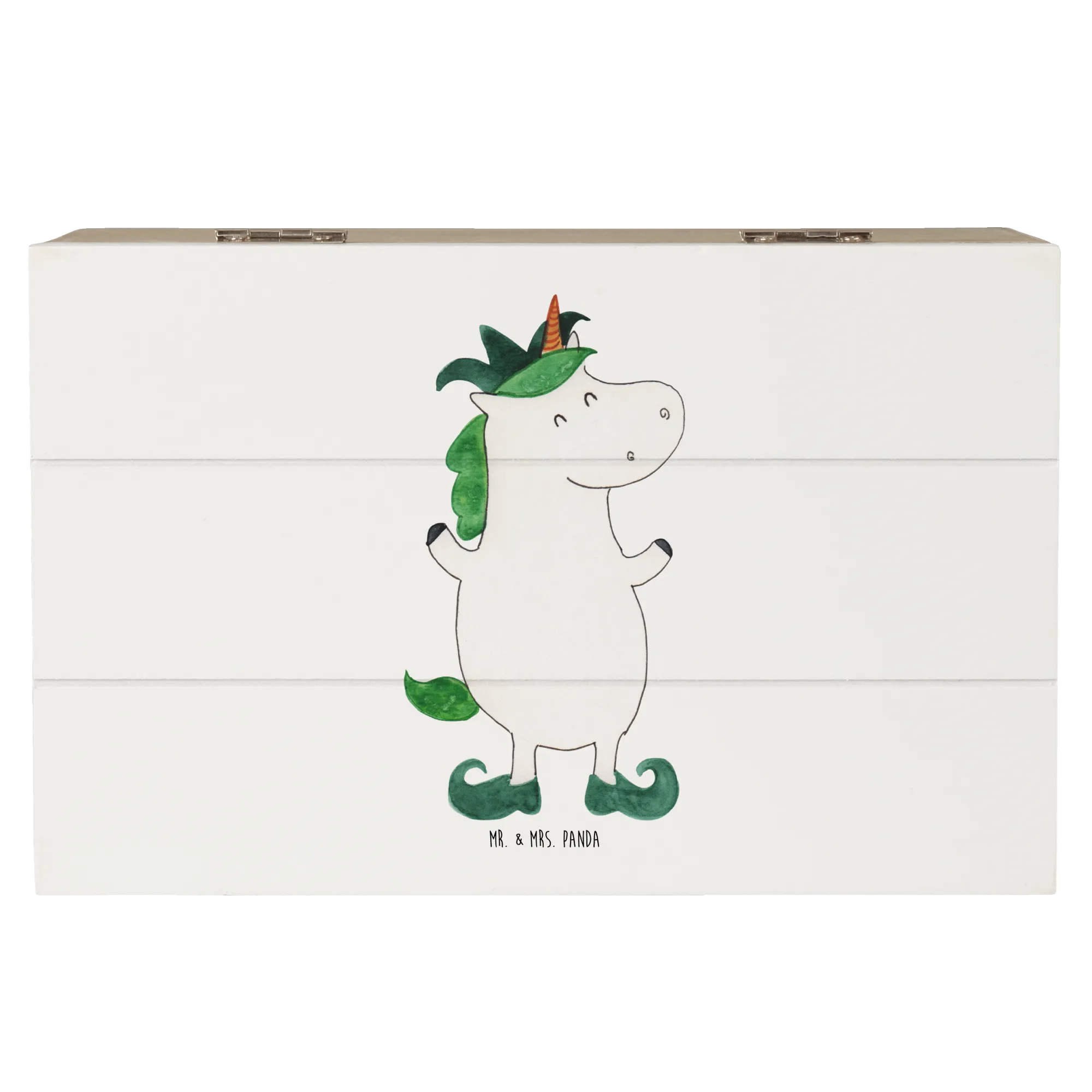 Skrzynia drewniana Jednorożec Joker - 22 x 15 cm - z napisem - biały