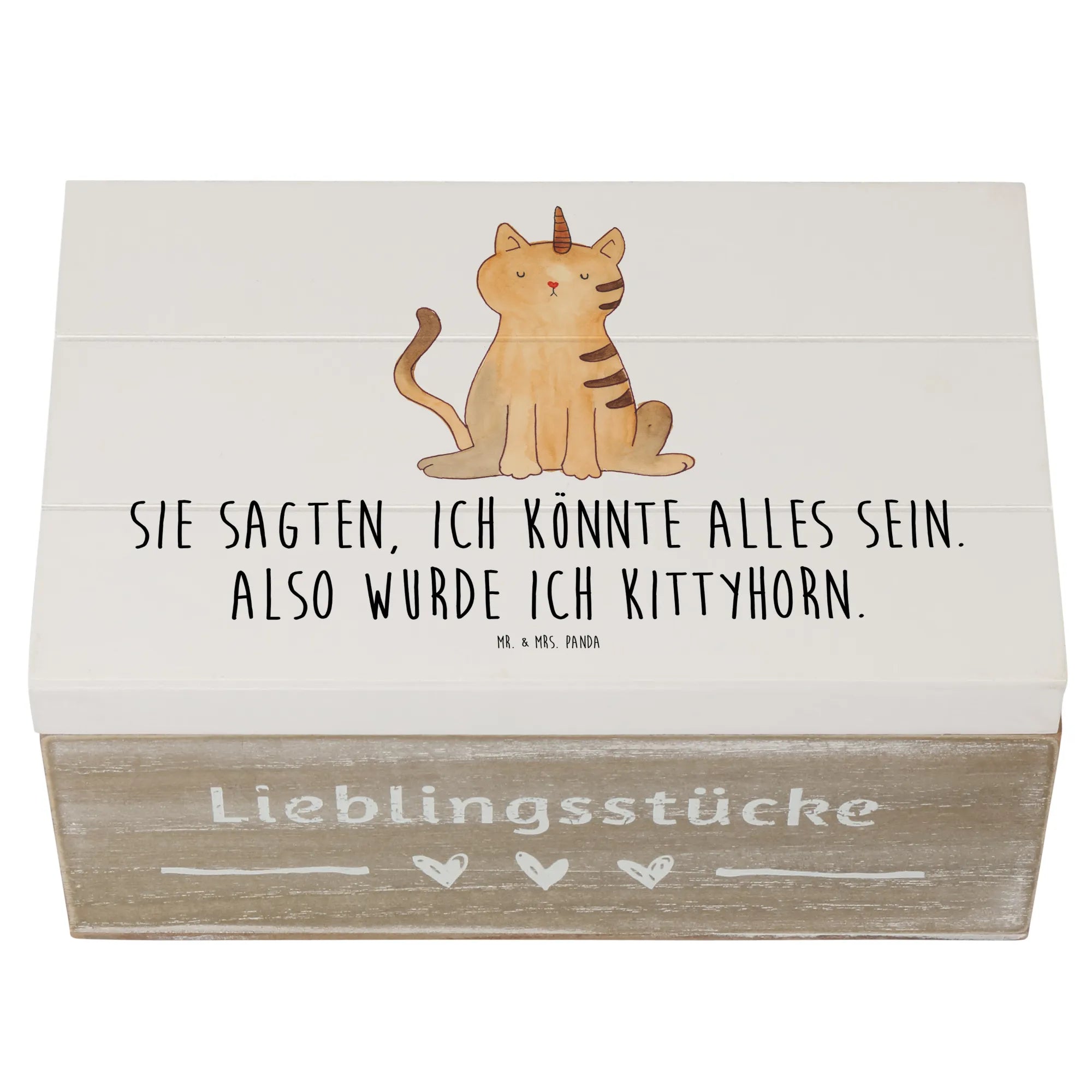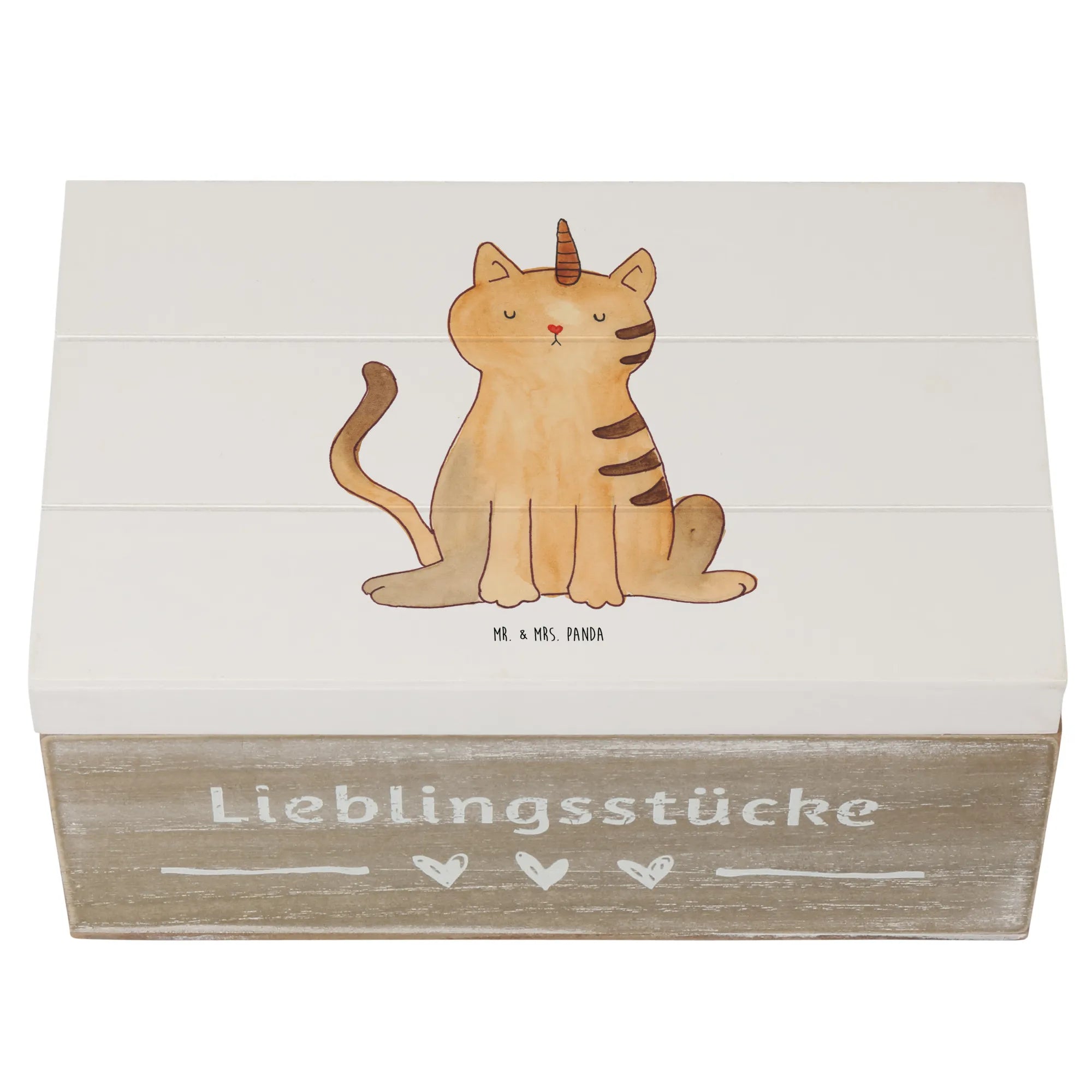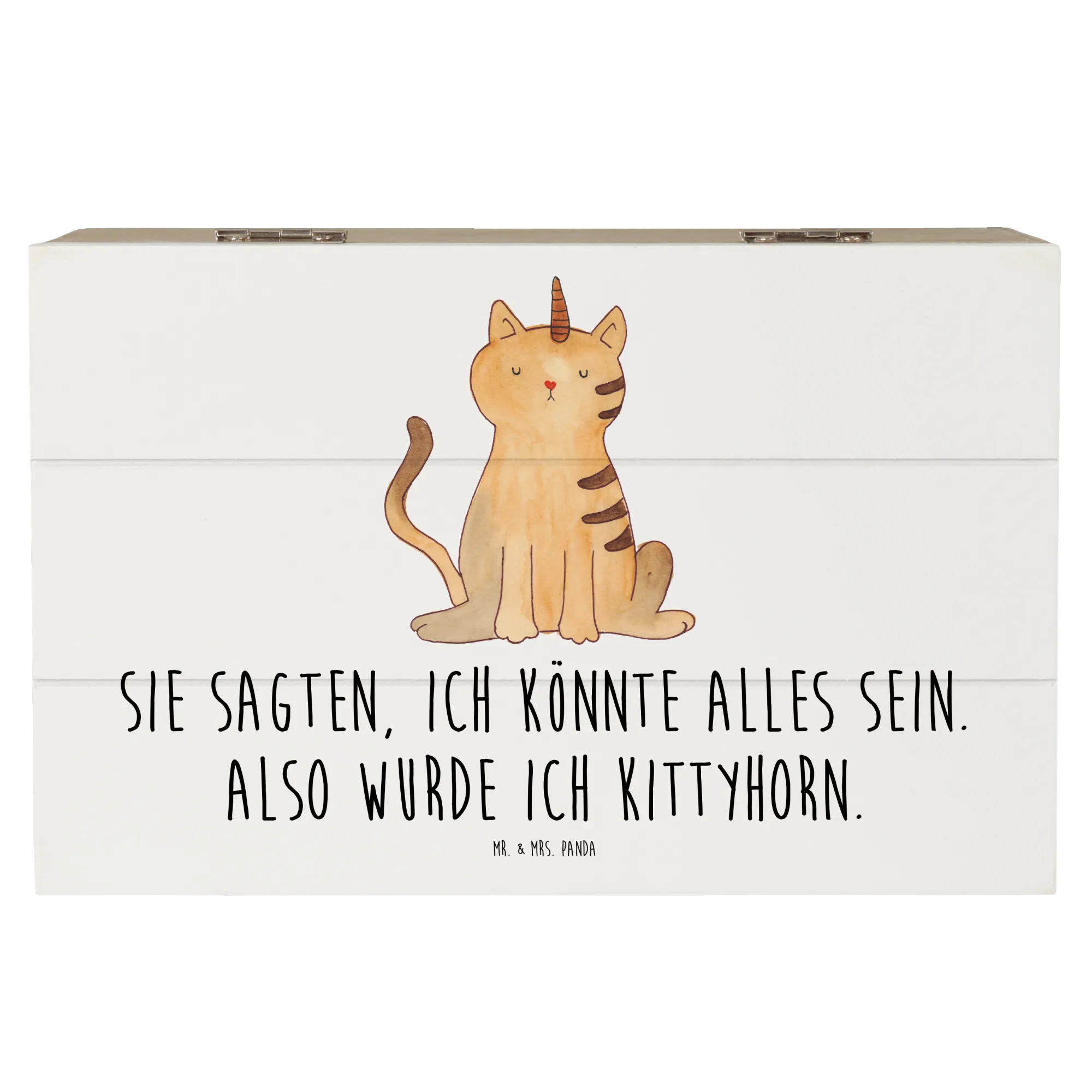 Skrzynia drewniana jednorożec kot - 22 x 15 cm - z napisem - biały