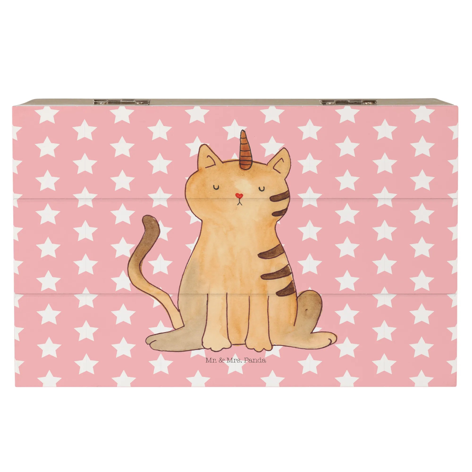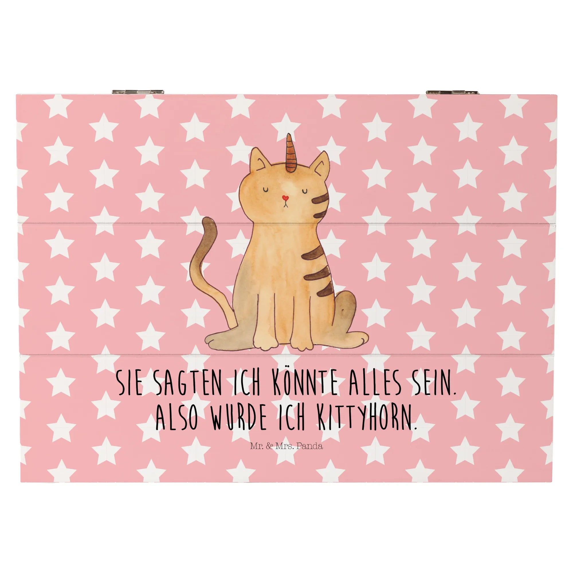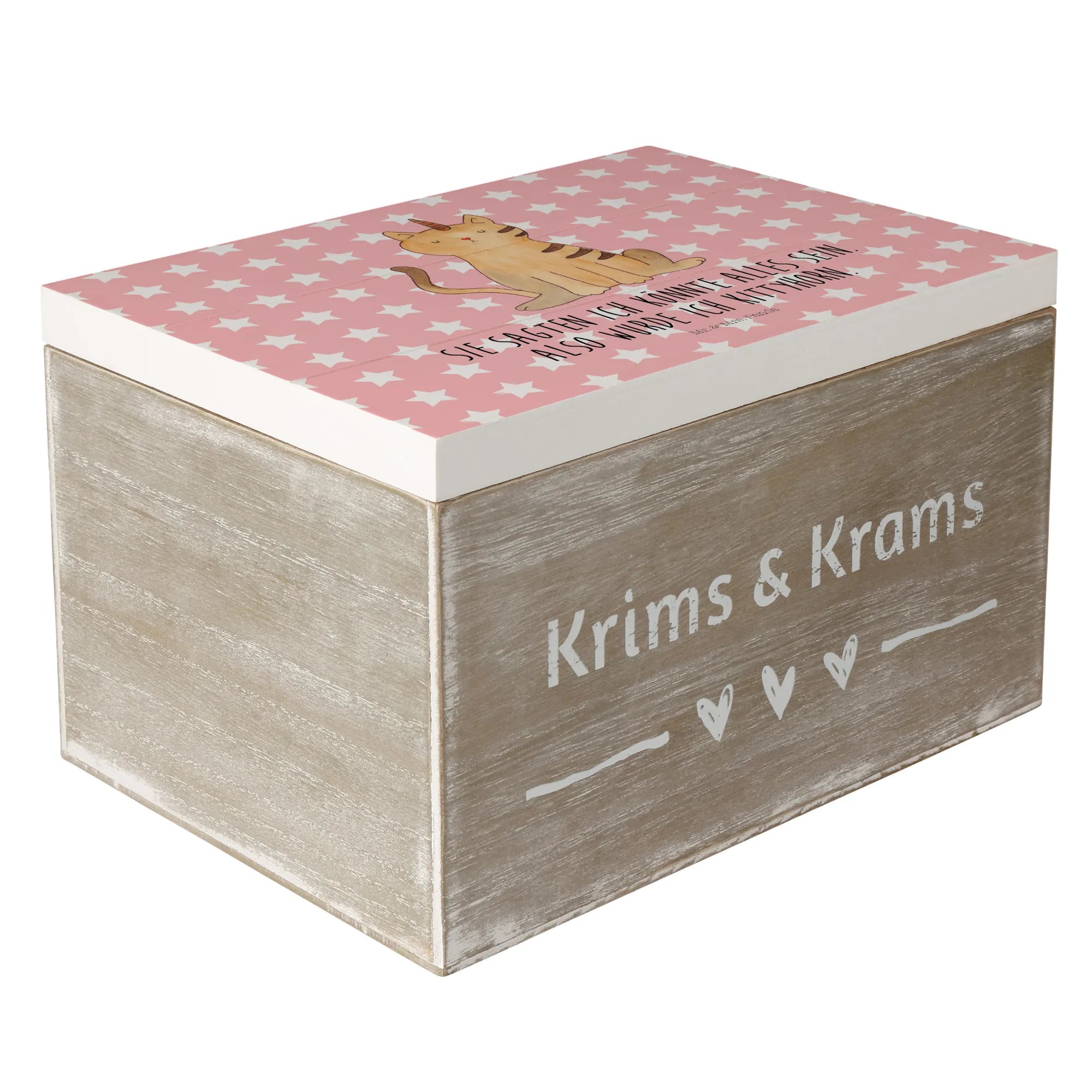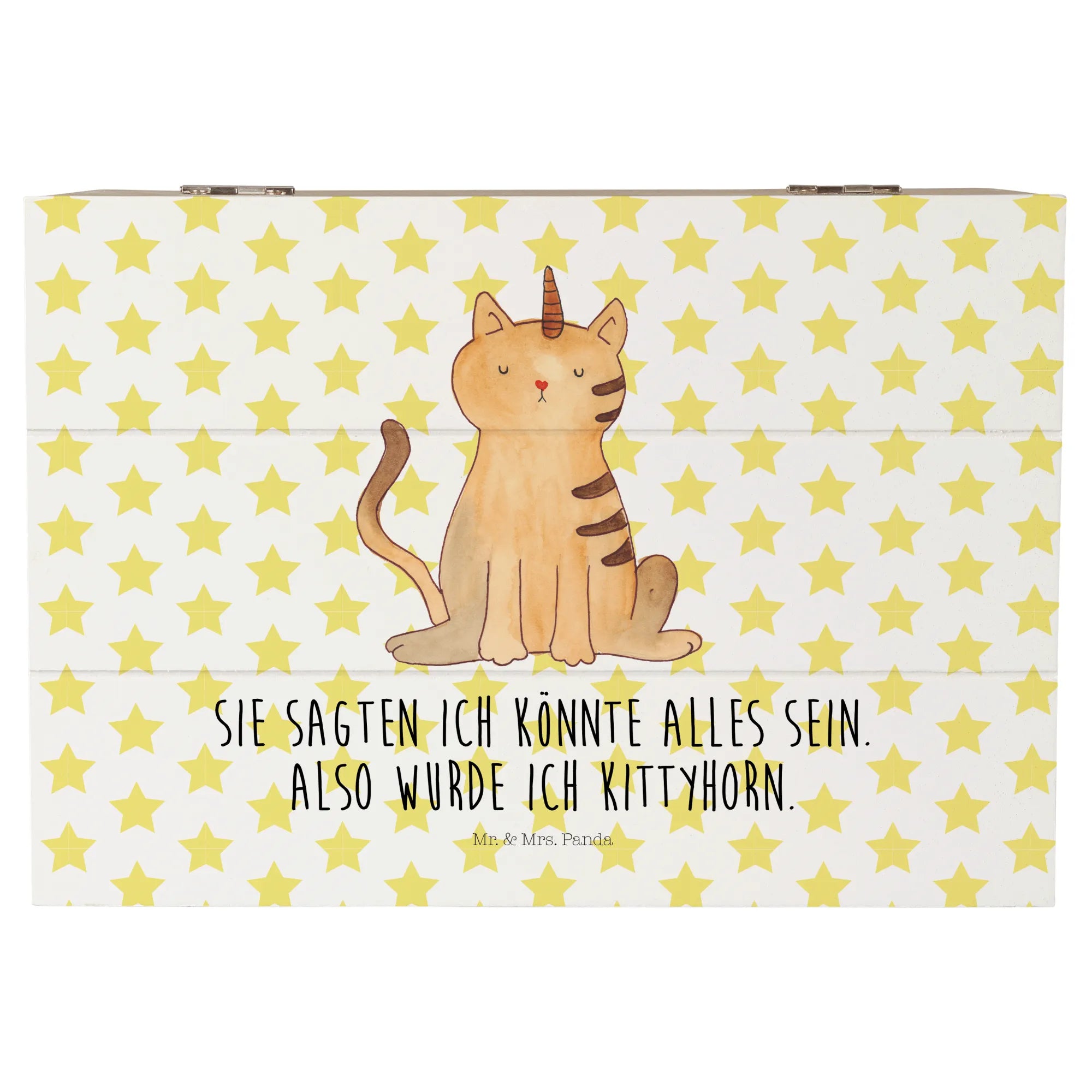 Skrzynia drewniana jednorożec kot - 22 x 15 cm - z napisem - biały