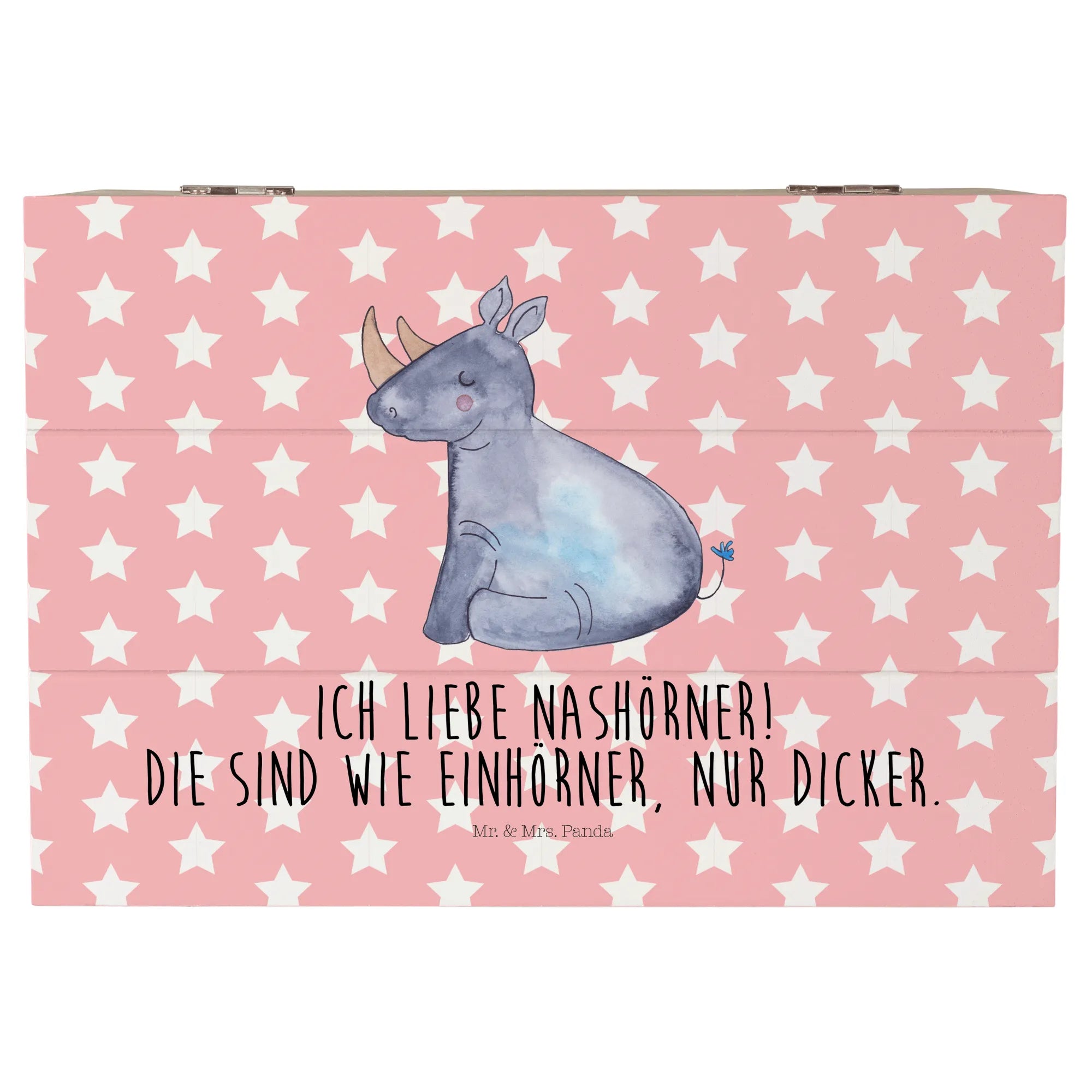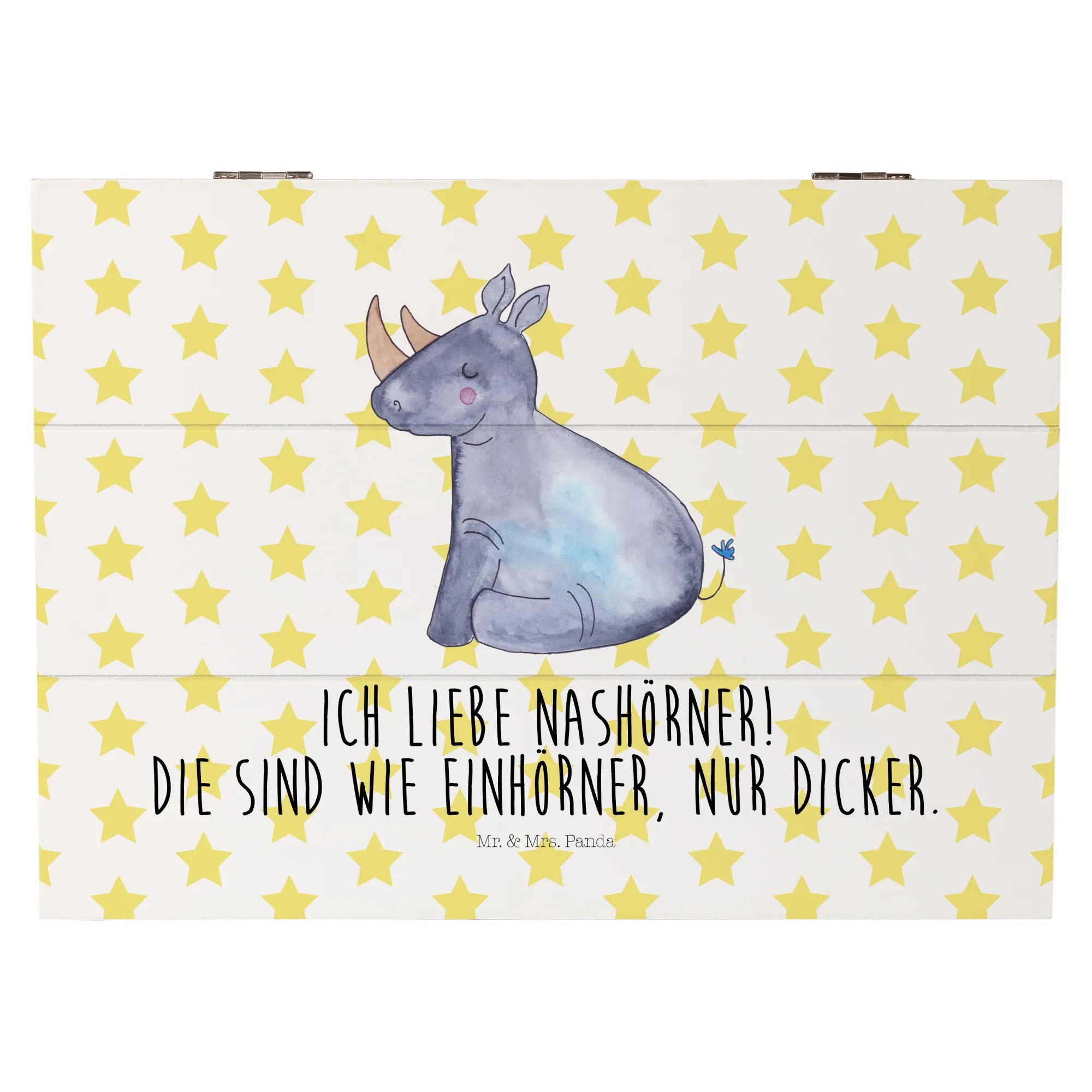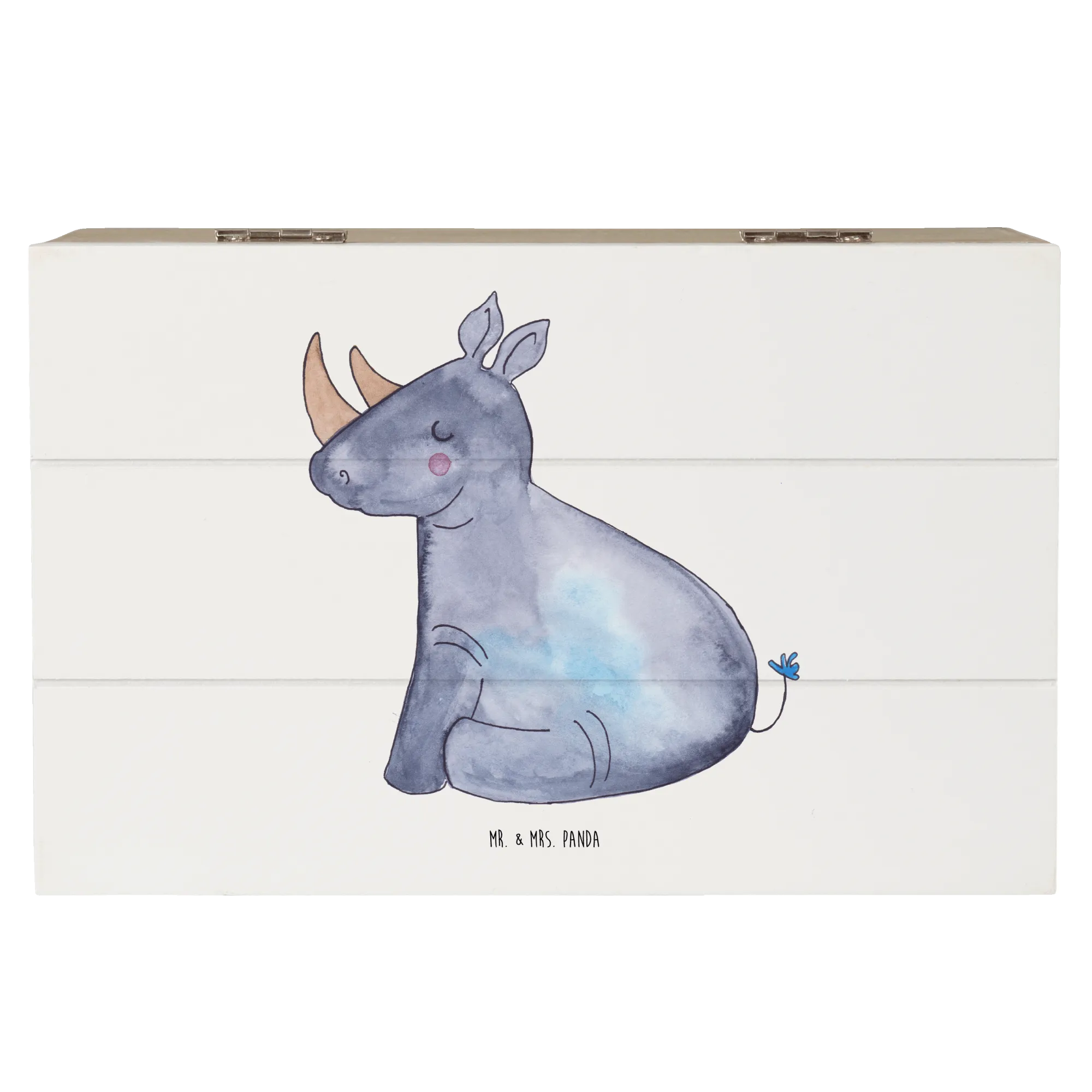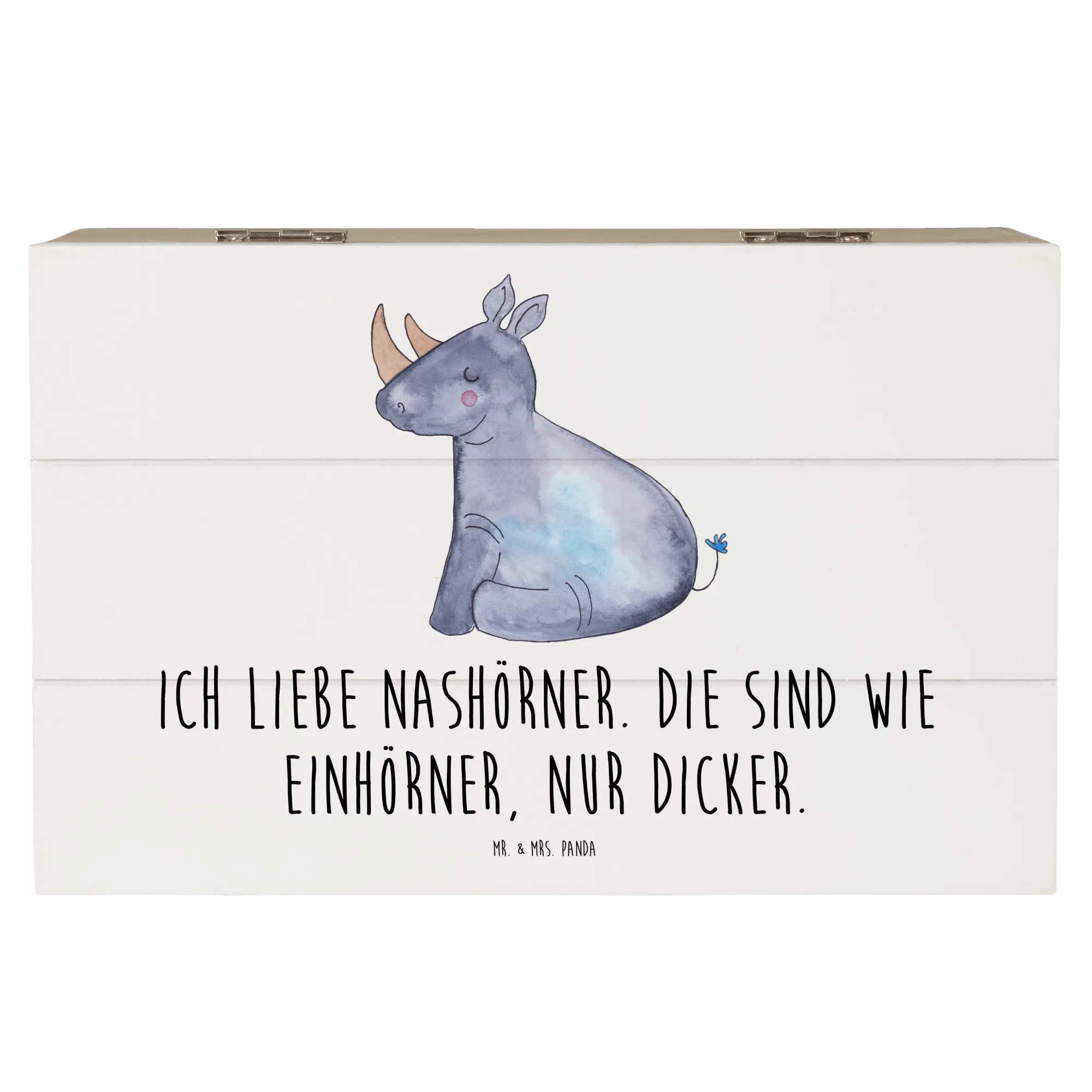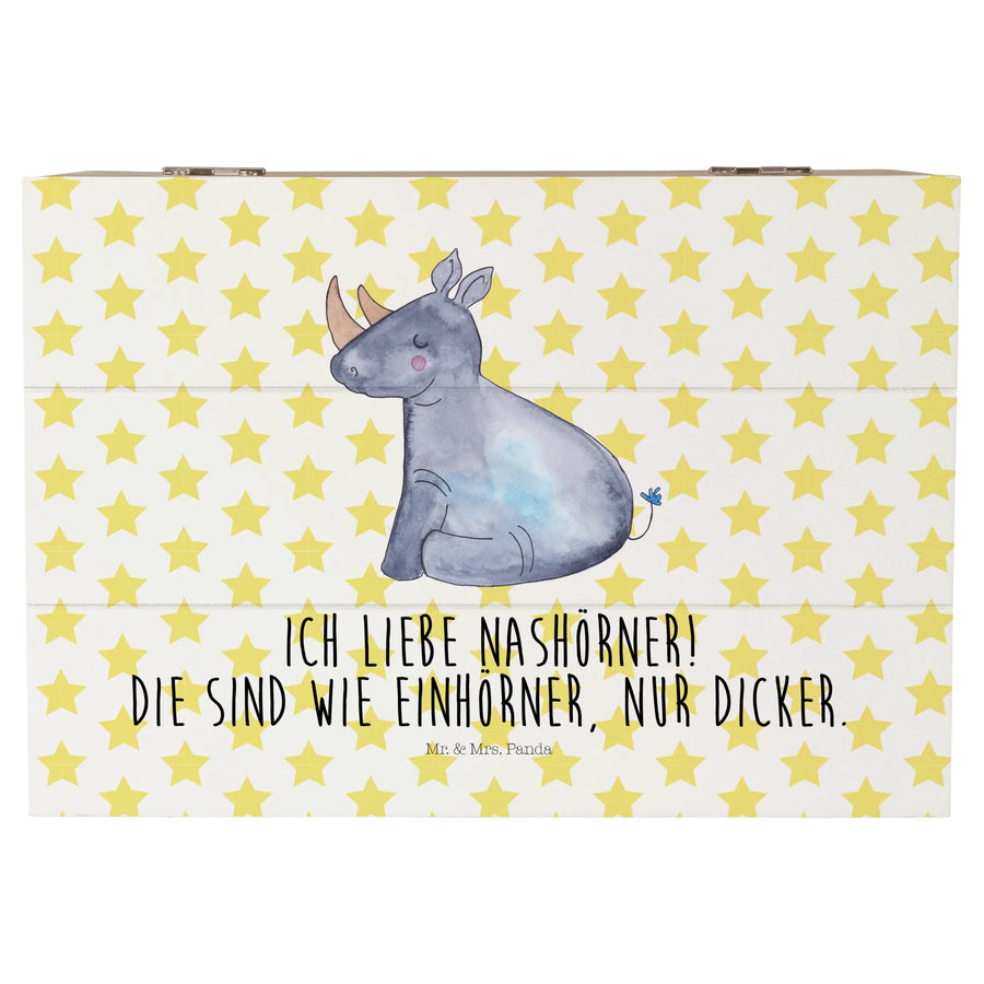 Skrzynia drewniana Jednorożec Nosorożec - 22 x 15 cm - z napisem - Biały