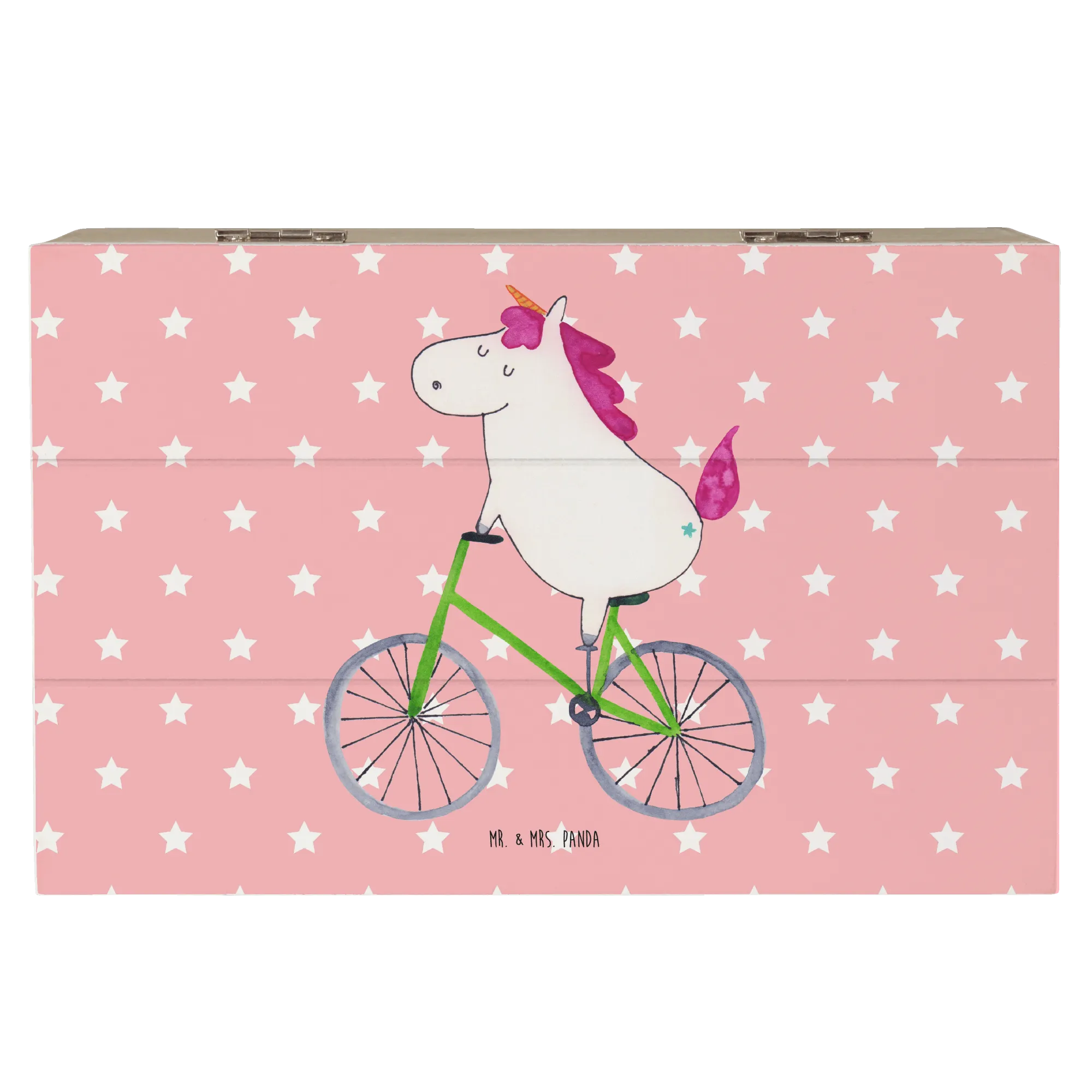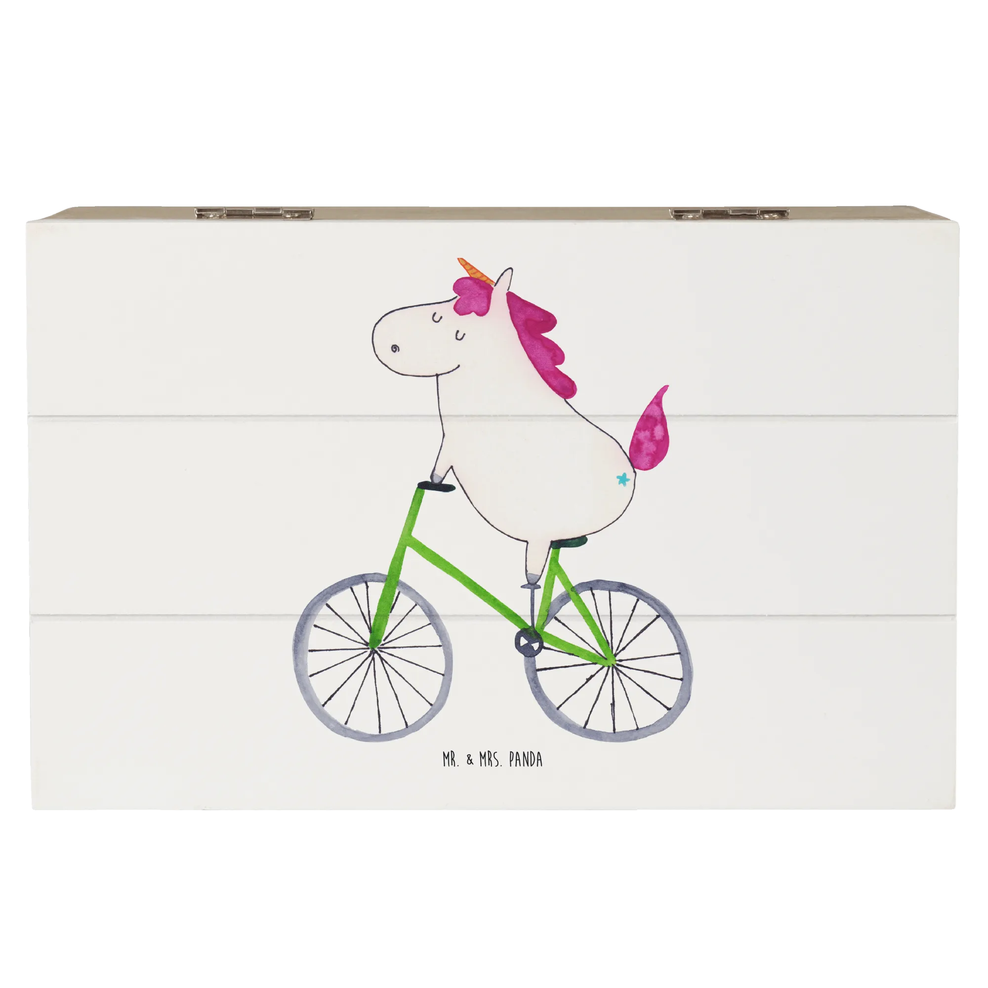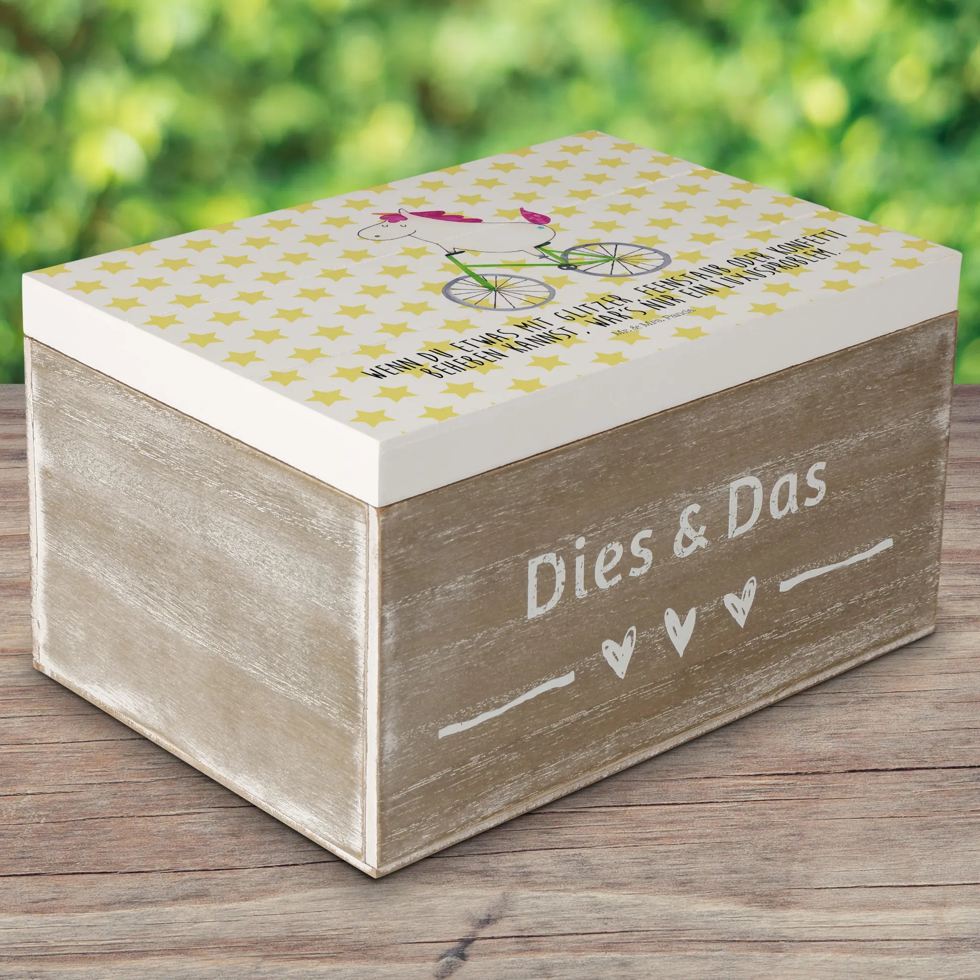 Skrzynia drewniana Jednorożec Rowerzysta - 22 x 15 cm - z napisem - biały