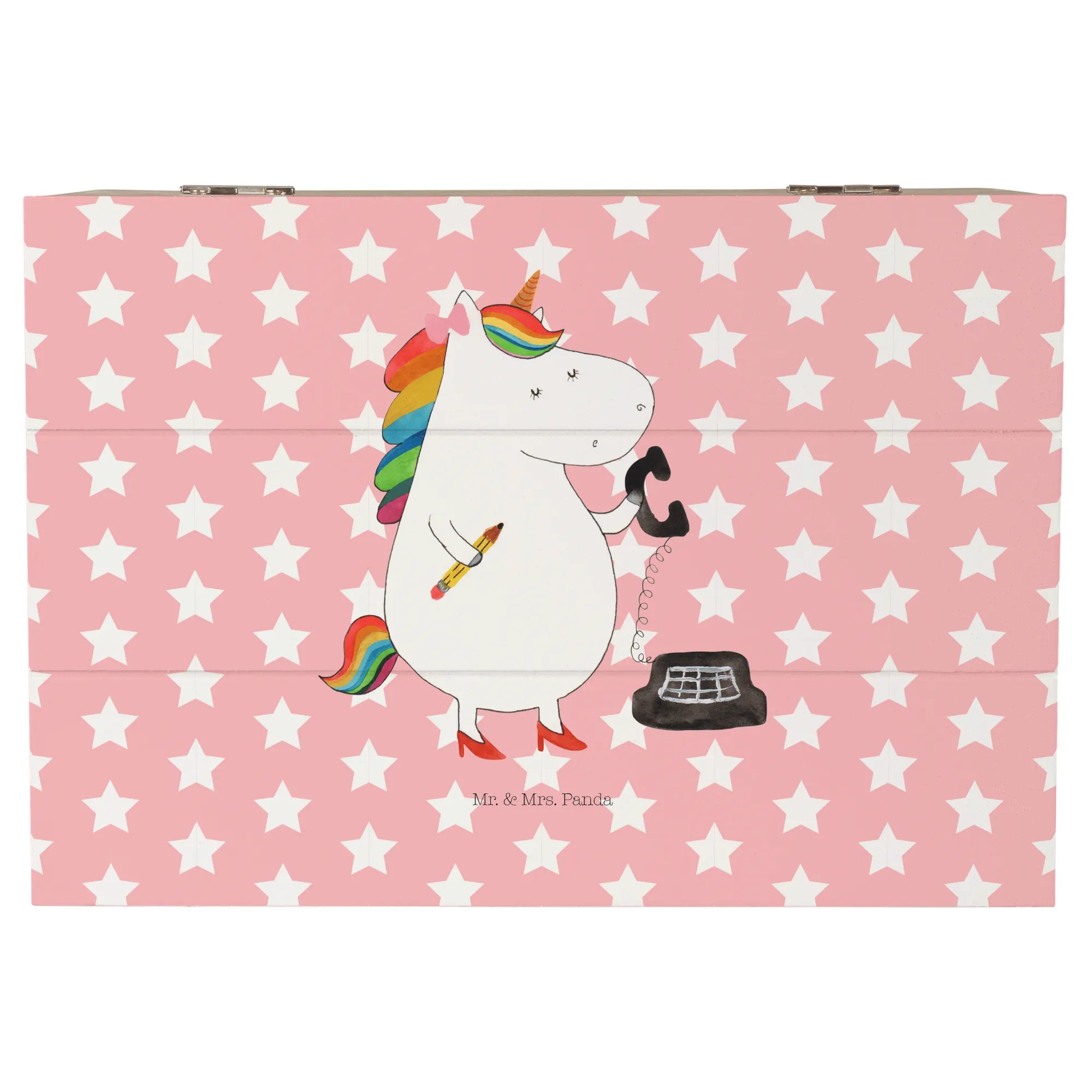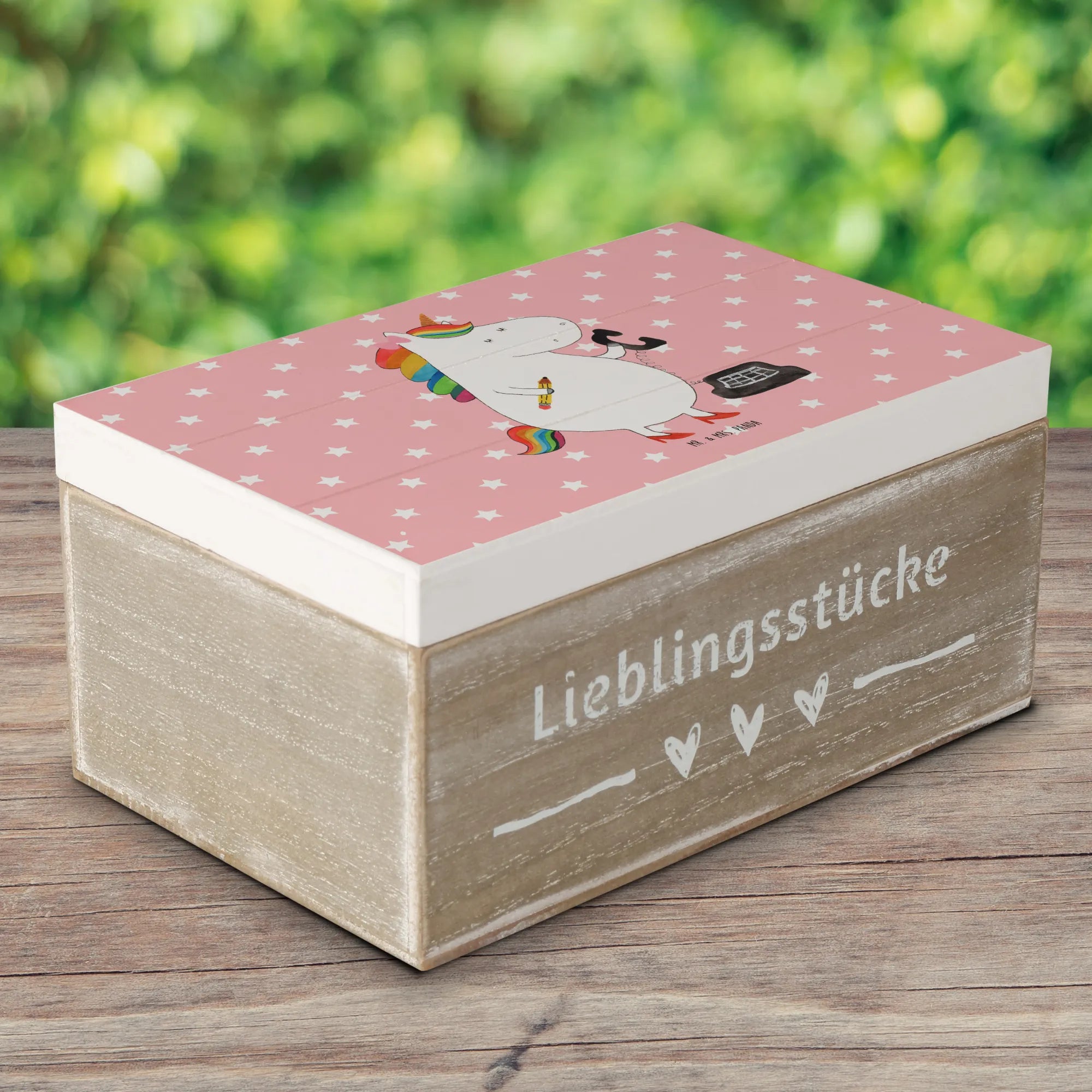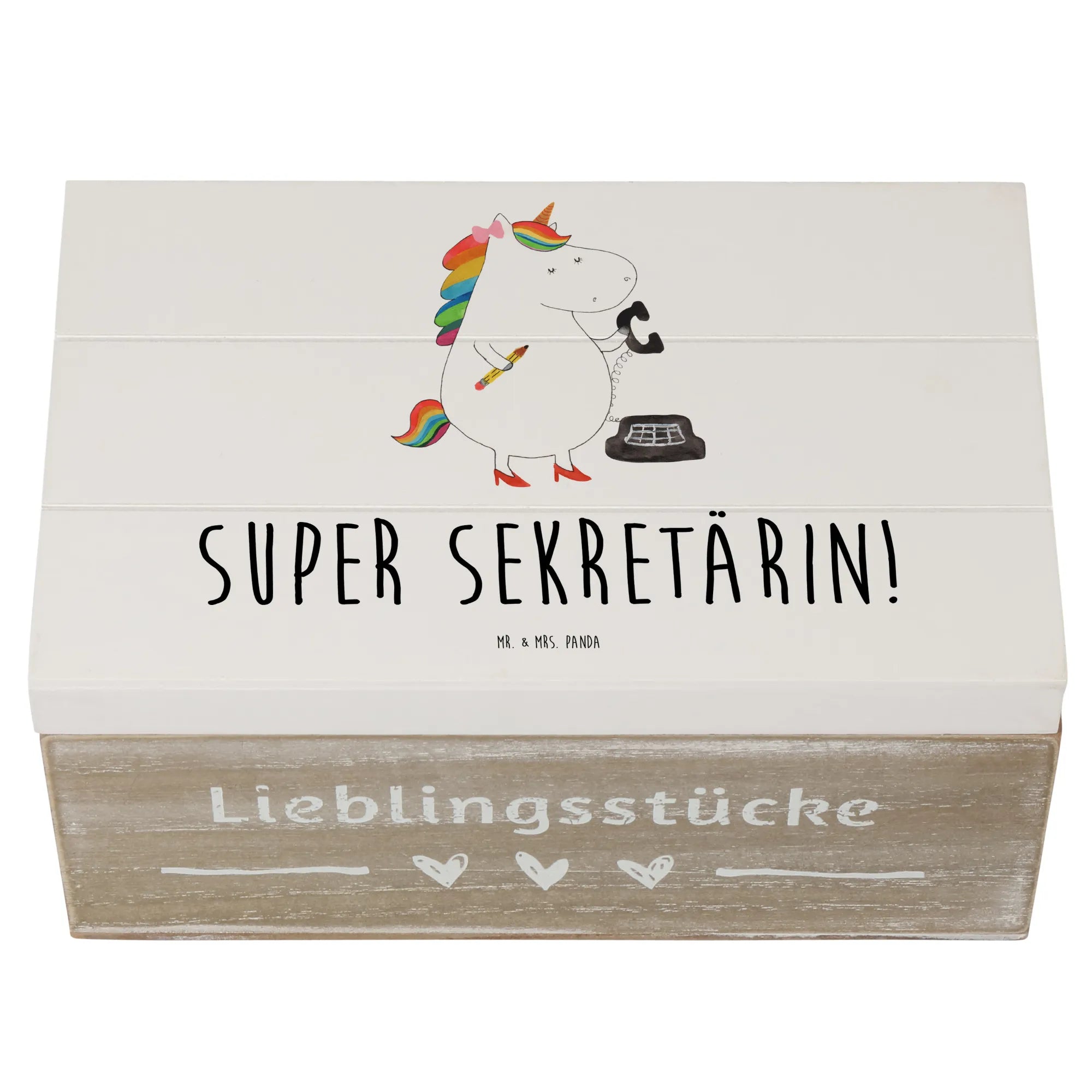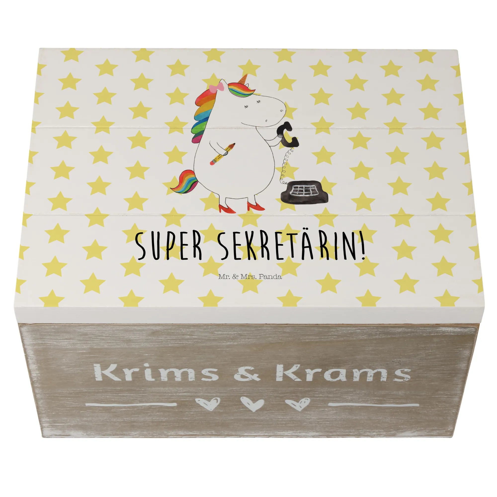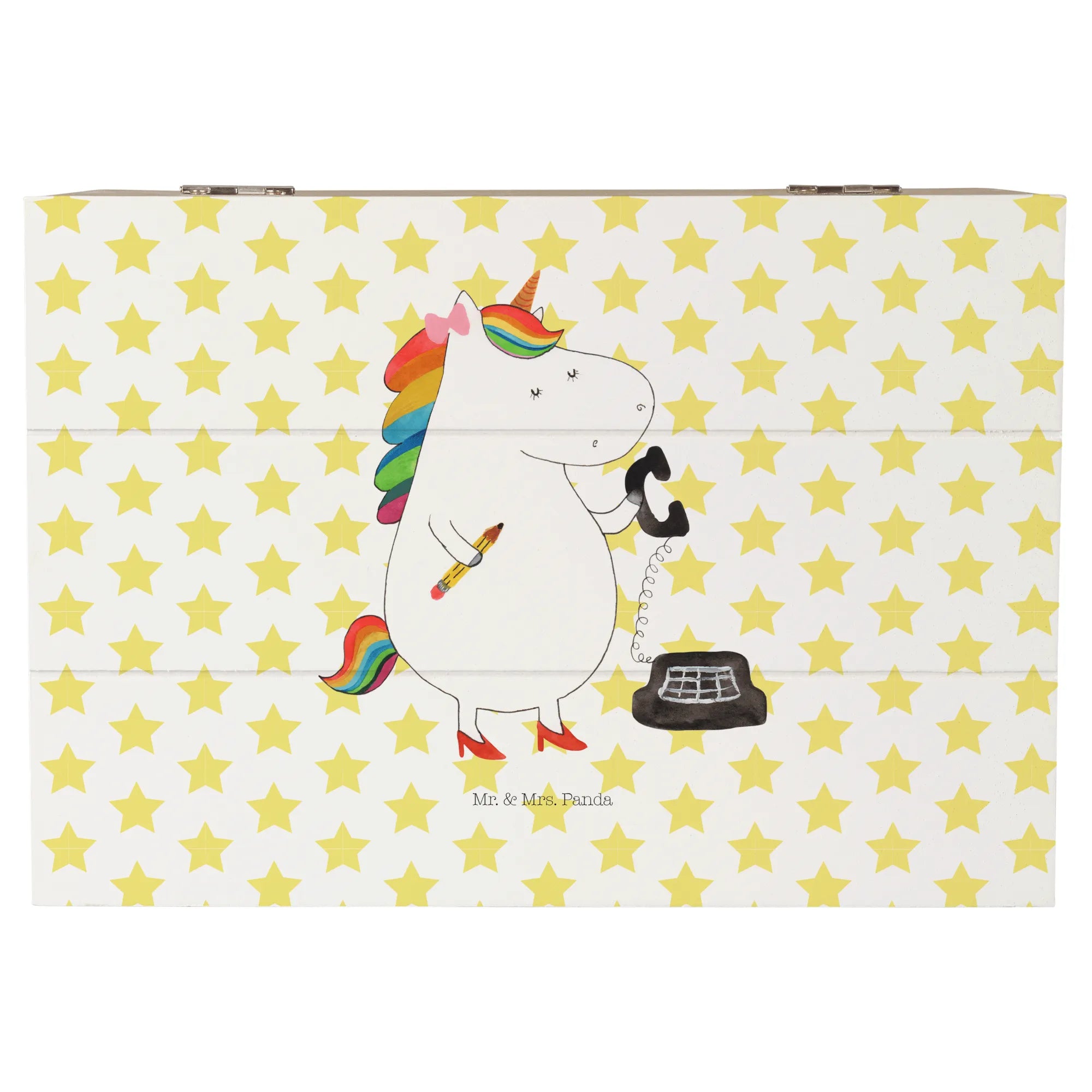 Skrzynia drewniana Jednorożec sekretarka - 22 x 15 cm - z napisem - biały