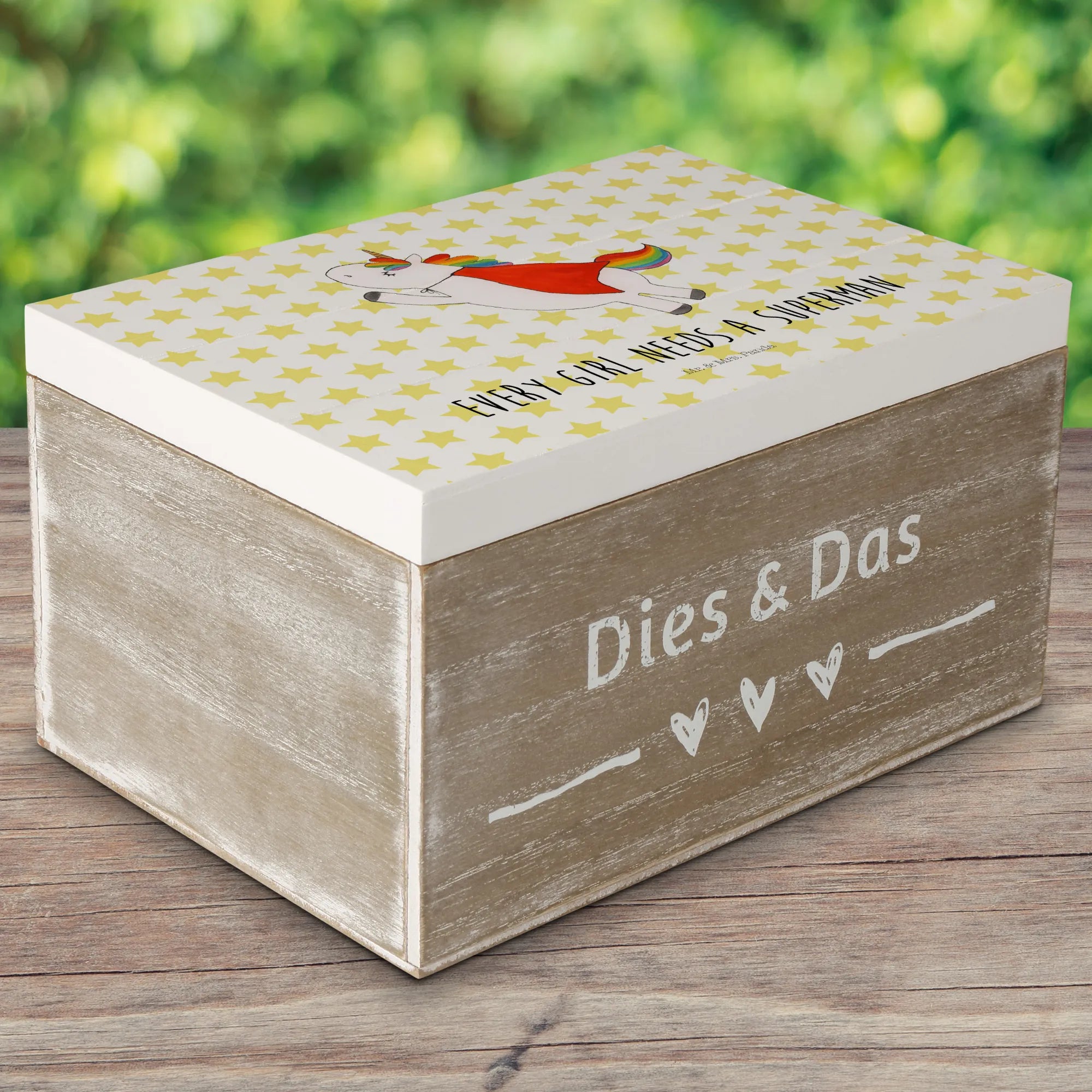 Skrzynia drewniana Jednorożec Super - 22 x 15 cm - z napisem - biały