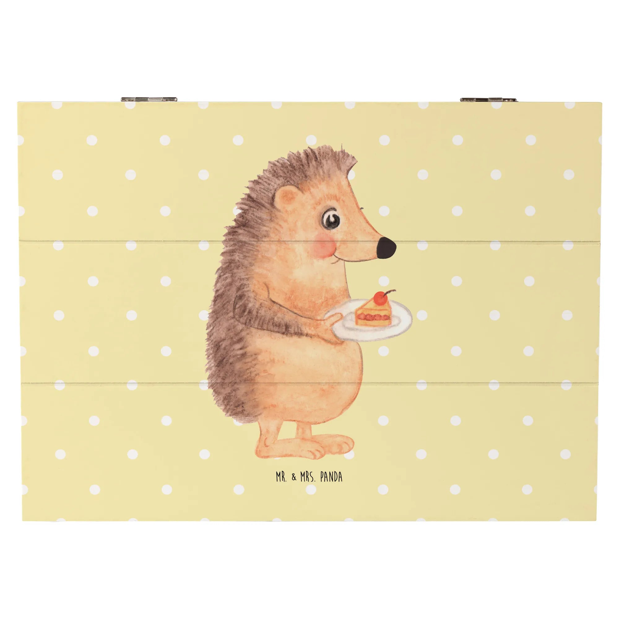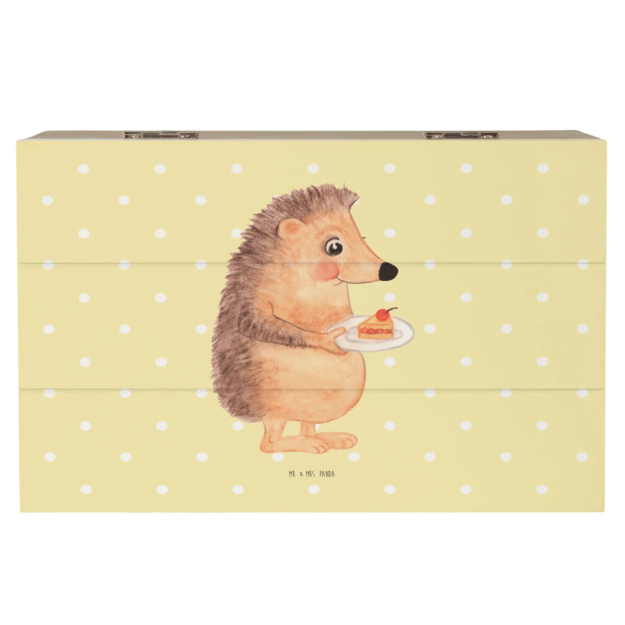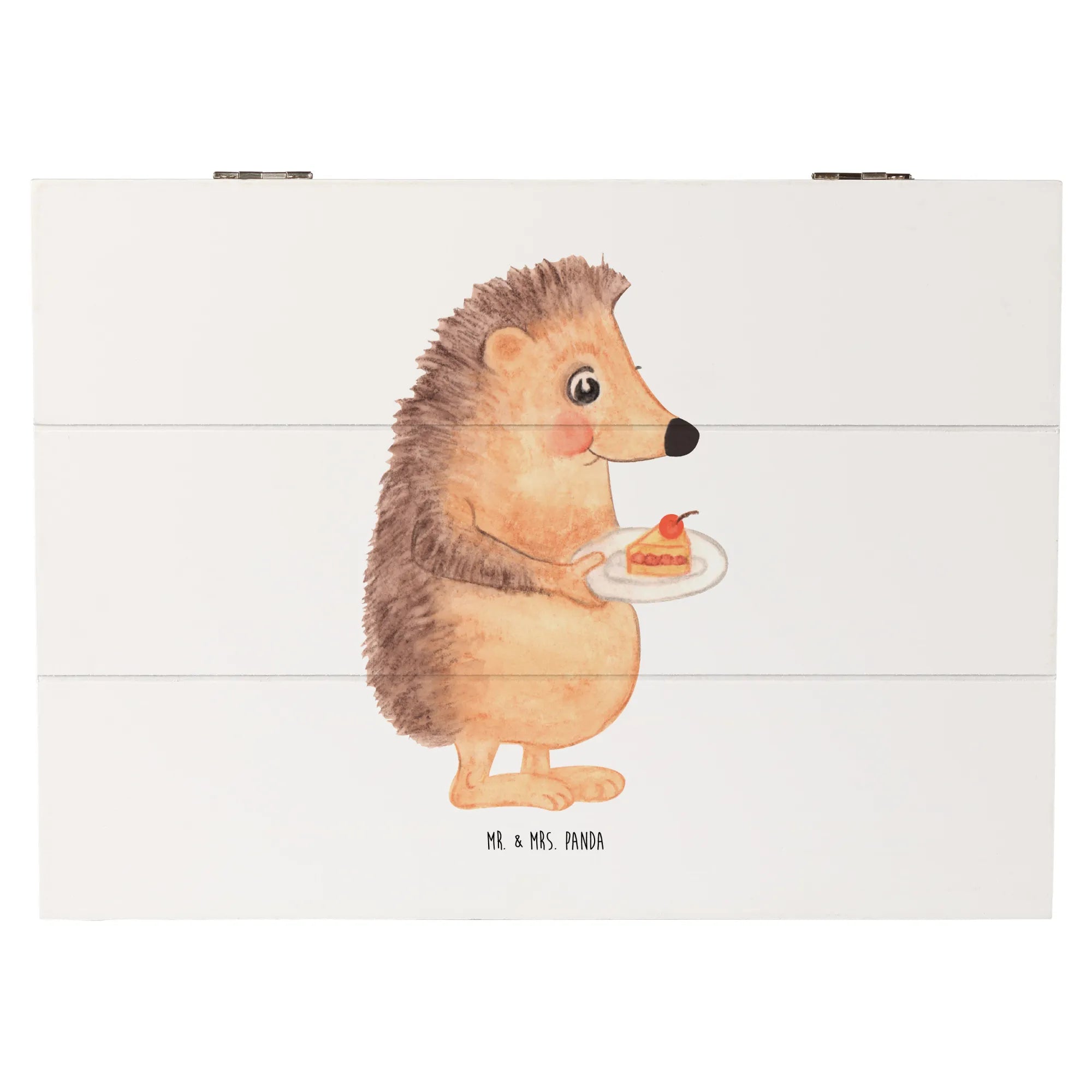 Skrzynia drewniana jeż kawałek ciasta - 22 x 15 cm - z napisem - biały