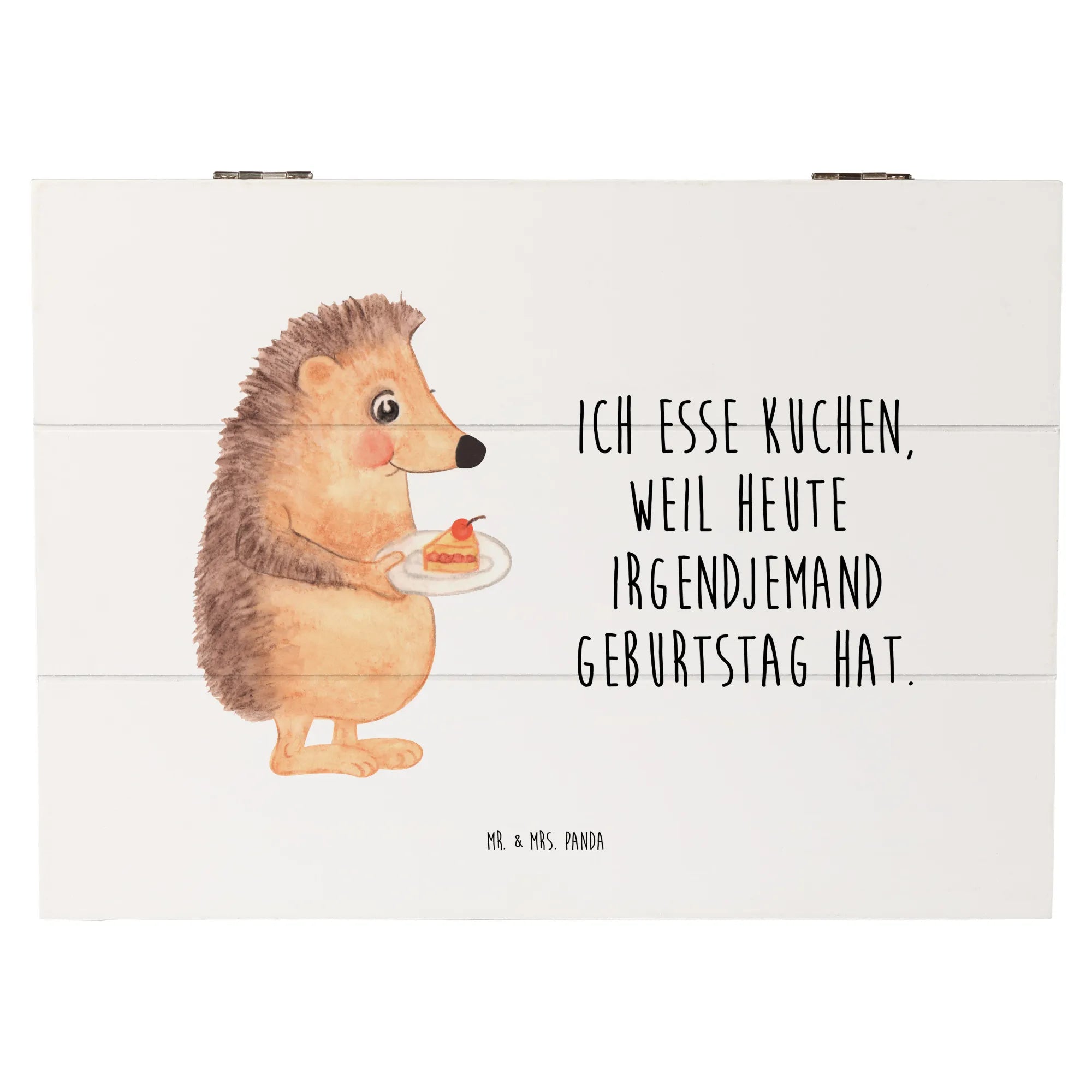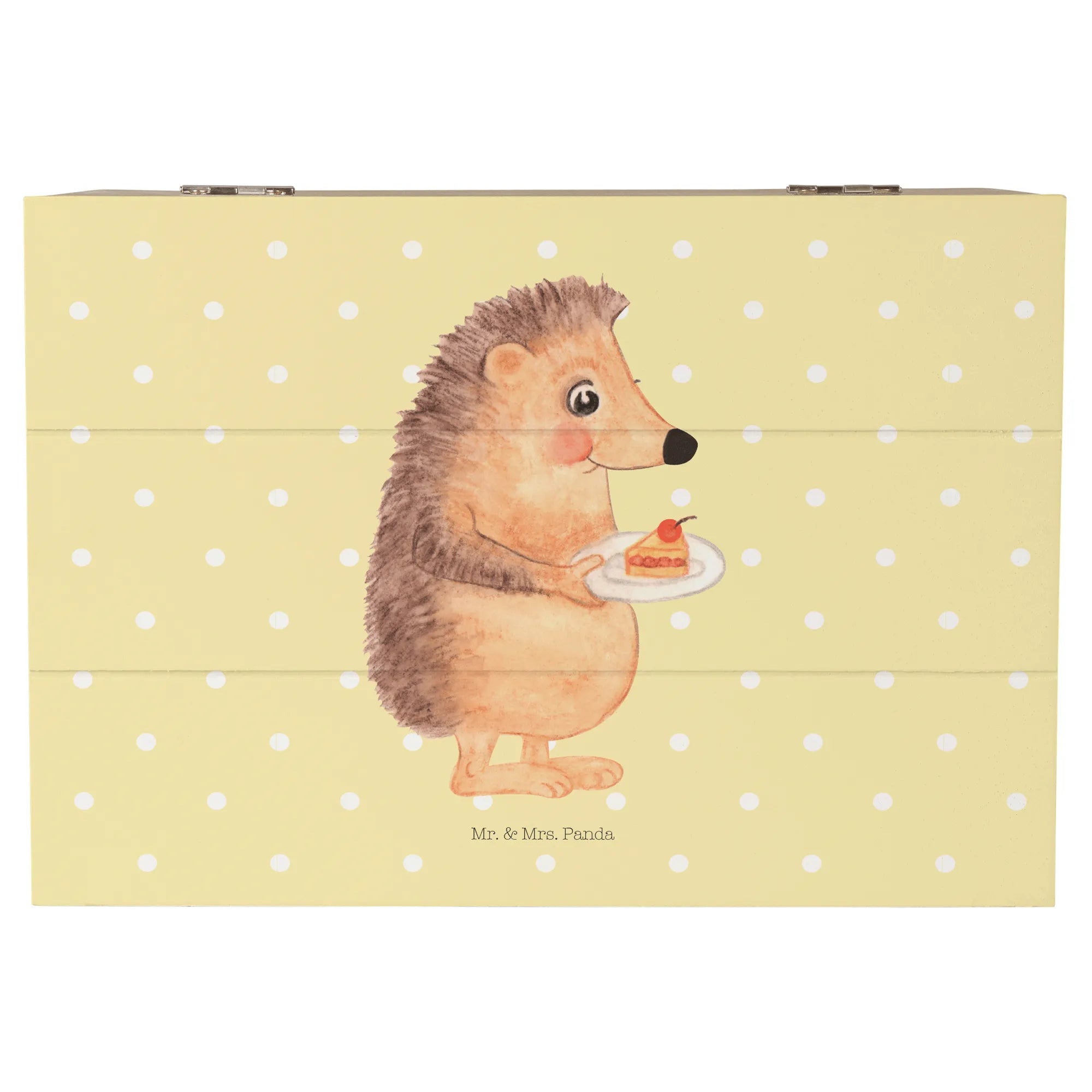 Skrzynia drewniana jeż kawałek ciasta - 22 x 15 cm - z napisem - Pastelowy żółty