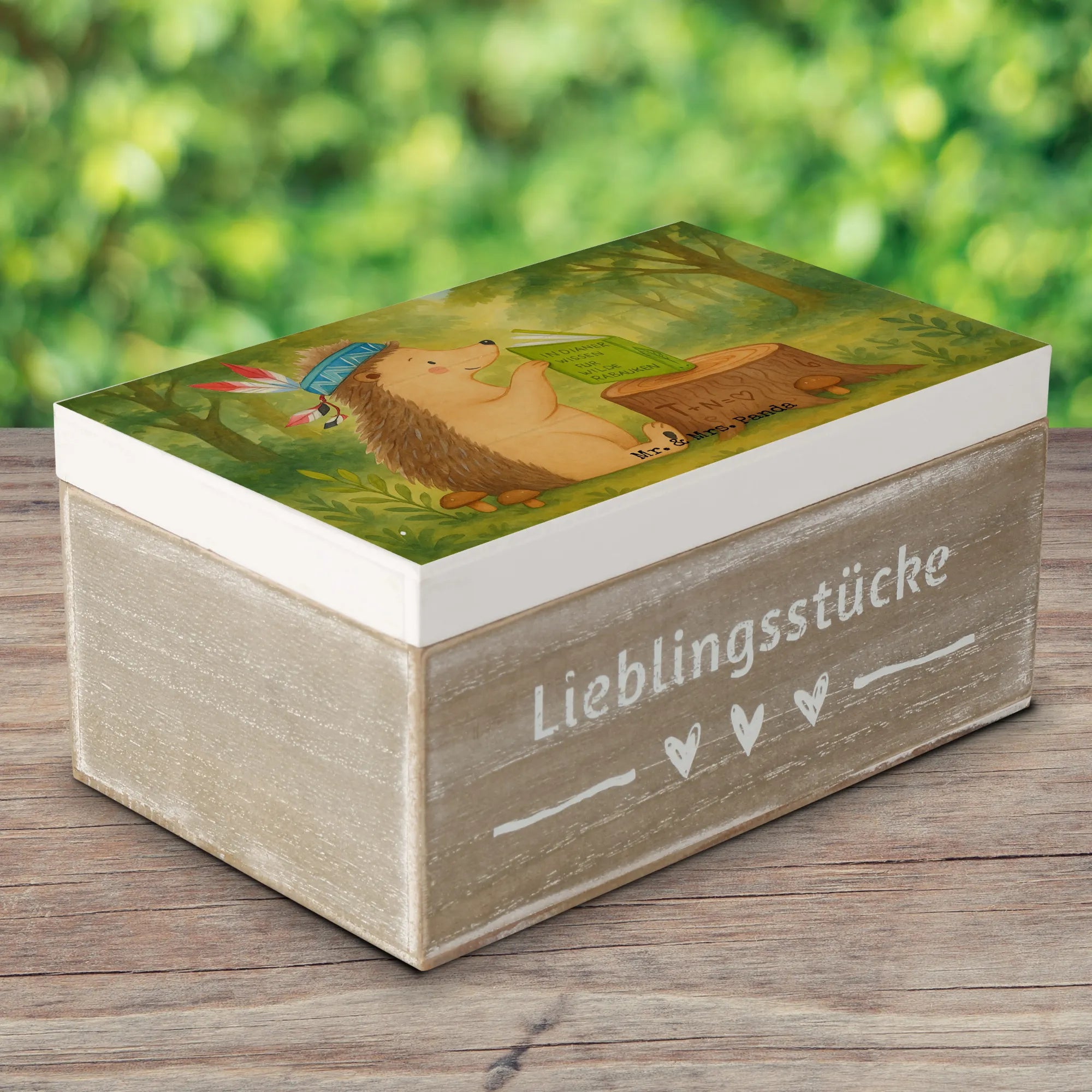 Diese liebevoll gestaltete Holzkiste aus der Waldtiere-Kollektion von Mr. & Mrs. Panda ist nicht nur eine praktische Aufbewahrungsbox, sondern ein kleines Stück Natur für dein Zuhause. Das Motiv zeigt einen Igel mit Federschmuck, der auf einem Baumstumpf sitzt und in einem Buch über Abenteuer liest. Perfekt für Kinderzimmer, als Erinnerungskiste oder als nachhaltige Geschenkbox.