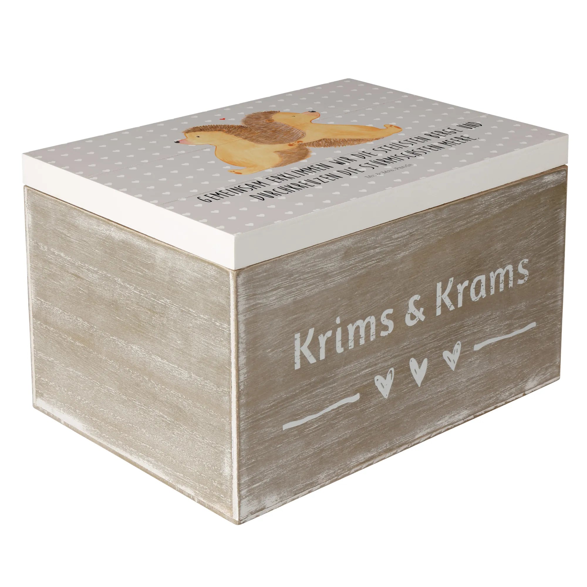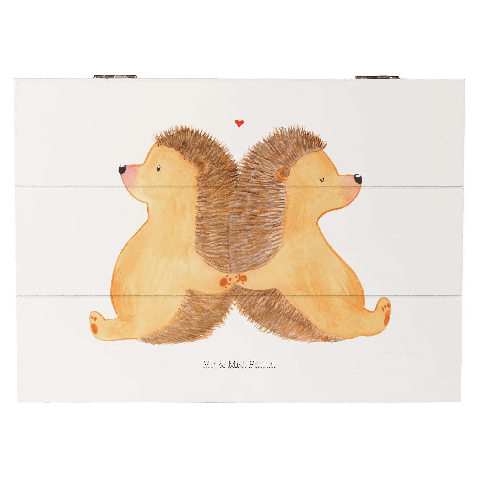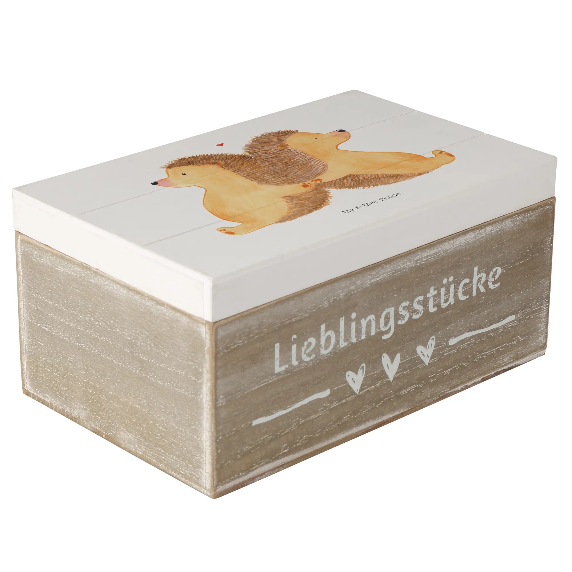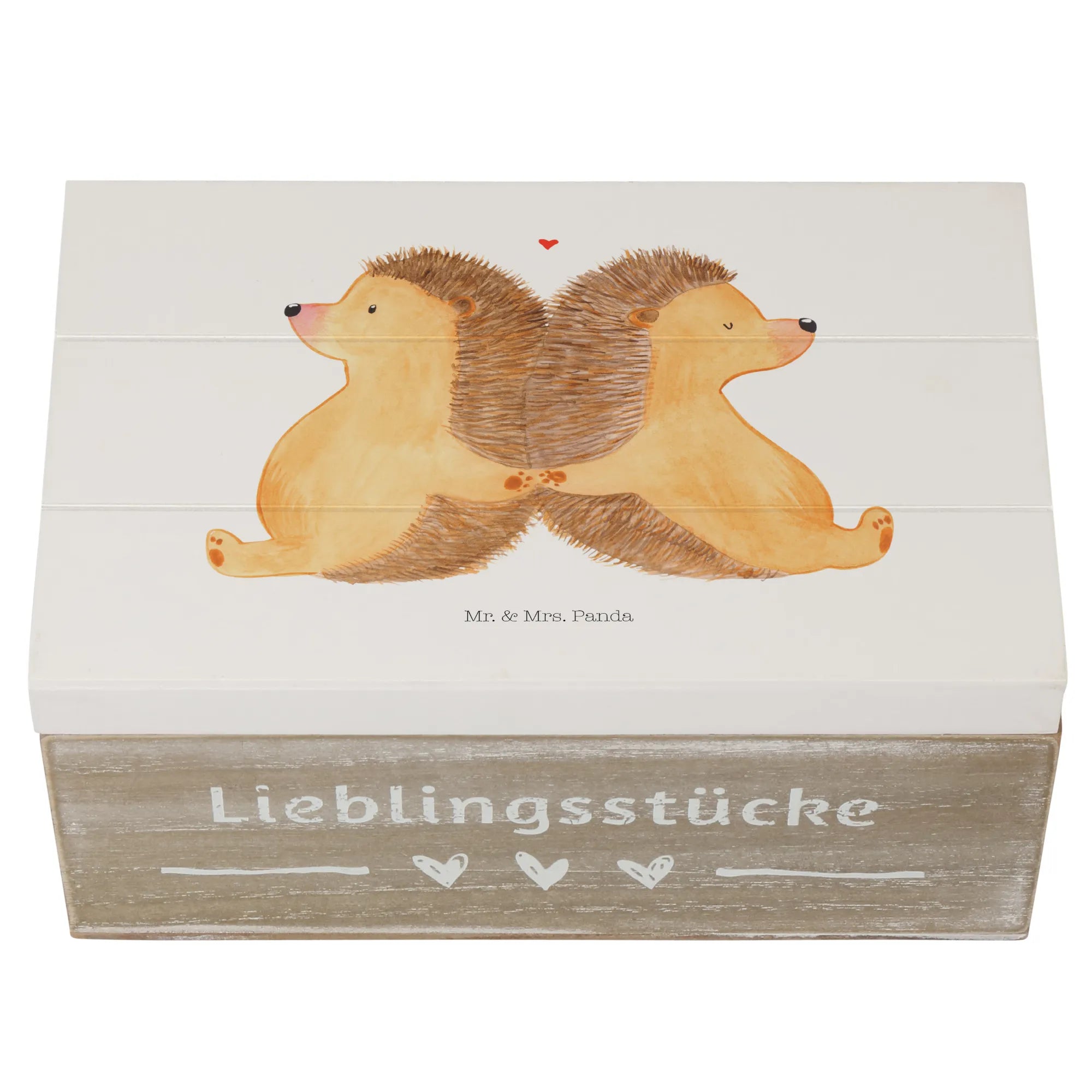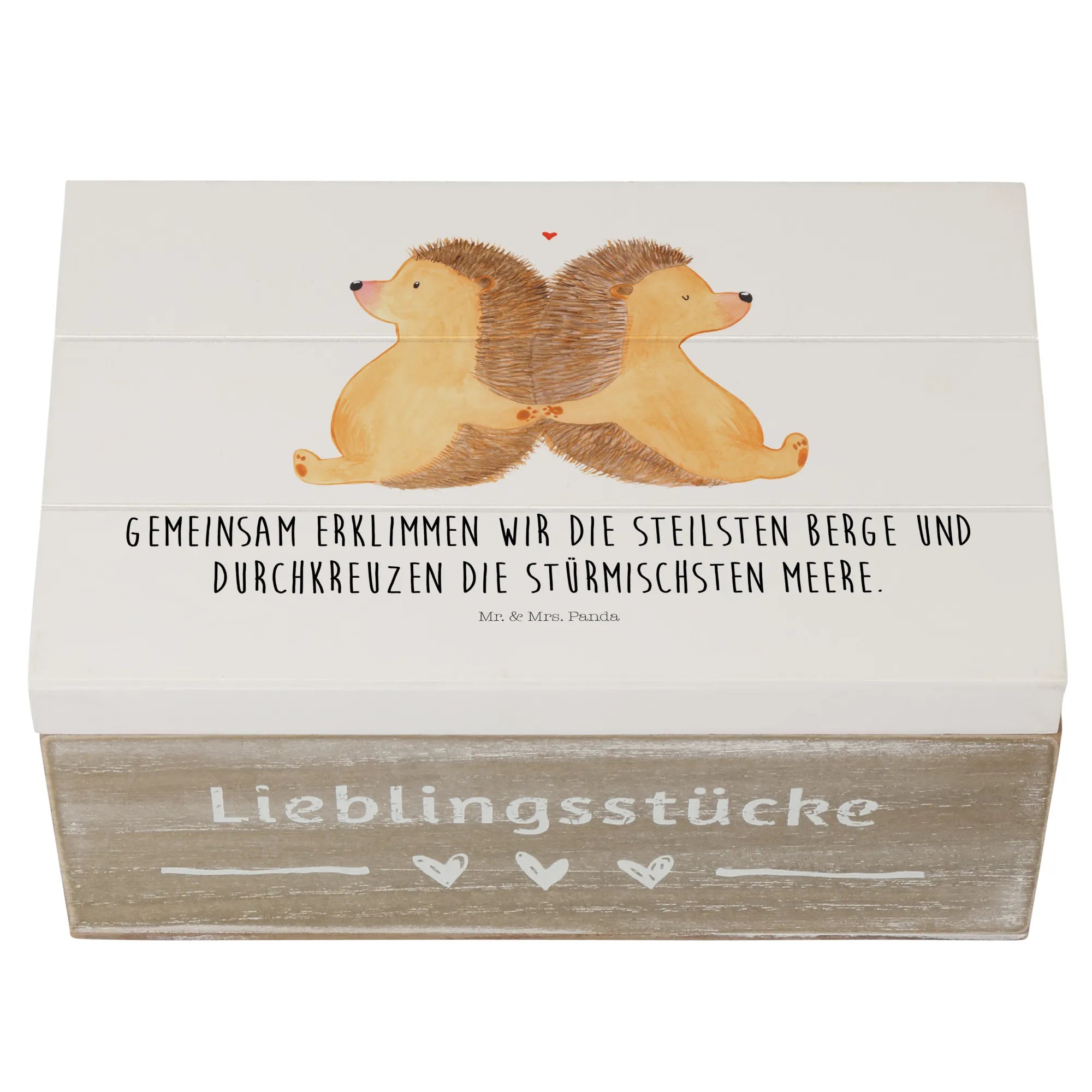 Skrzynia drewniana Jeże trzymające się za łapki - 22 x 15 cm - z napisem - biały