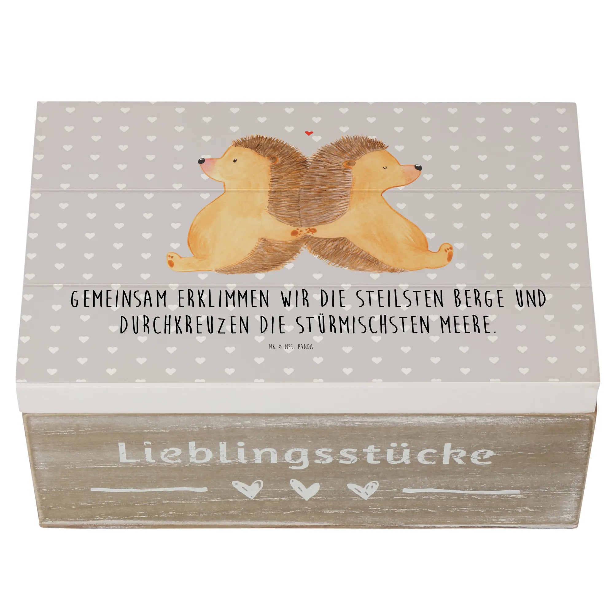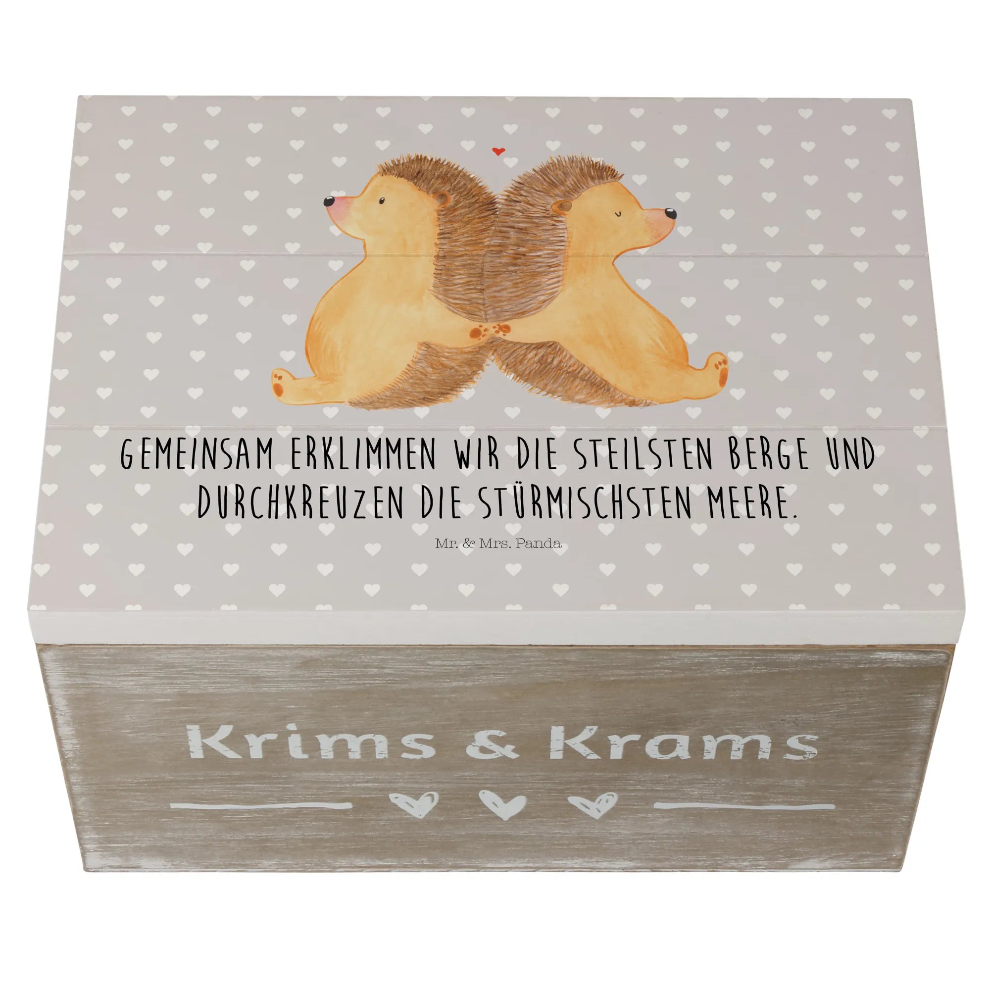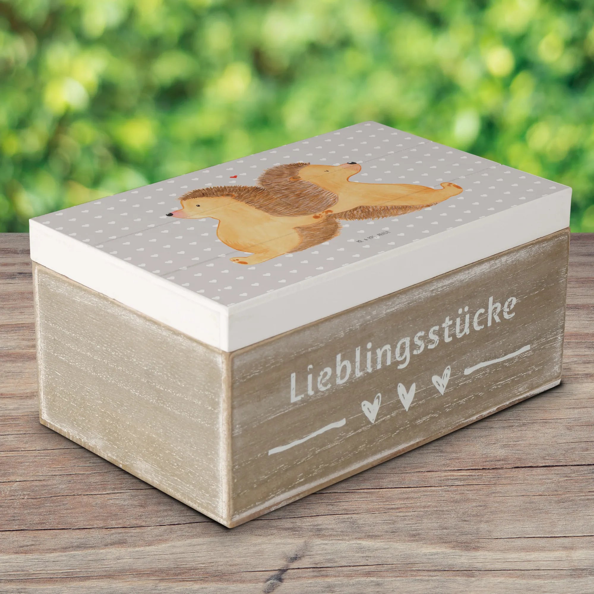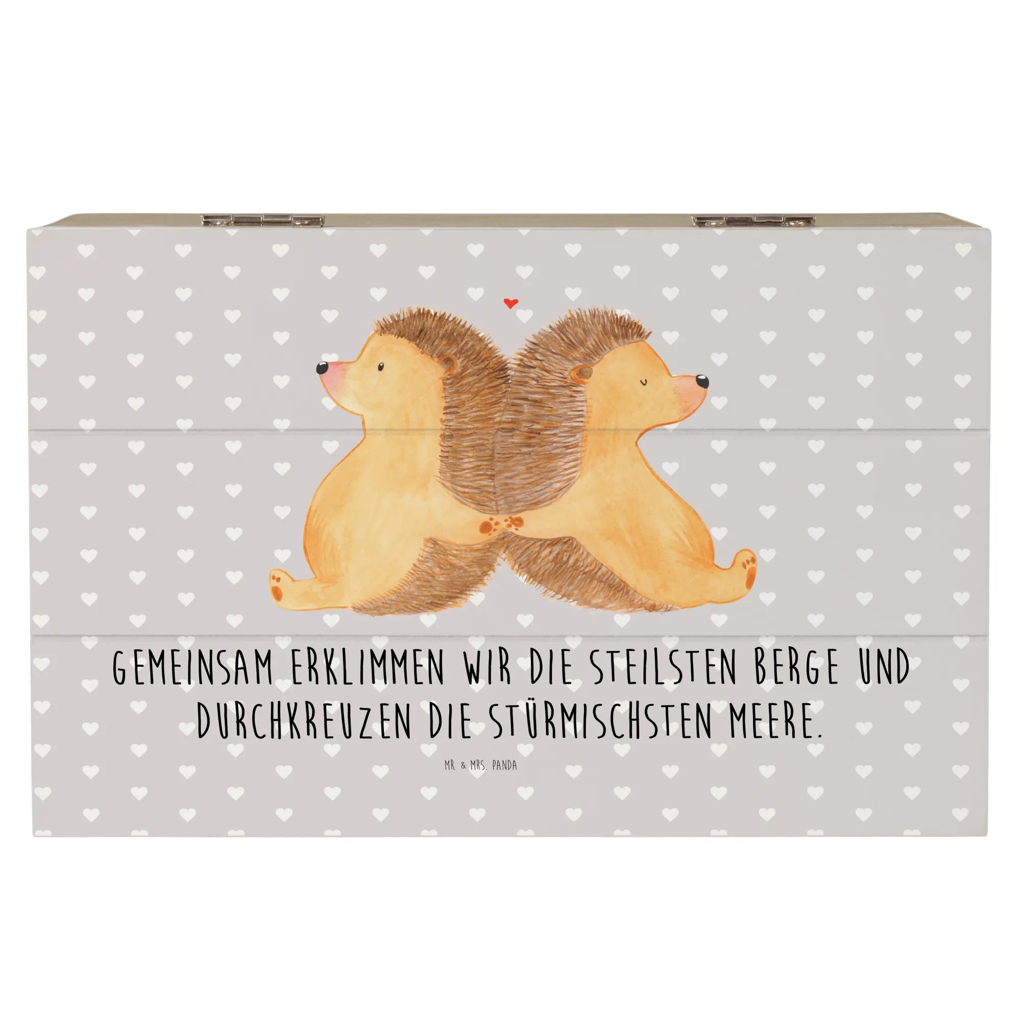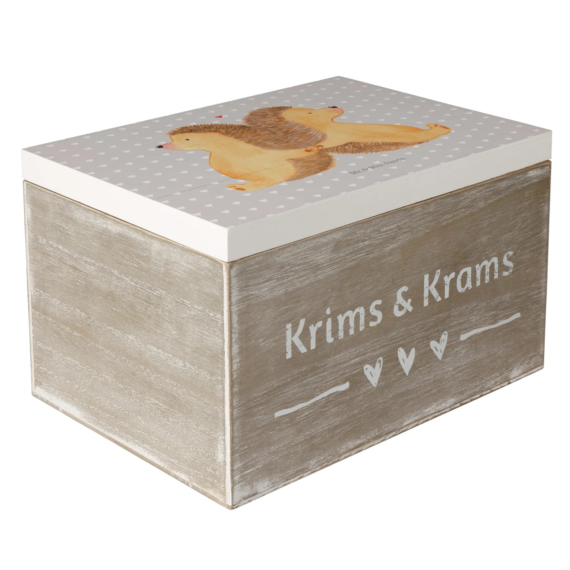 Skrzynia drewniana Jeże trzymające się za łapki - 22 x 15 cm - z napisem - biały