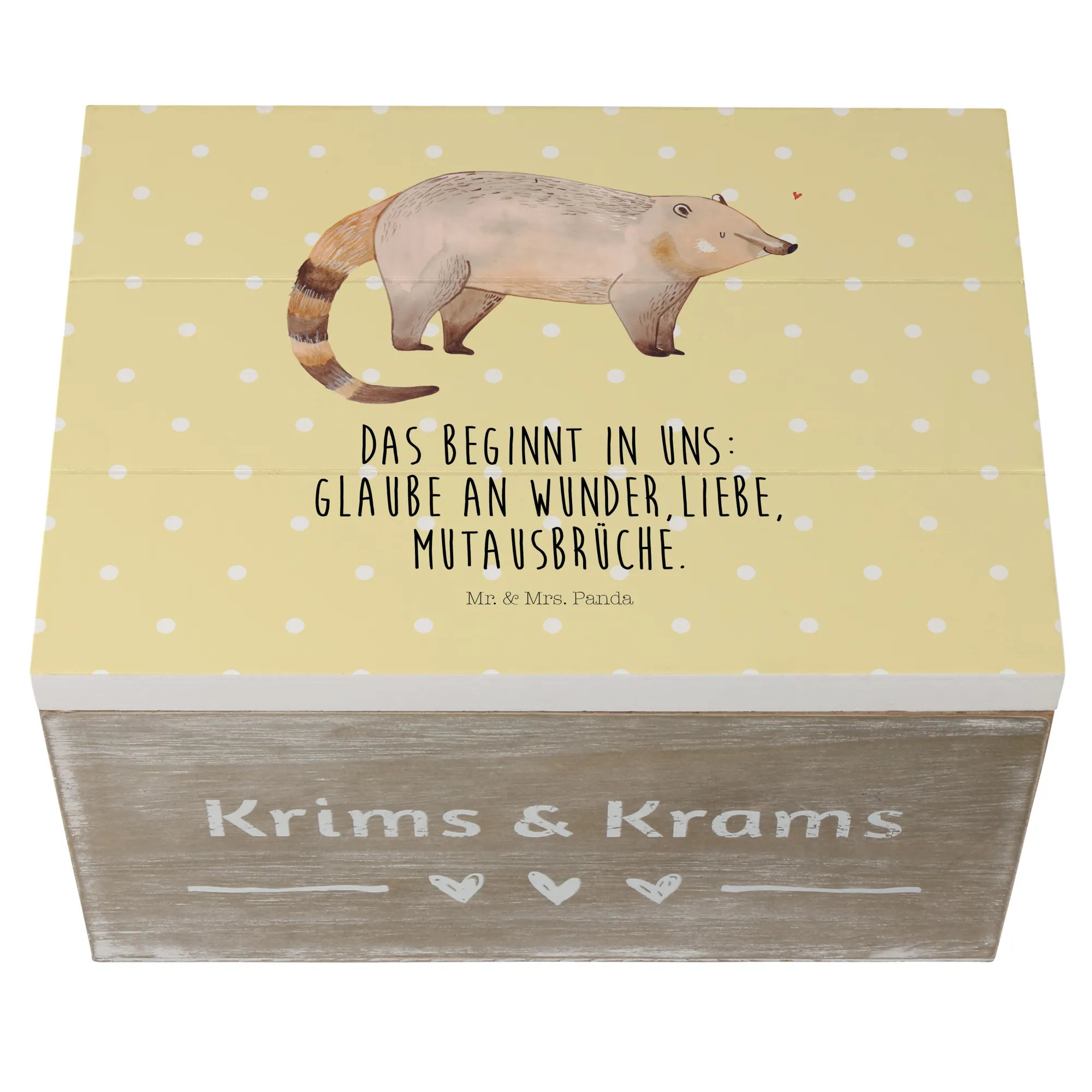 Skrzynia drewniana Koati - 22 x 15 cm - z napisem - biały