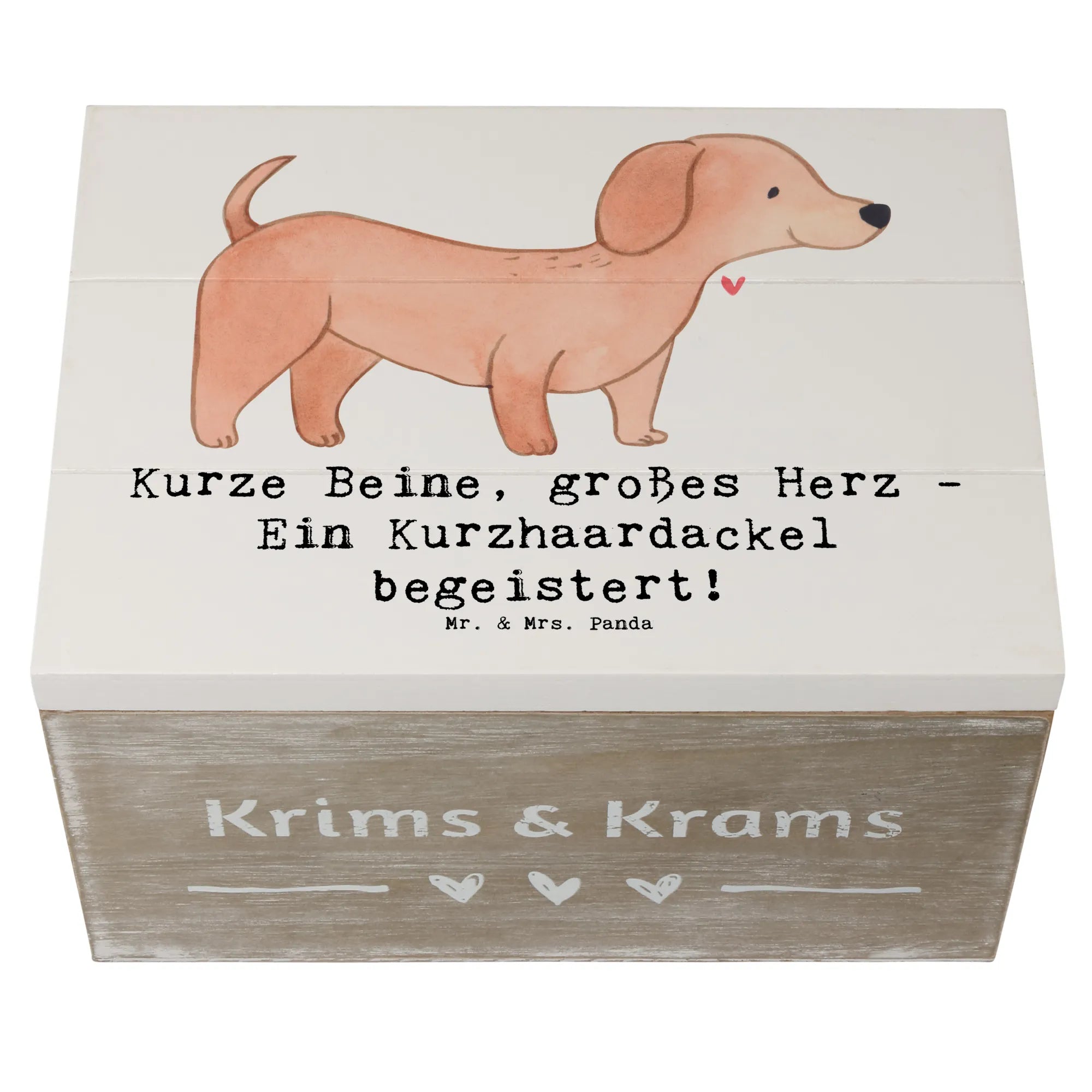 Skrzynia drewniana Kurze Beine, großes Herz - Ein Kurzhaardackel begeistert! - 22 x 15 cm - Pastelowy szary