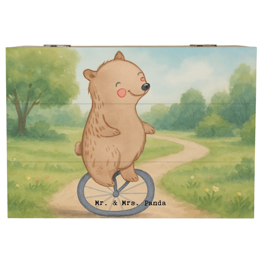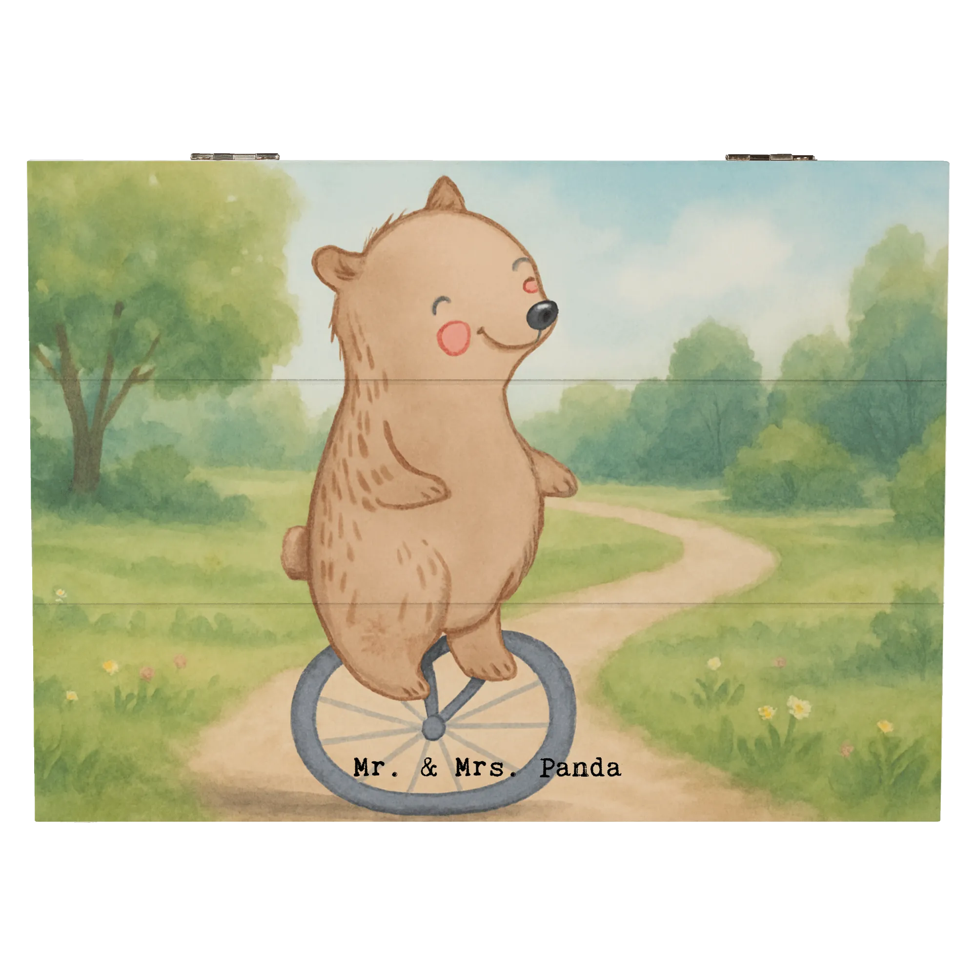 Skrzynia drewniana Niedźwiedź Jazda na jednokołowcu Design - 22 x 15 cm