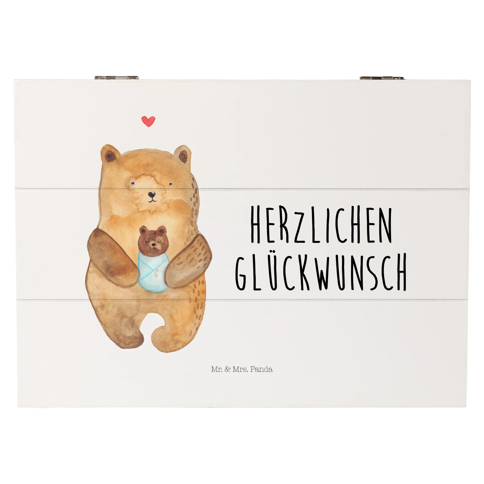 Skrzynia drewniana Niedźwiedź Niemowlę - 22 x 15 cm - z napisem - Pastelowy szary