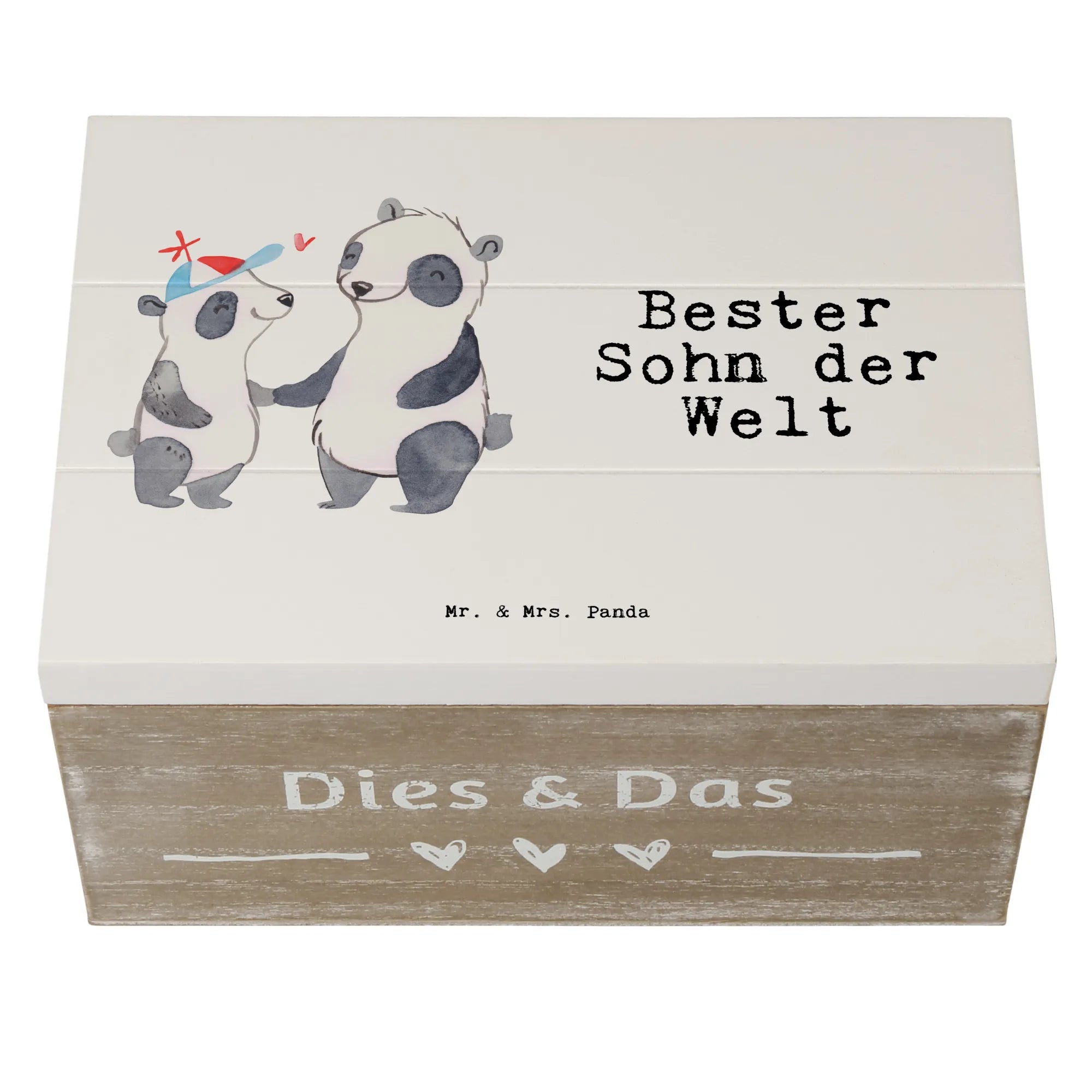 Skrzynia drewniana Panda Najlepszy syn na świecie - 22 x 15 cm - Biały