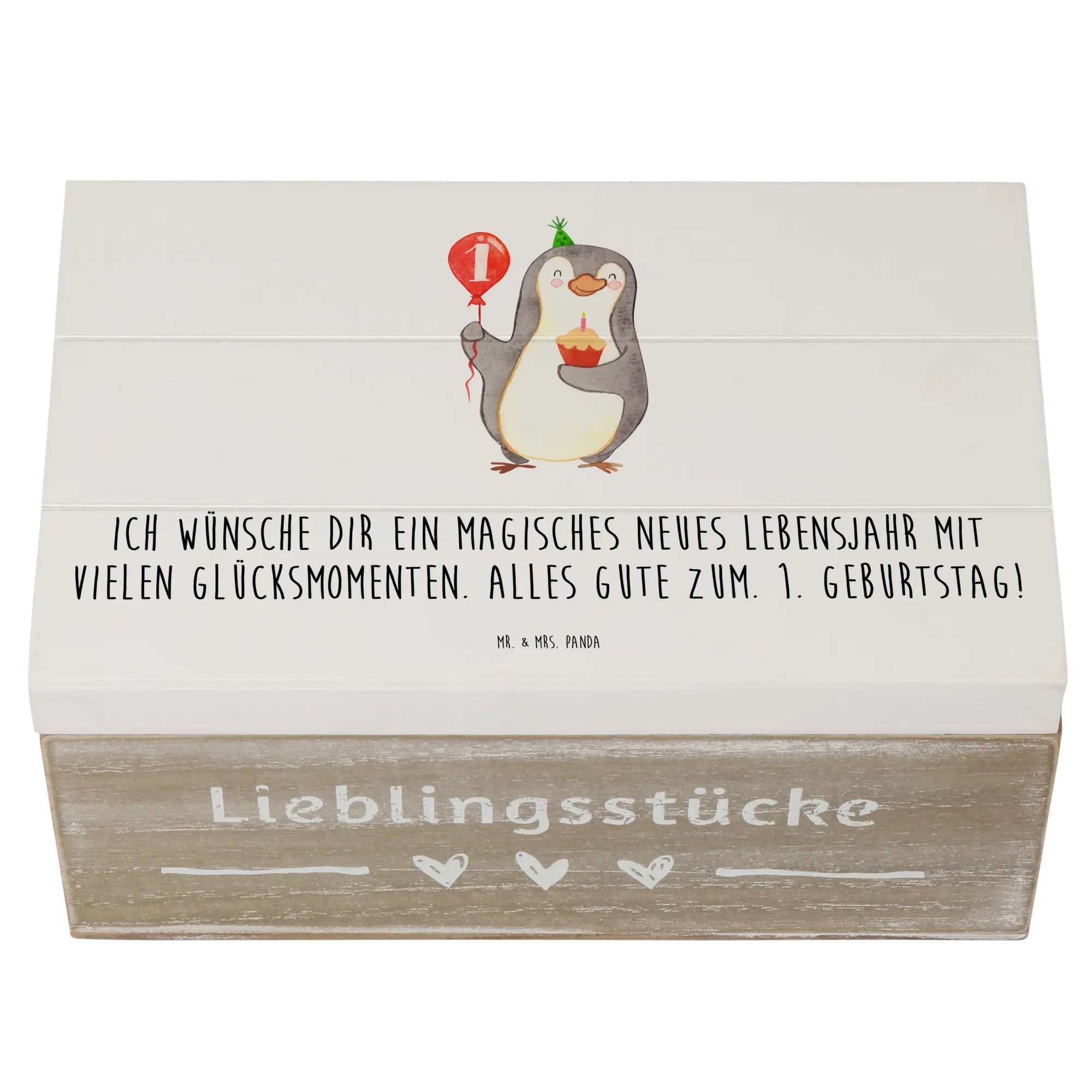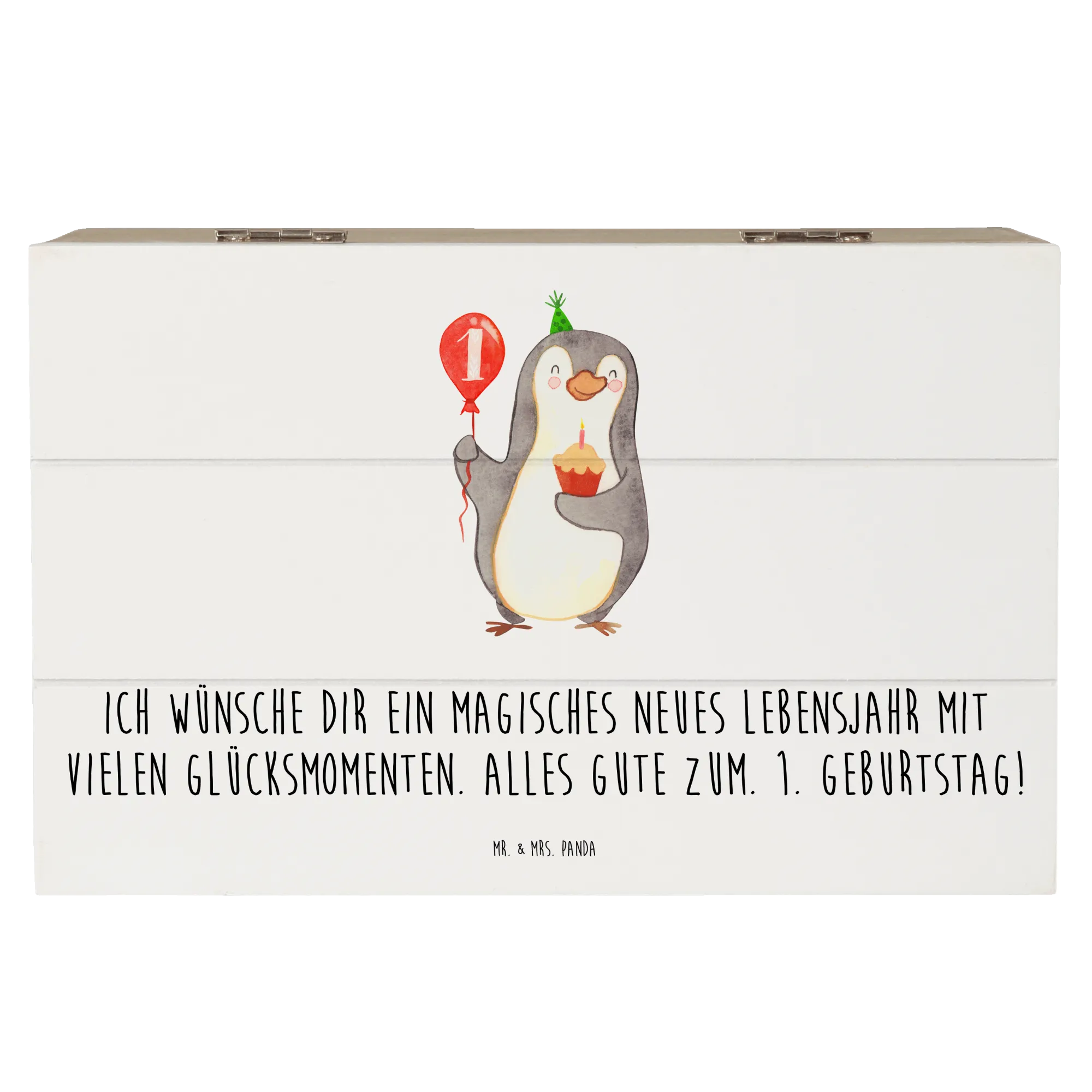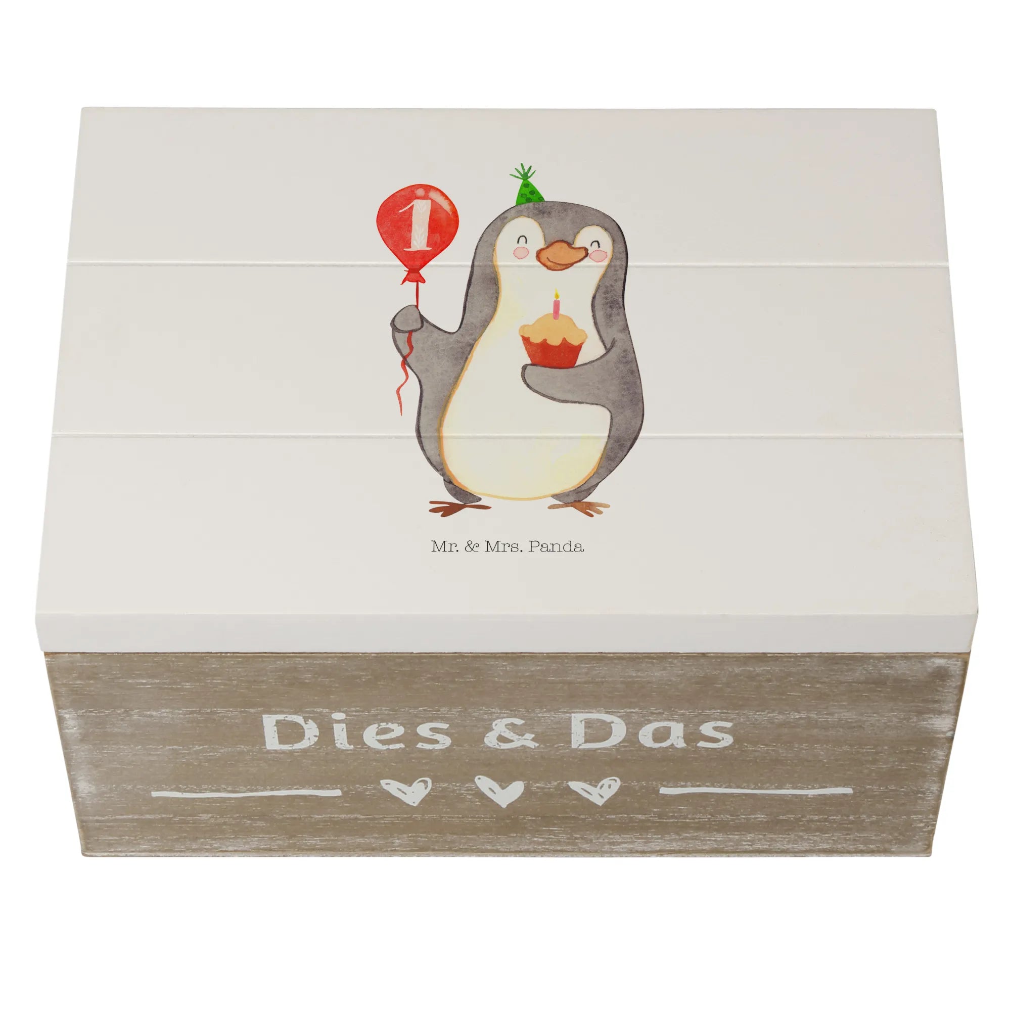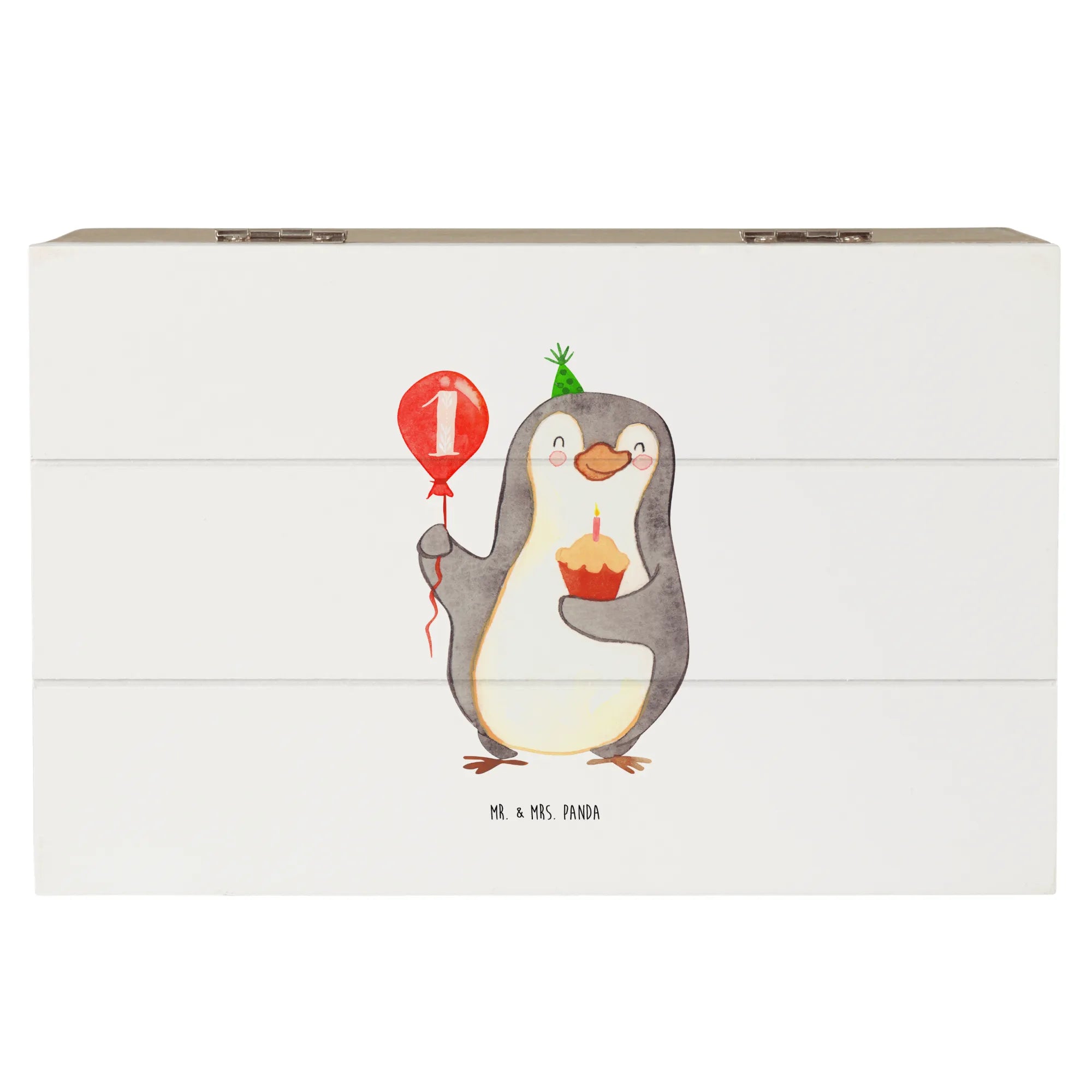 Skrzynia drewniana Pierwsze urodziny Pingwin balon - 22 x 15 cm - z napisem