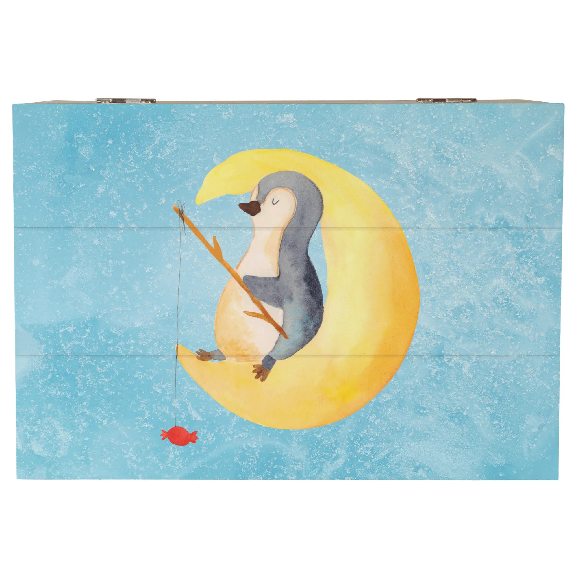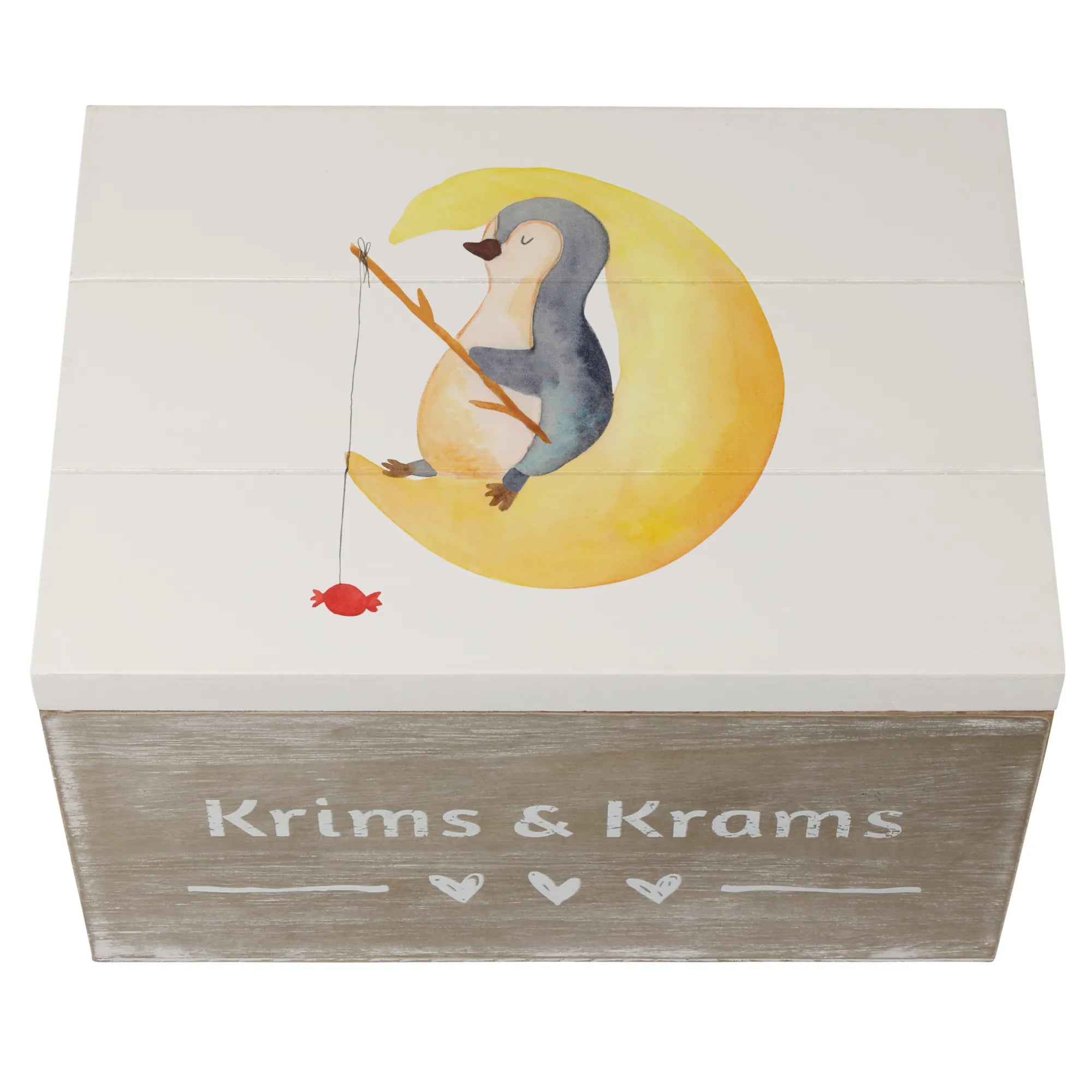 Skrzynia drewniana pingwin księżyc - 22 x 15 cm - z napisem - biały