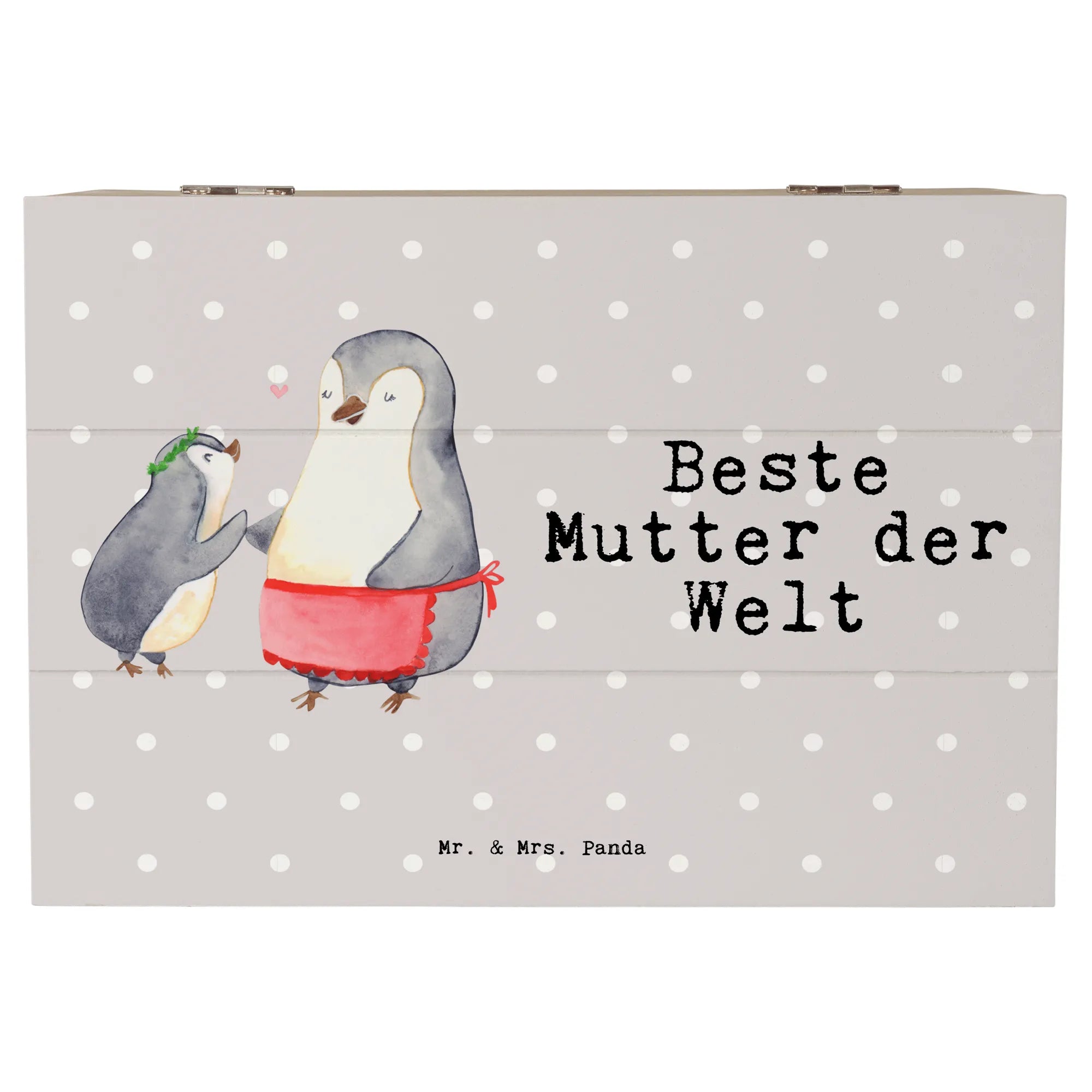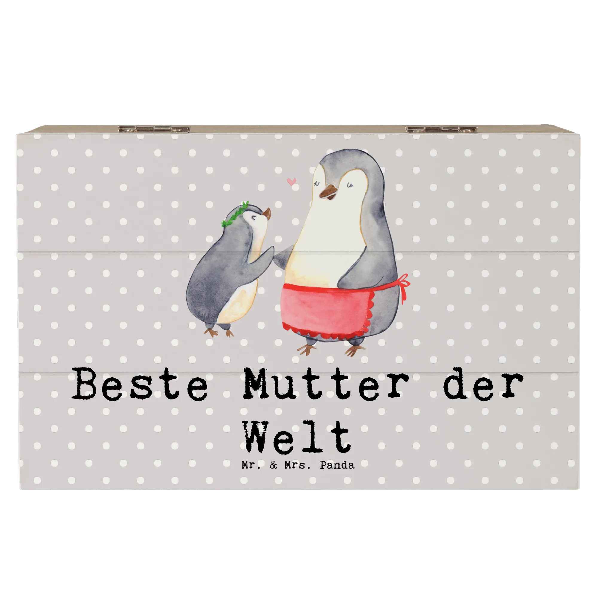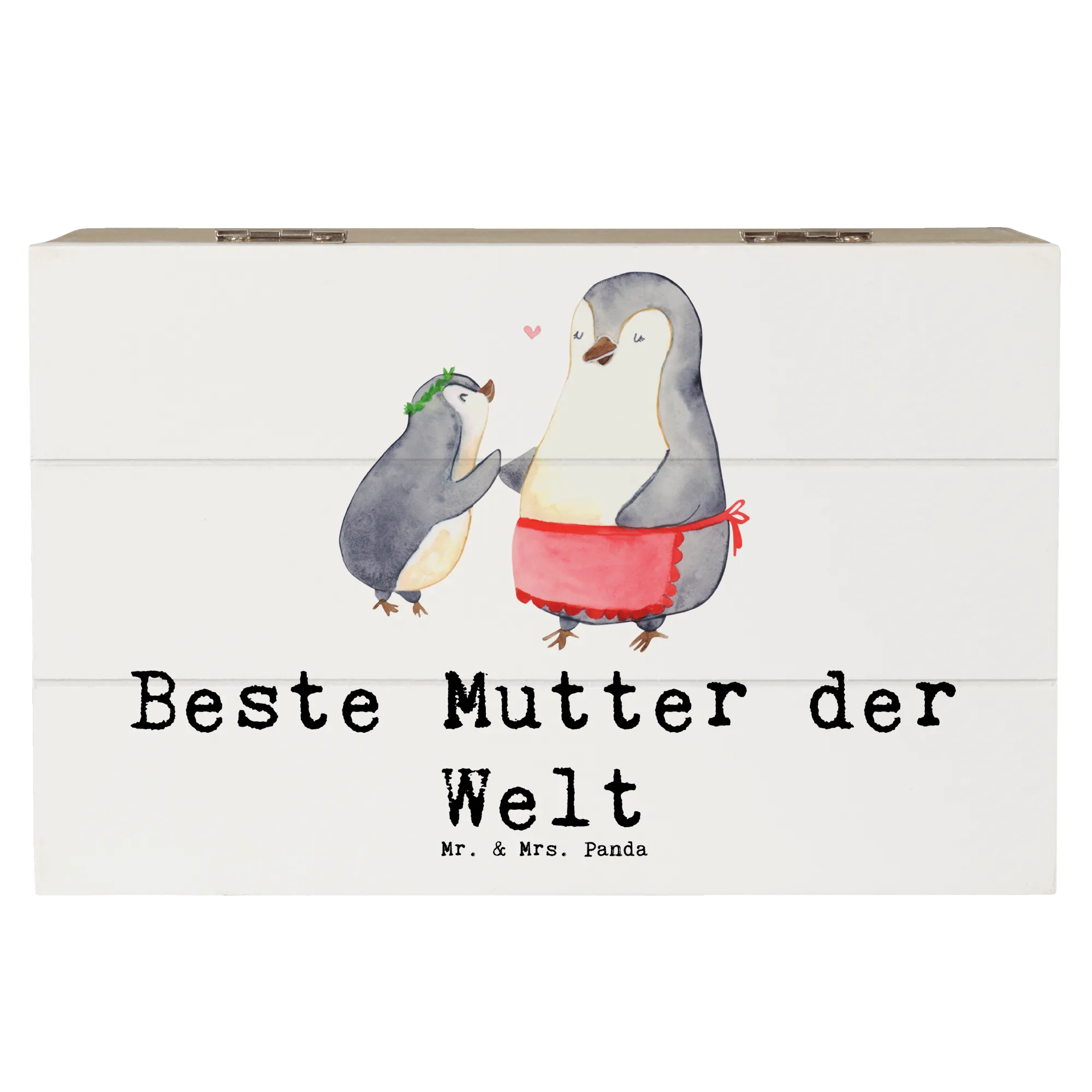 Skrzynia drewniana pingwin Najlepsza mama na świecie - 22 x 15 cm - biały