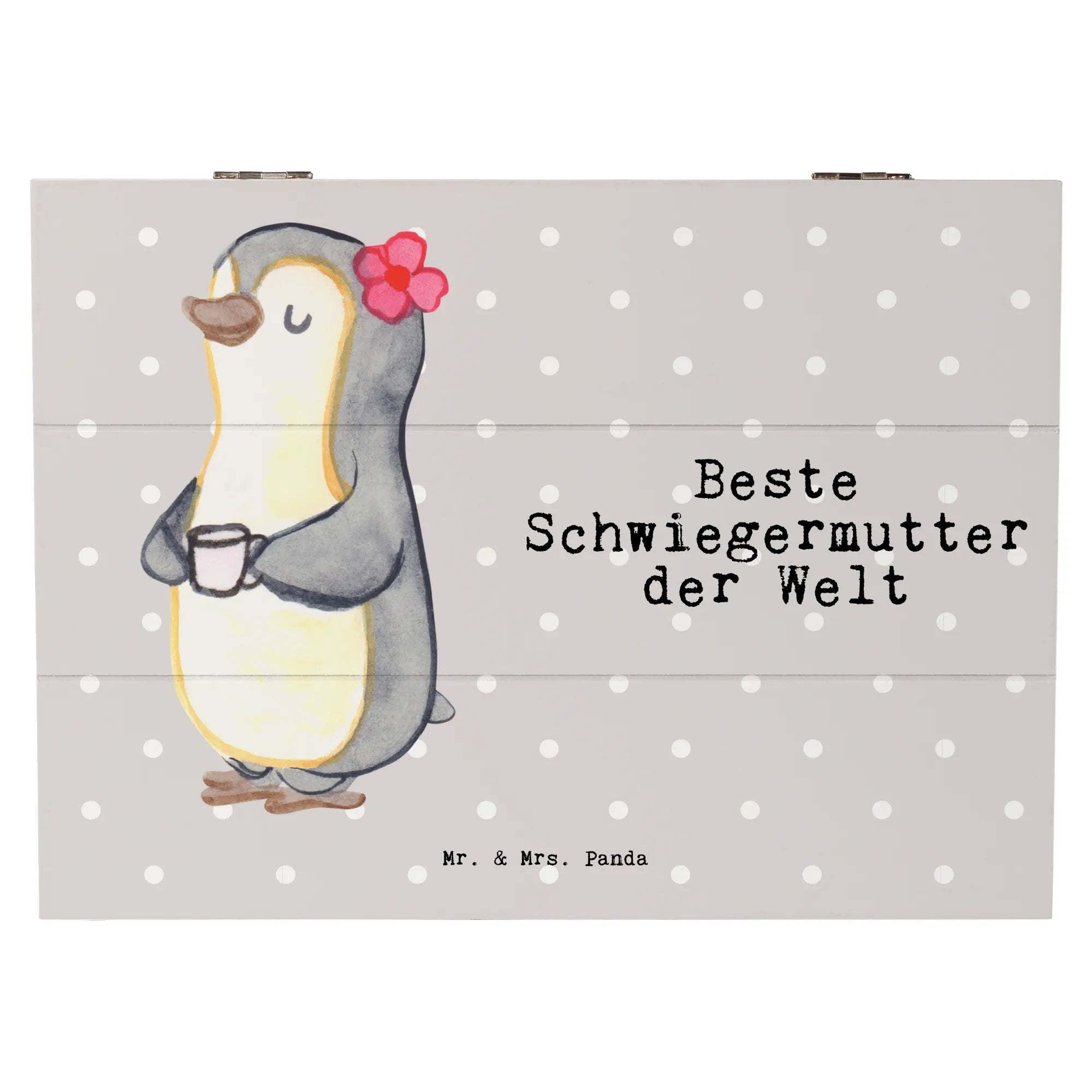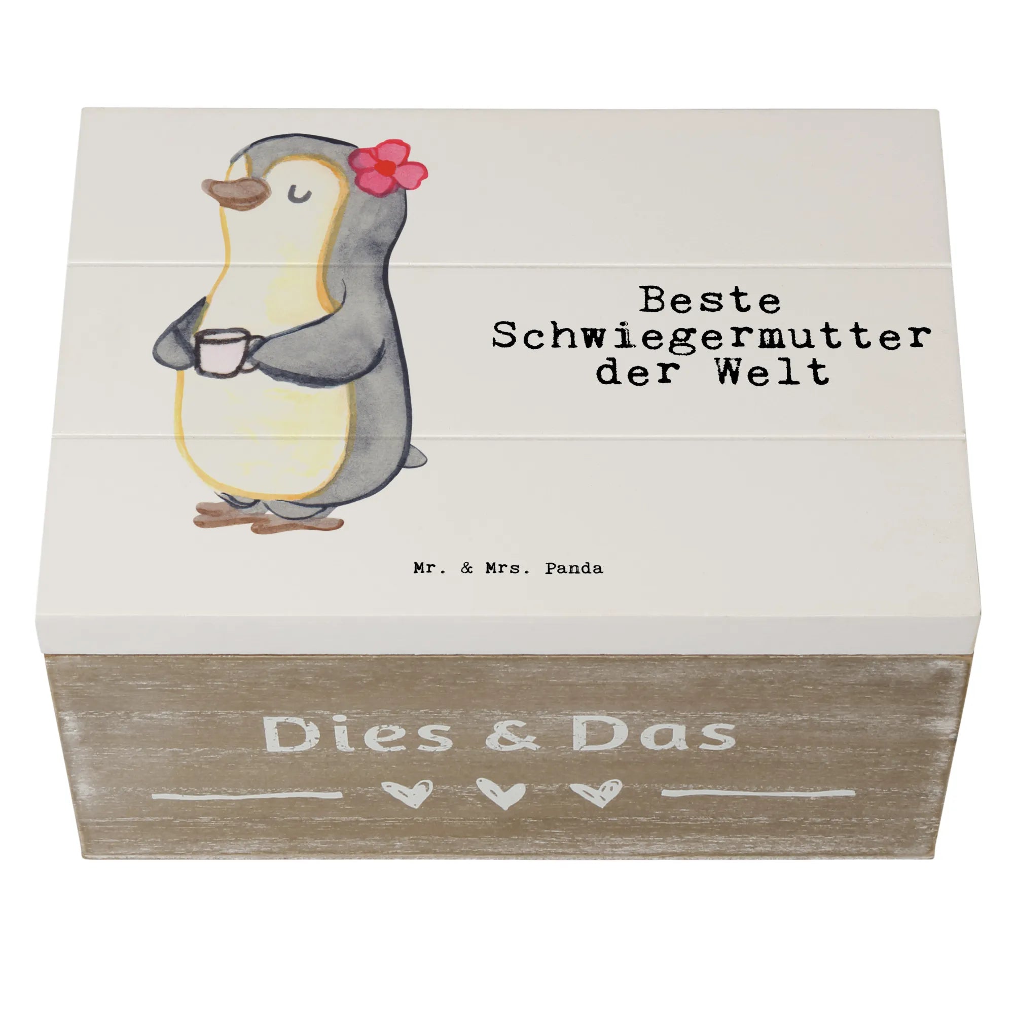 Skrzynia drewniana pingwin Najlepsza teściowa na świecie - 19 x 12 cm - biały