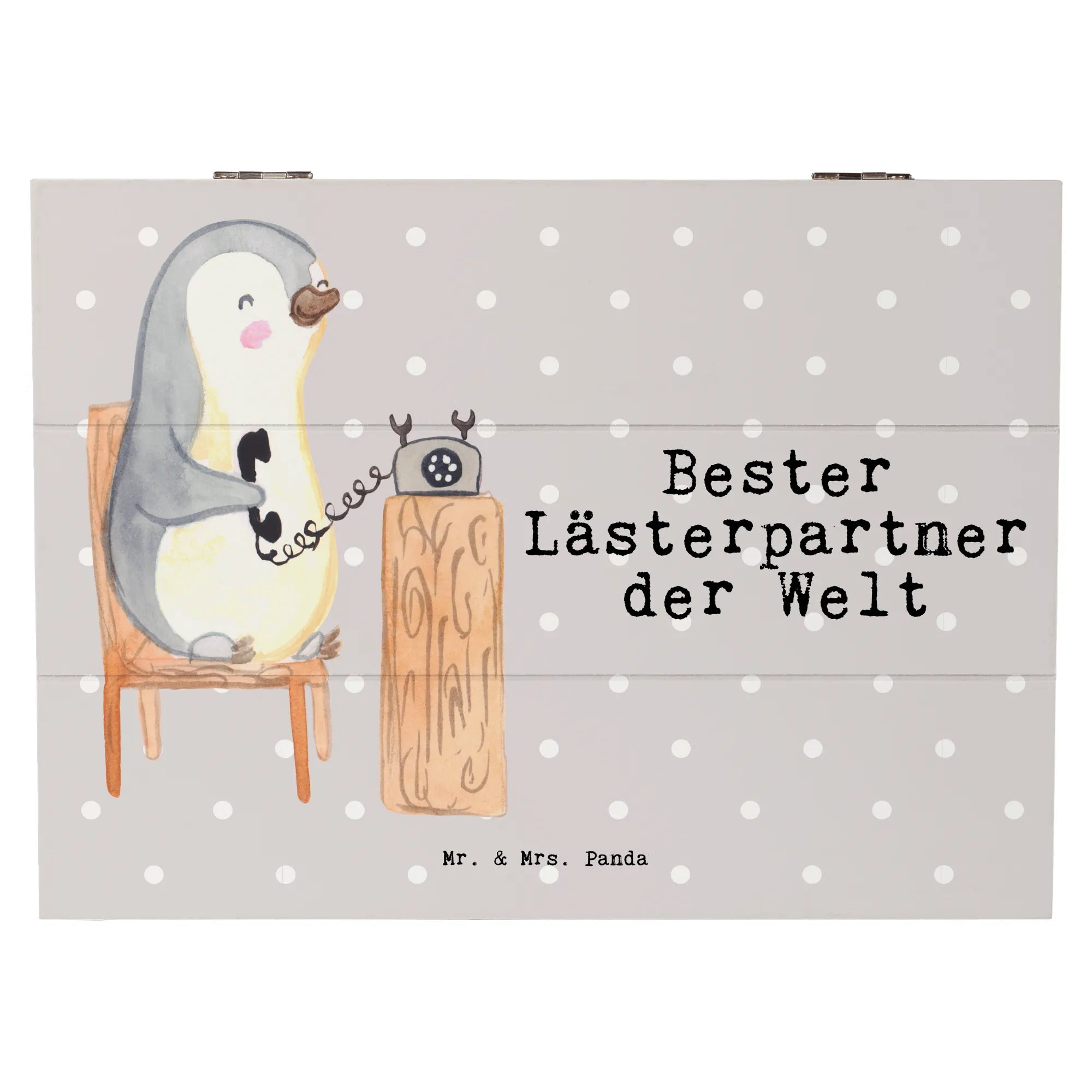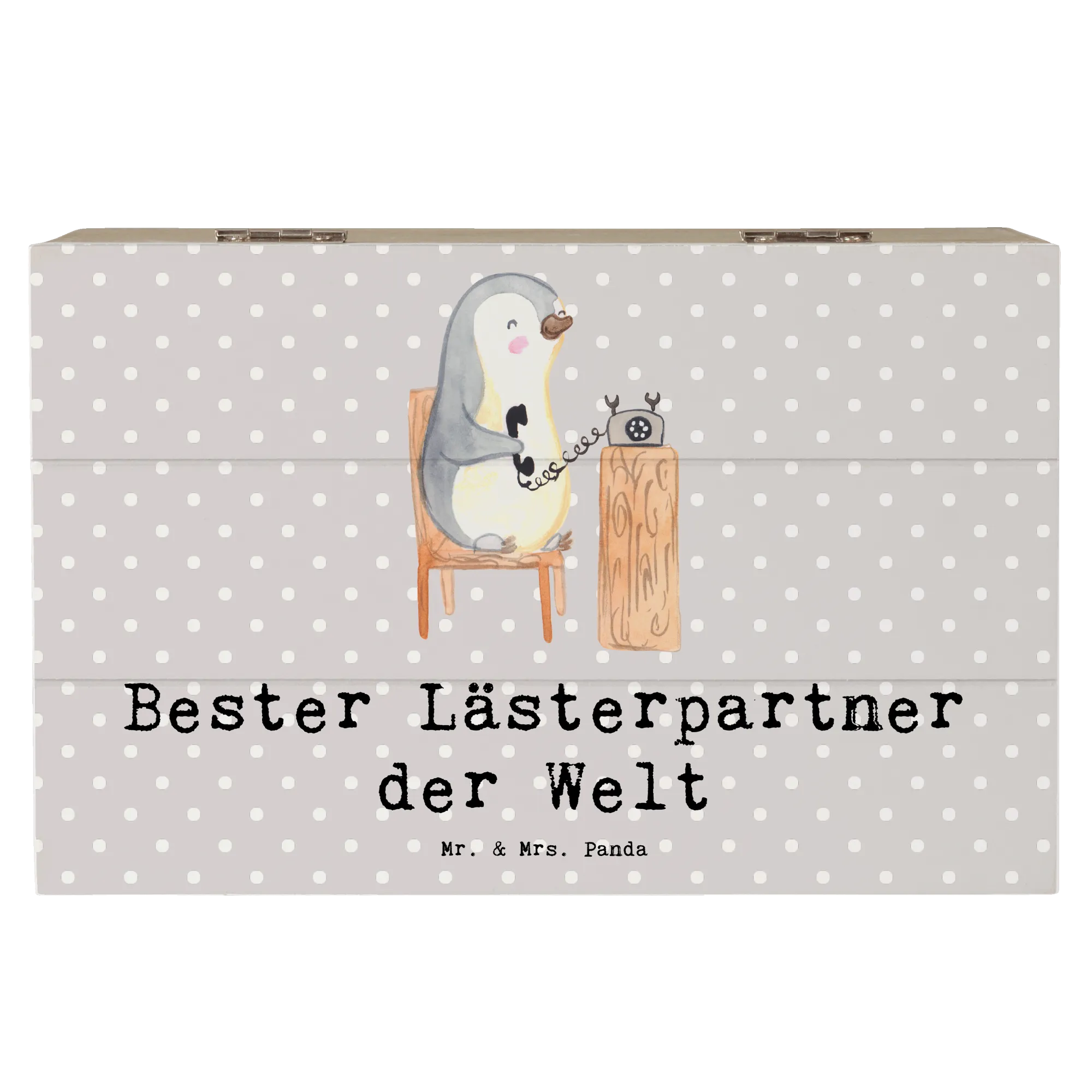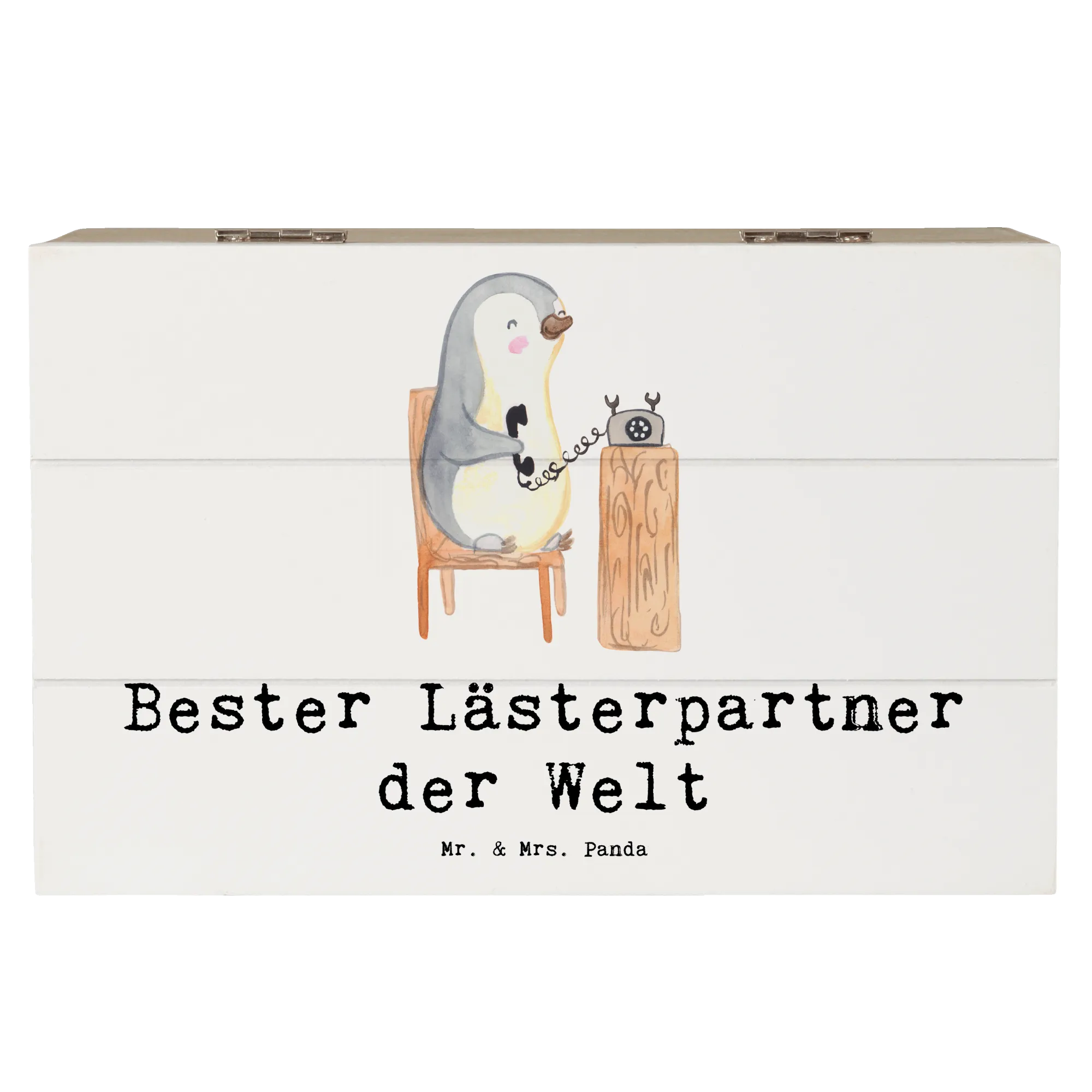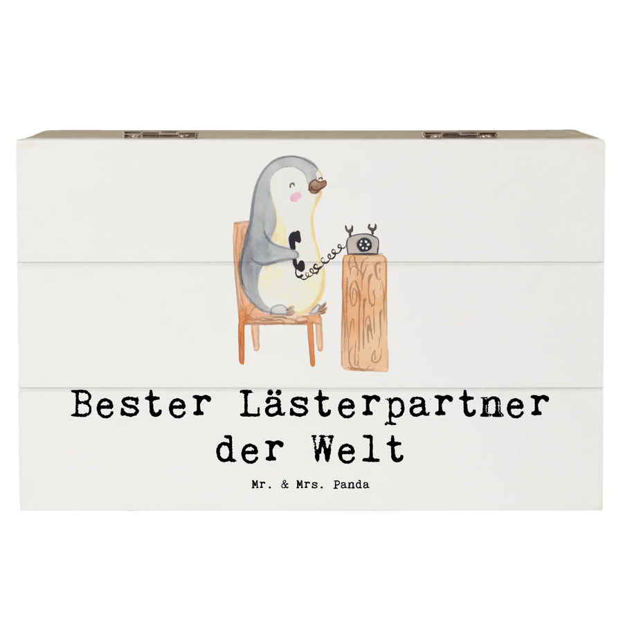Skrzynia drewniana Pingwin Najlepszy partner do plotkowania na świecie - 19 x 12 cm - biały