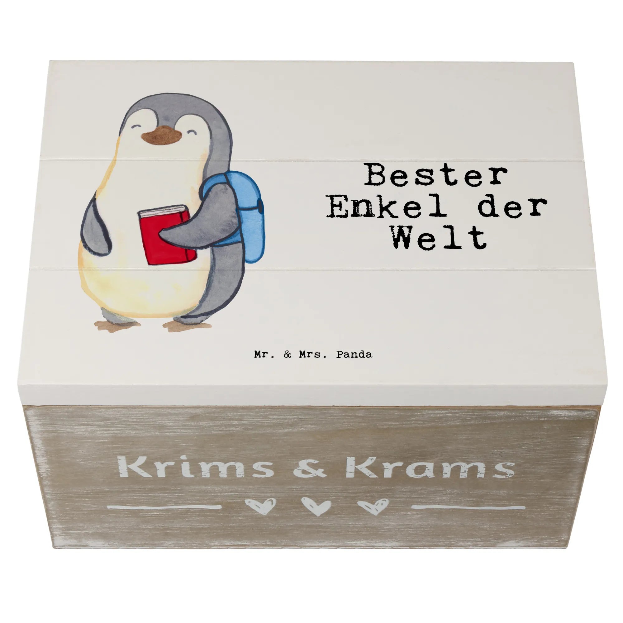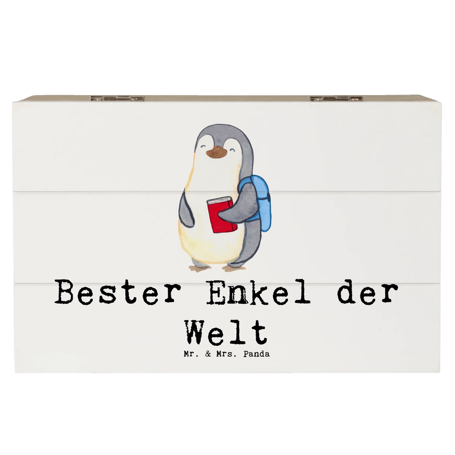 Skrzynia drewniana pingwin Najlepszy wnuk na świecie - 19 x 12 cm - biały