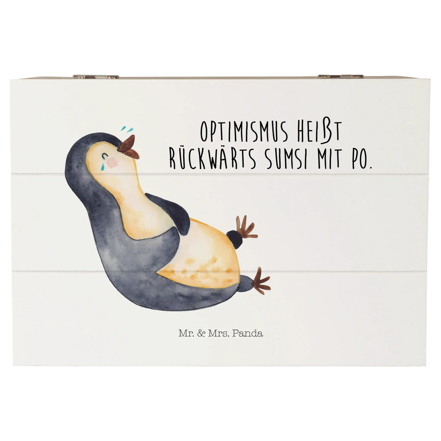 Skrzynia drewniana pingwin Śmiech - 22 x 15 cm - z napisem - biały