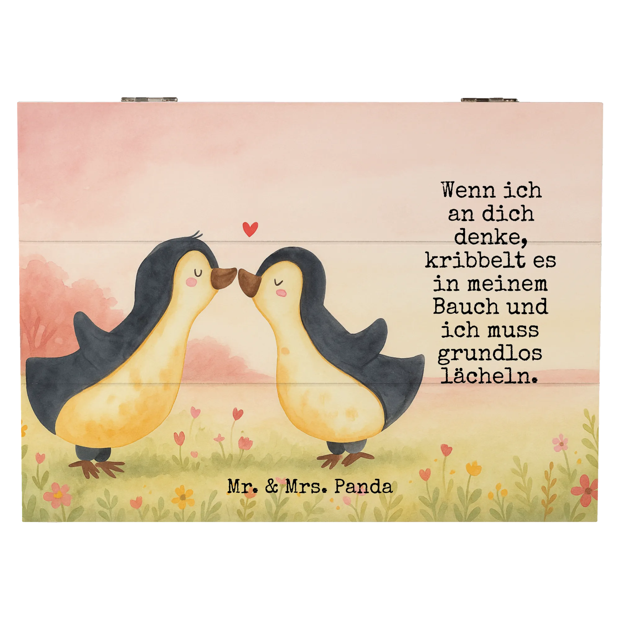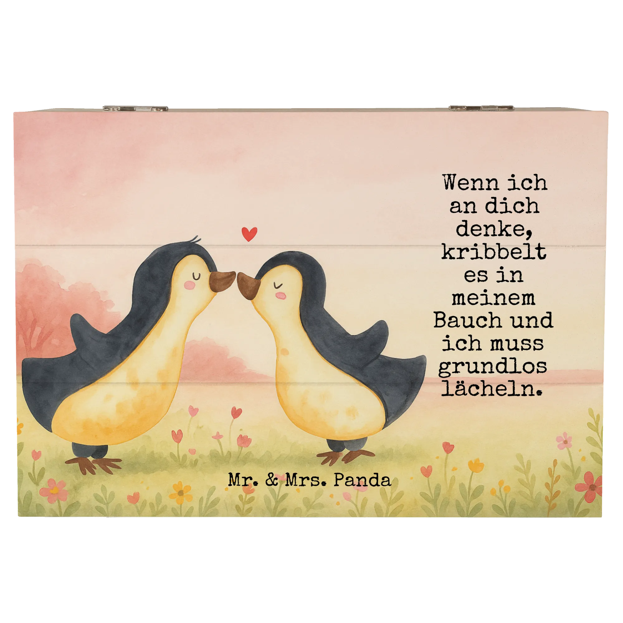 Skrzynia drewniana Pingwiny Pocałunek Design - 22 x 15 cm - z napisem