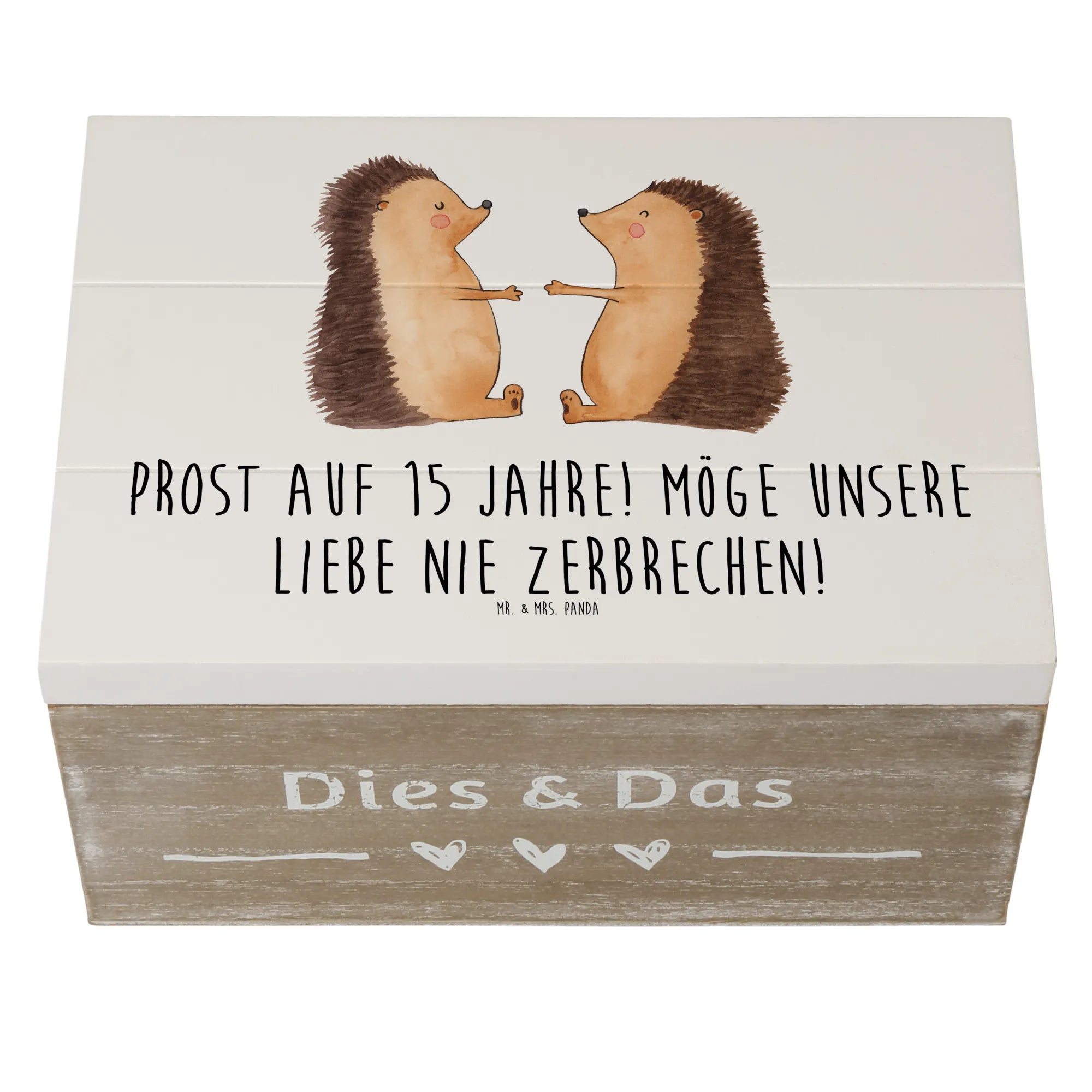 Skrzynia drewniana Prost auf 15 Jahre! Möge unsere Liebe nie zerbrechen! - 19 x 12 cm - biały