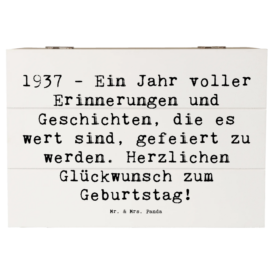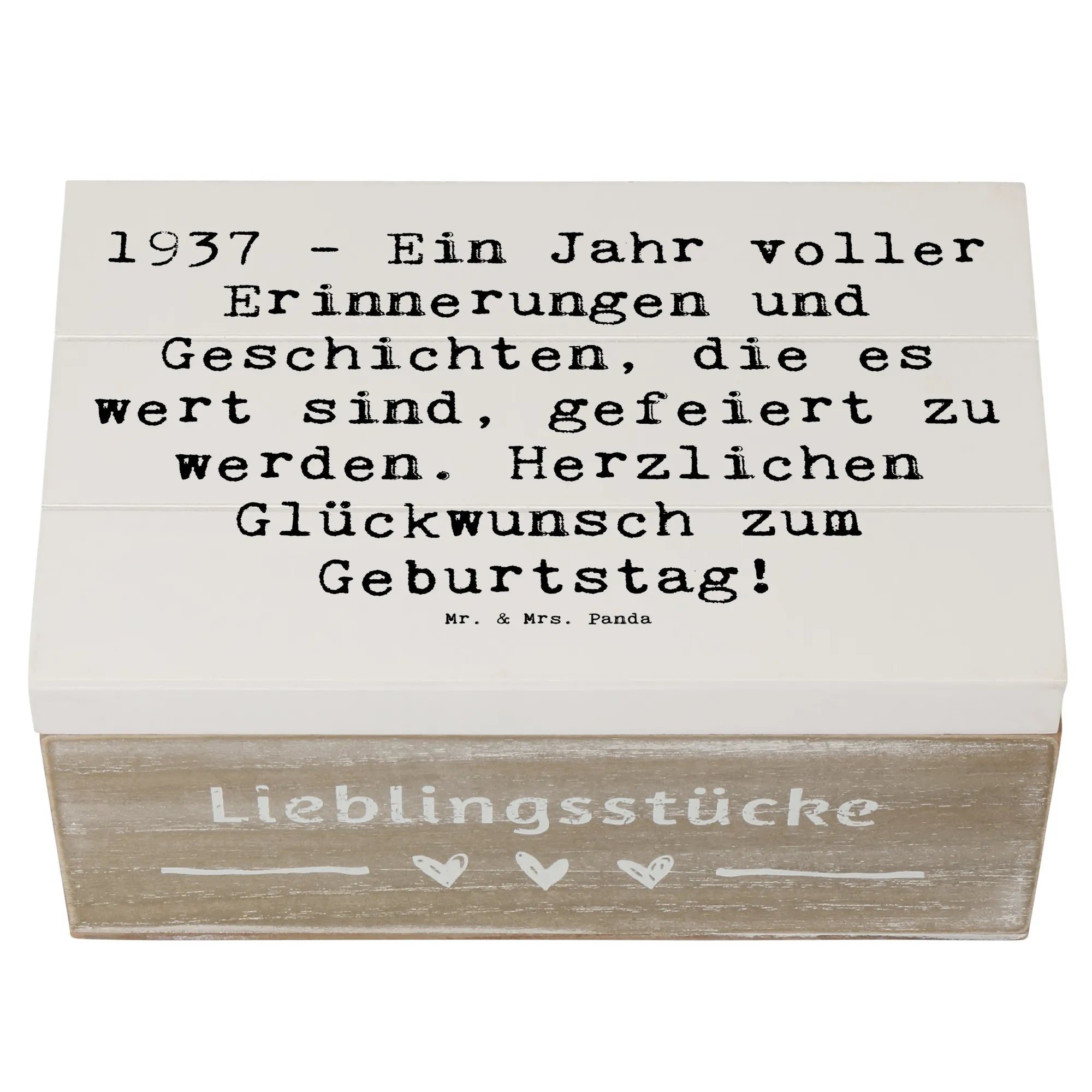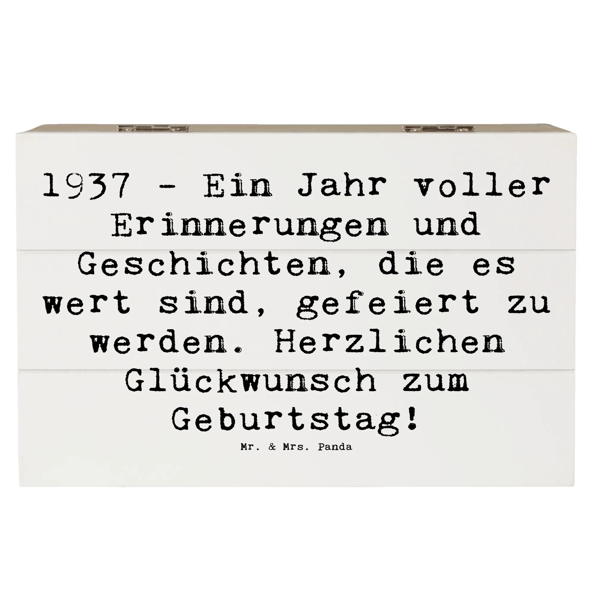Skrzynia drewniana Przysłowie 1937 - Ein Jahr voller Erinnerungen und Geschichten, die es wert sind, gefeiert zu werden. Herzlichen Glückwunsch zum Geburtstag! - 22 x 15 cm - Biały