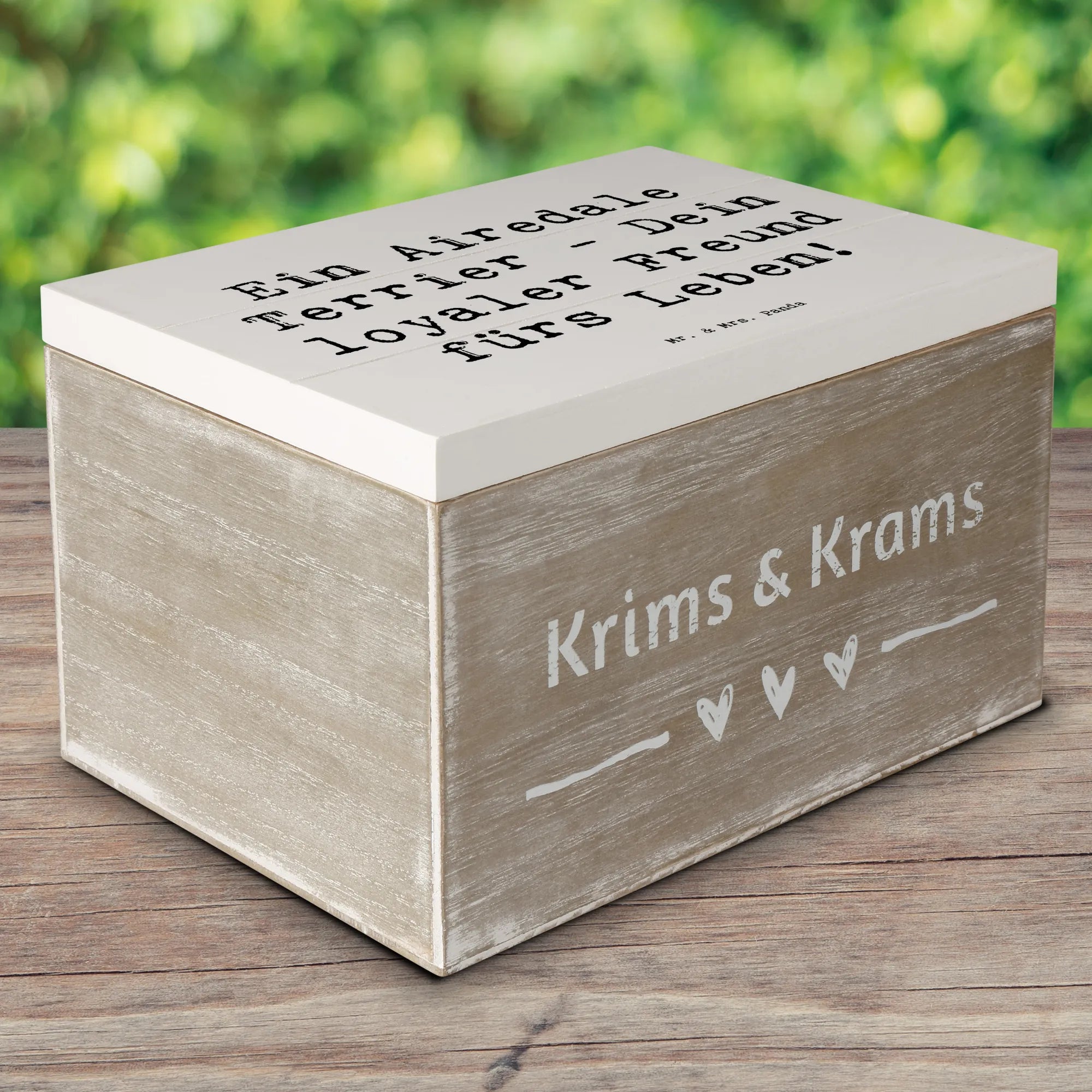 Skrzynia drewniana Przysłowie Ein Airedale Terrier - Dein loyaler Freund fürs Leben! - 22 x 15 cm - biały