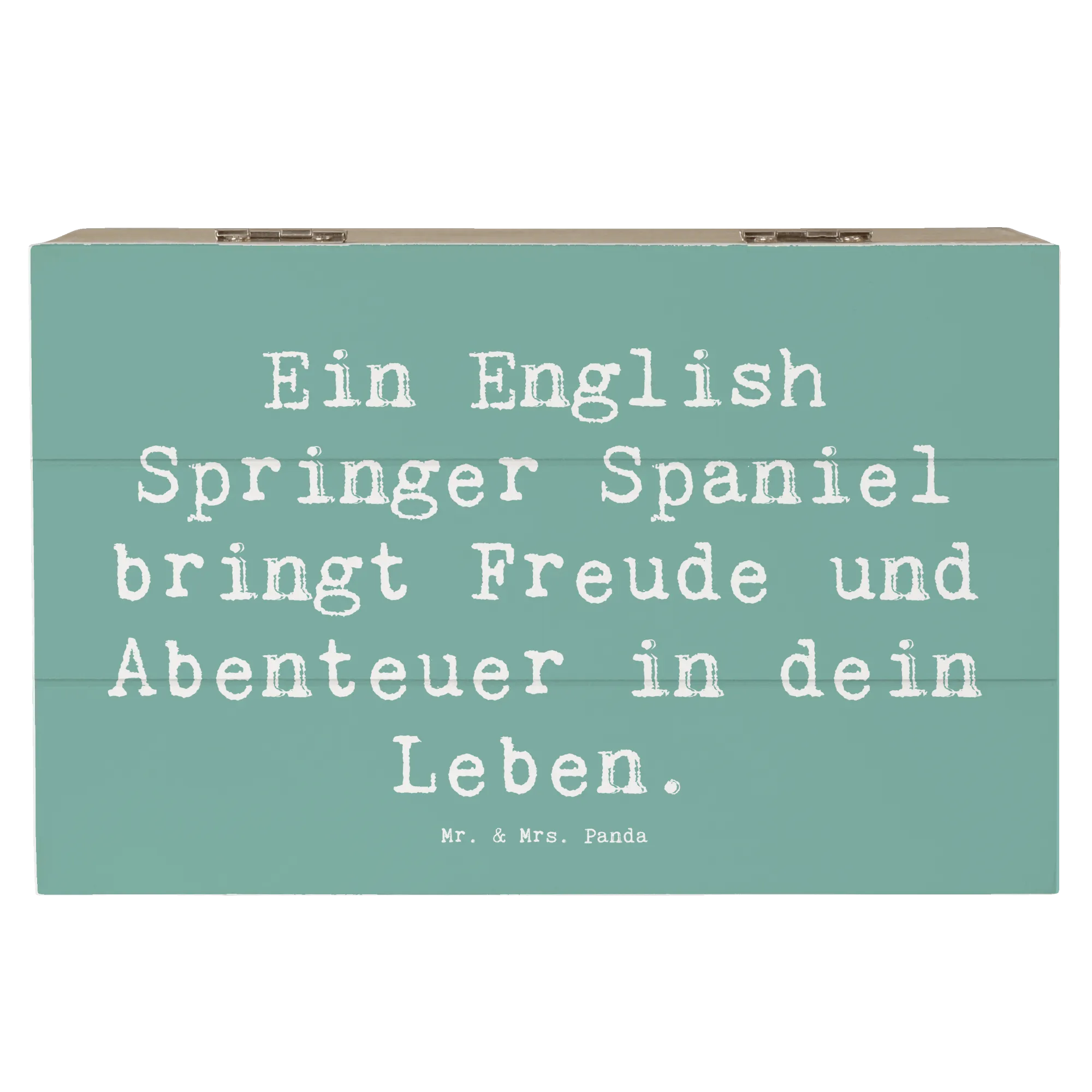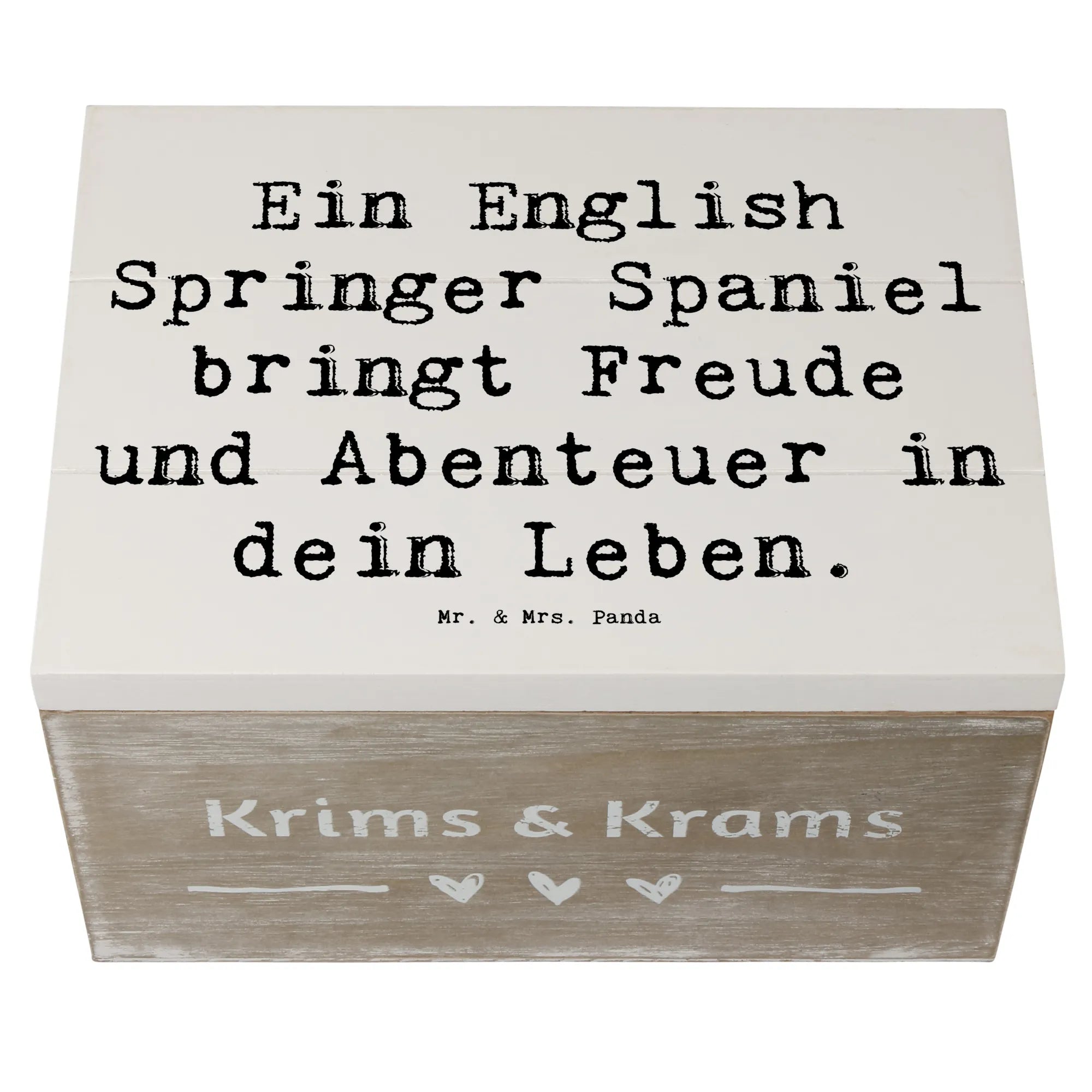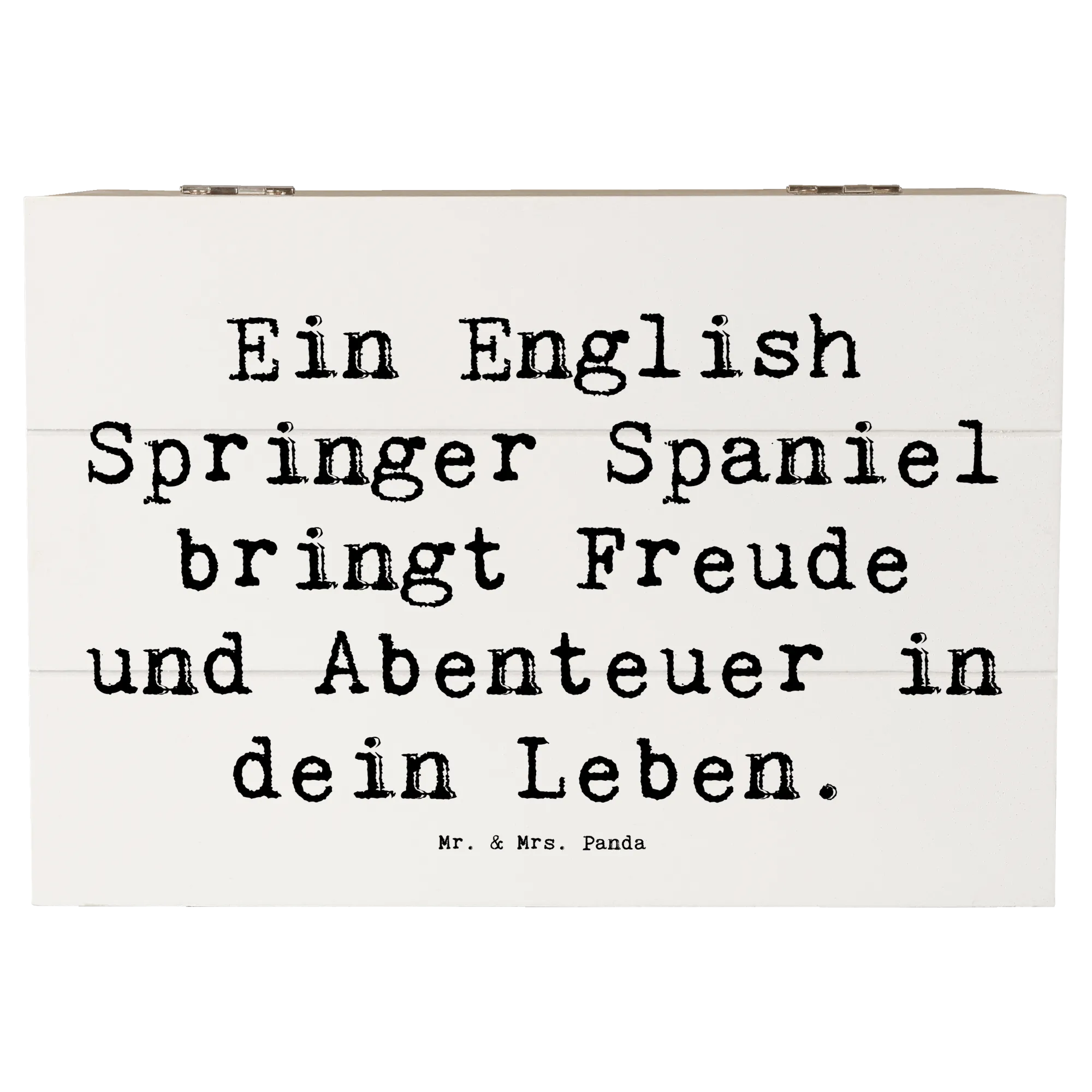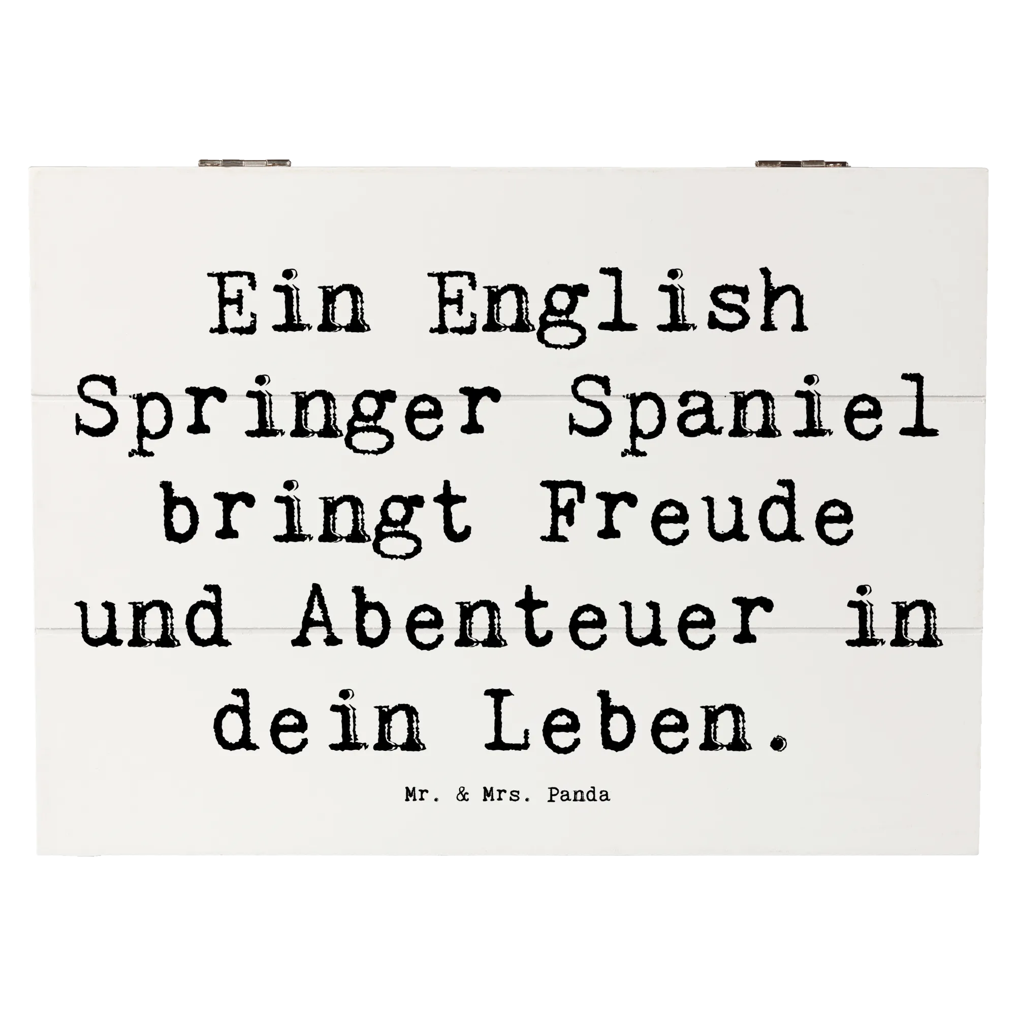 Skrzynia drewniana Przysłowie Ein English Springer Spaniel bringt Freude und Abenteuer in dein Leben. - 22 x 15 cm - biały