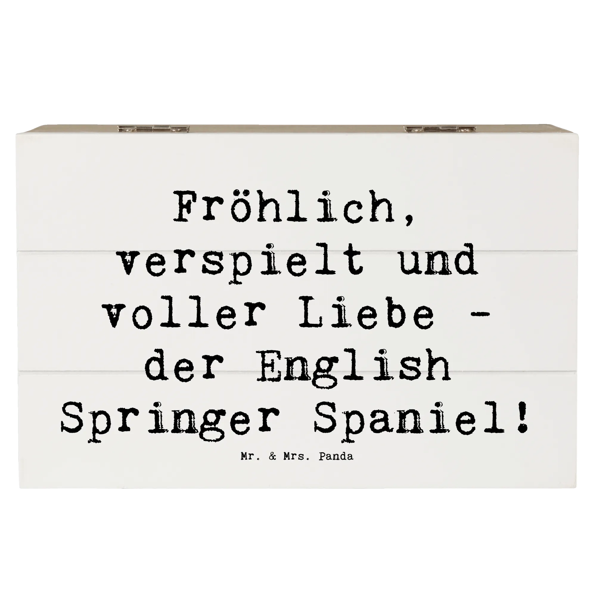 Skrzynia drewniana Przysłowie Fröhlich, verspielt und voller Liebe - der English Springer Spaniel! - 22 x 15 cm - biały