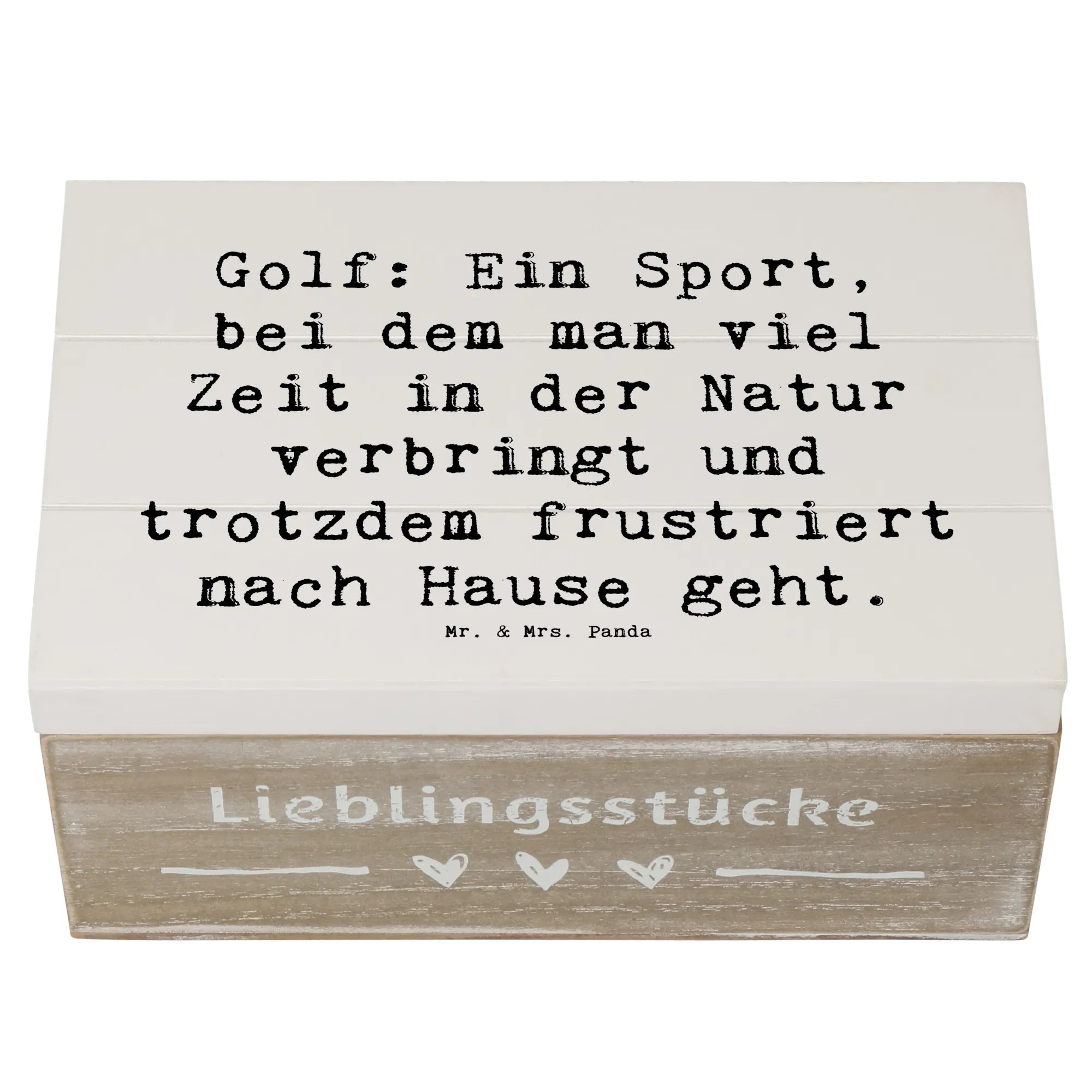 Skrzynia drewniana Przysłowie Golf: Ein Sport, bei dem man viel Zeit in der Natur verbringt und trotzdem frustriert nach Hause geht. - 22 x 15 cm - biały