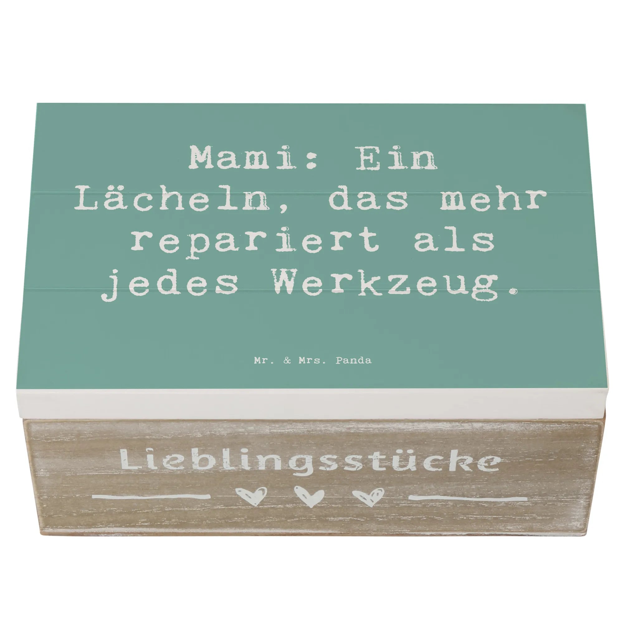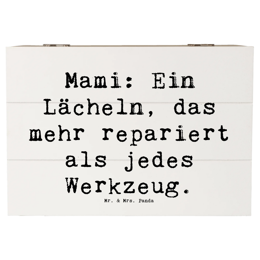 Skrzynia drewniana Przysłowie Mami: Ein Lächeln, das mehr repariert als jedes Werkzeug. - 22 x 15 cm - biały